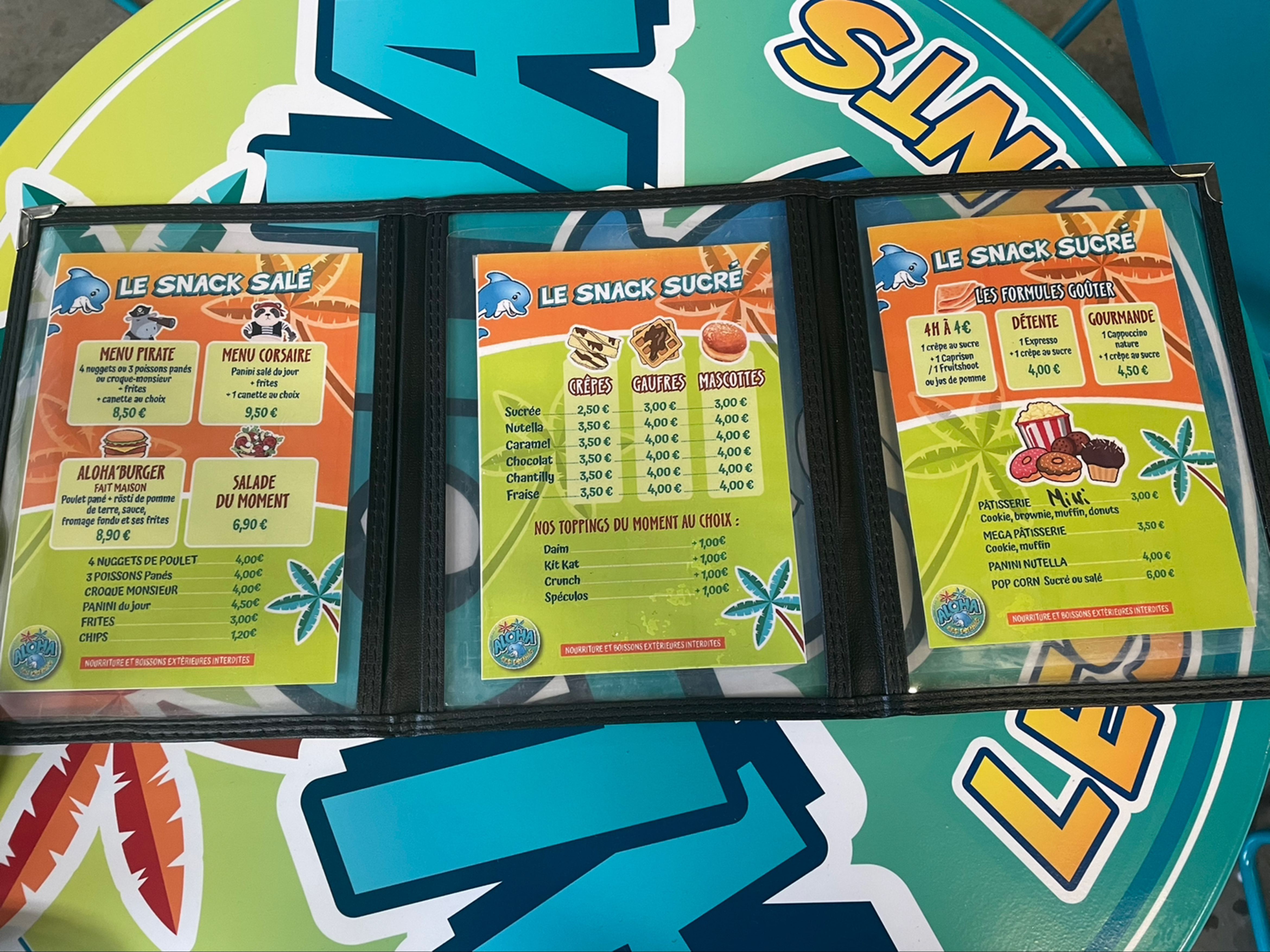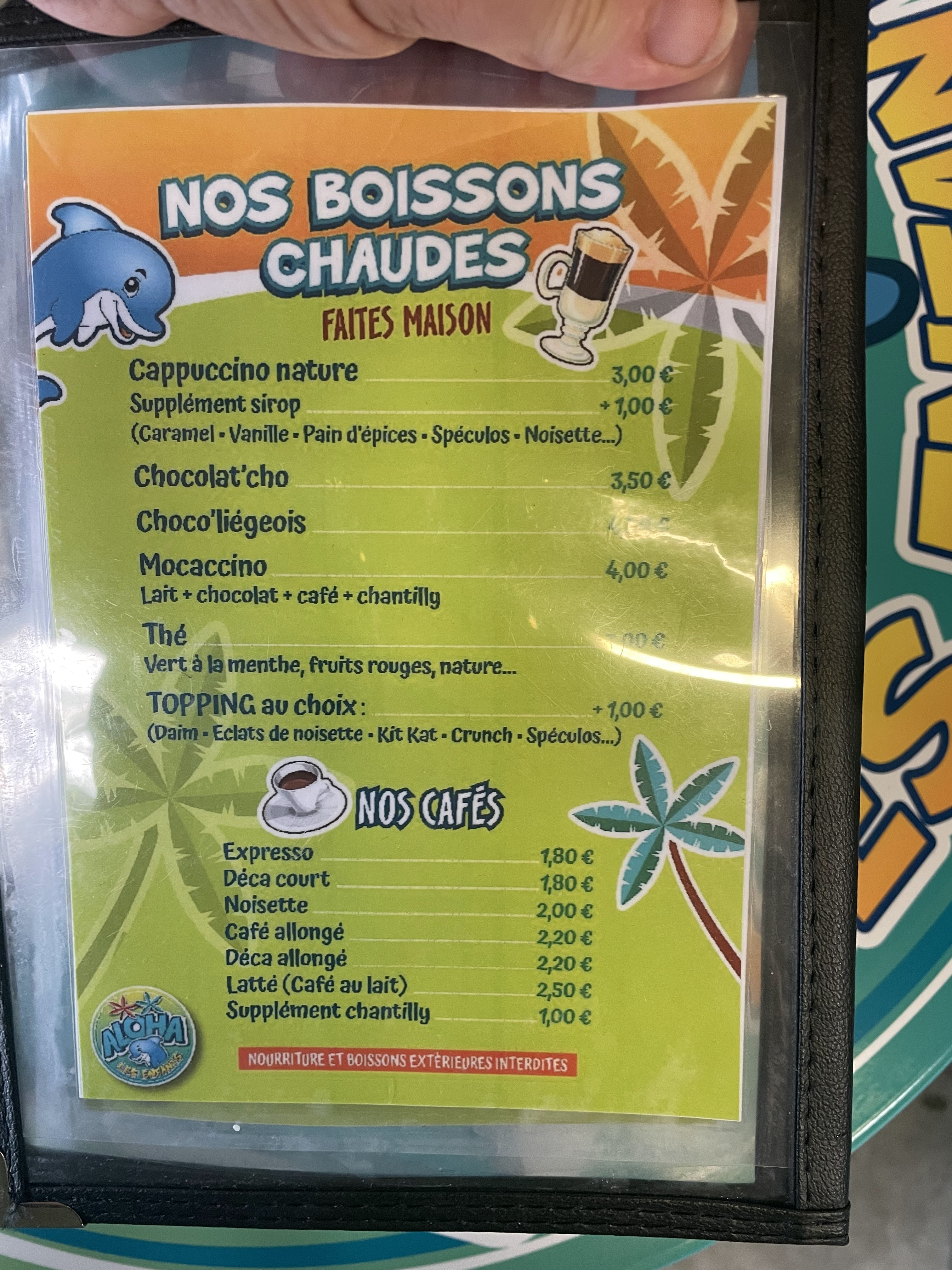 On paye l'entrée OK ! On a pas le droit de rentrer de la nourriture OK ! Par contre le café crème à 3euros le cappu noisette à 4euros. Et tout le reste hors de prix eau jus crêpe... Pas étonnant que les gens ramène leur boisson et gâteau pour les enfants. T'imagine t'a 2 enfants pour 2 entrée, 2 crêpes, café, boisson. Tu vend un rein... Si ALOHA faisait un effort sur les prix les gens respecteraient... Et viendraient plus souvent.
