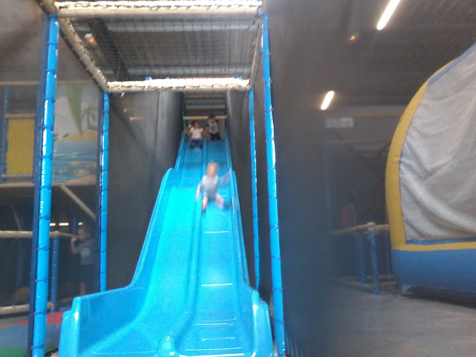 Aire de jeux couverte pour les enfants. 2 jeux gonflables, un grand toboggan, une piste de petits vélos, une petite aire de gros lego en mousse, un petit terrain de basket et petite aire de jeux pour les moins de 3 ans avec un petit toboggan. Pas mal de places assises ce qui est appréciable.