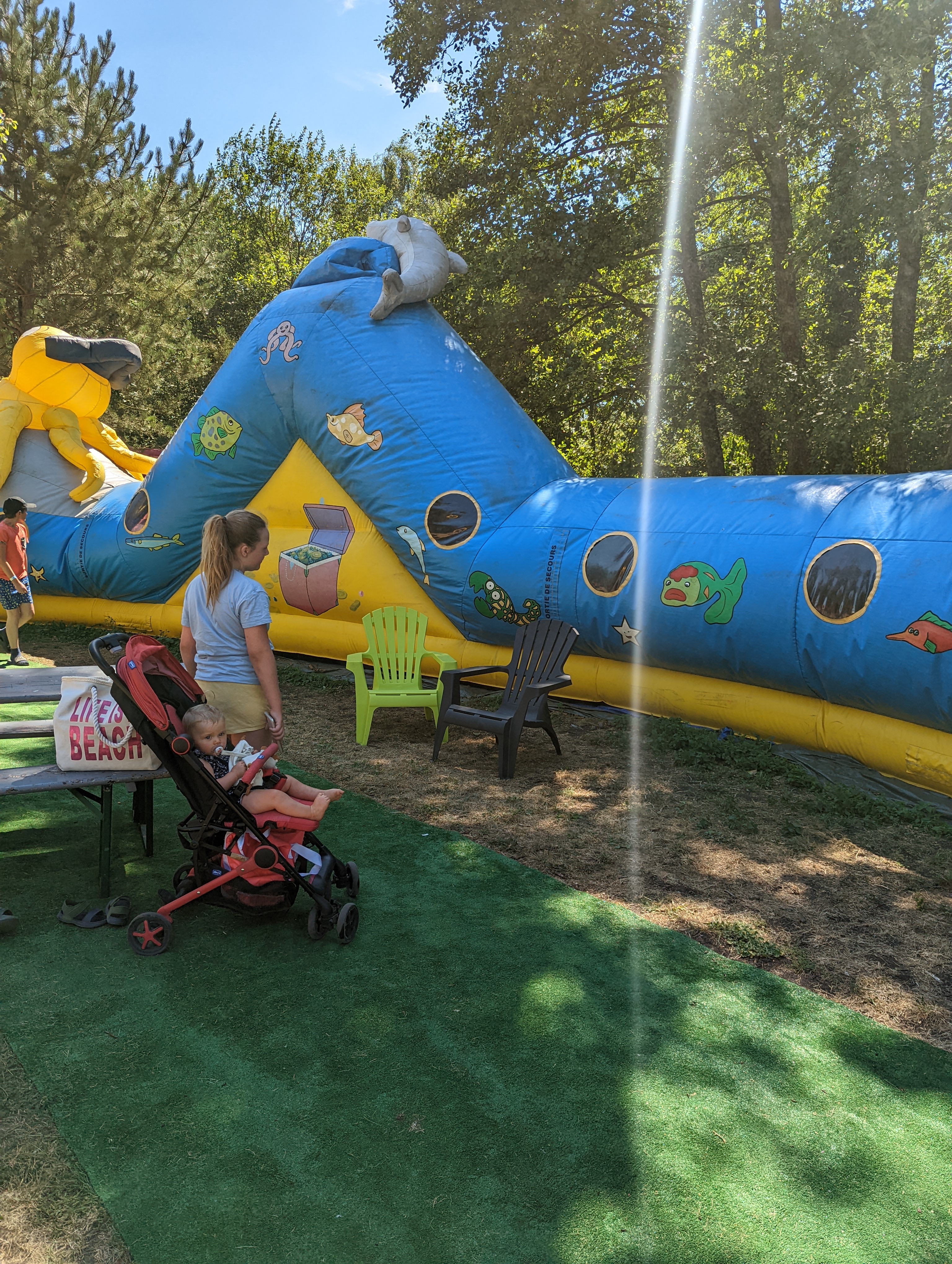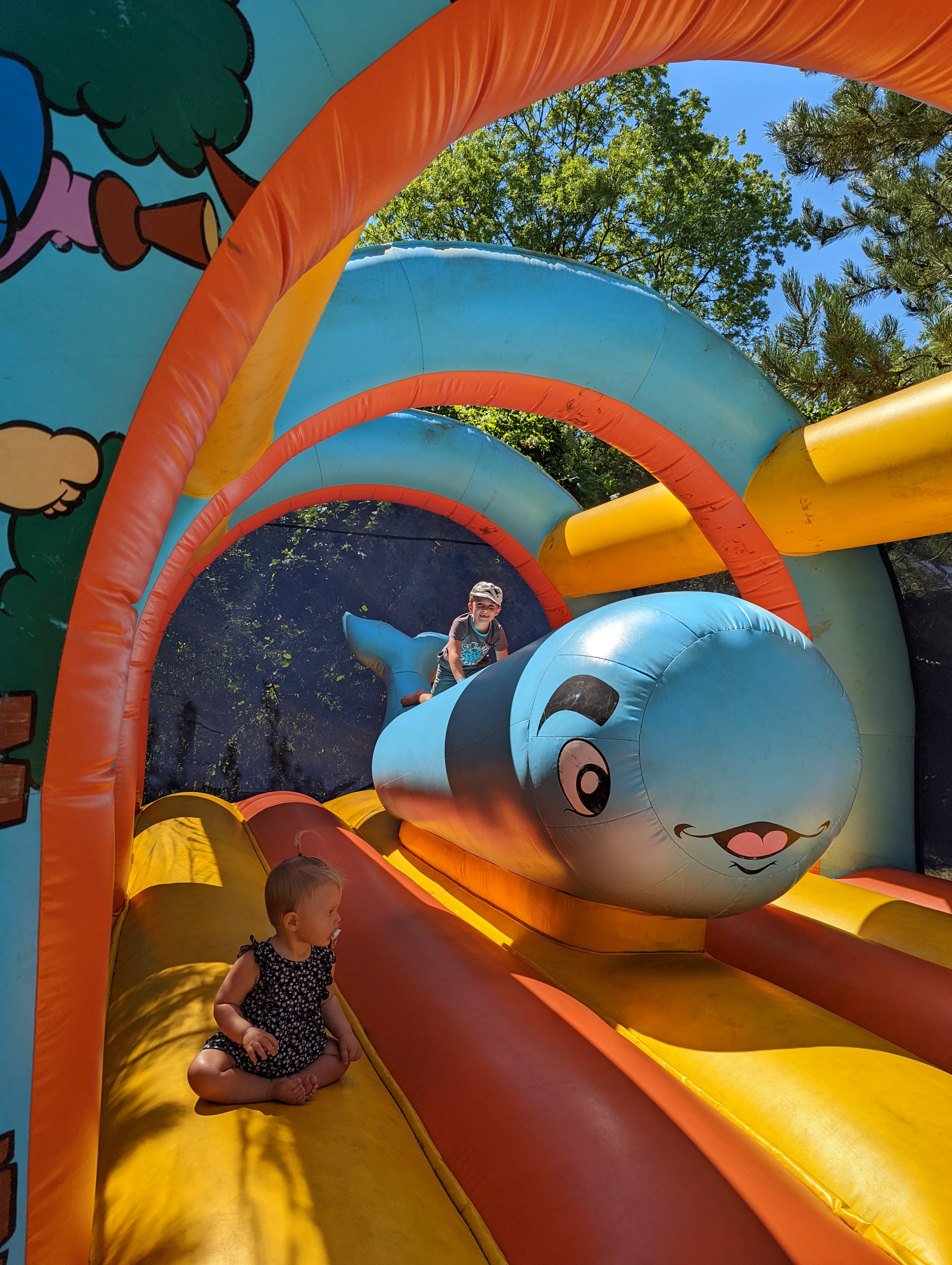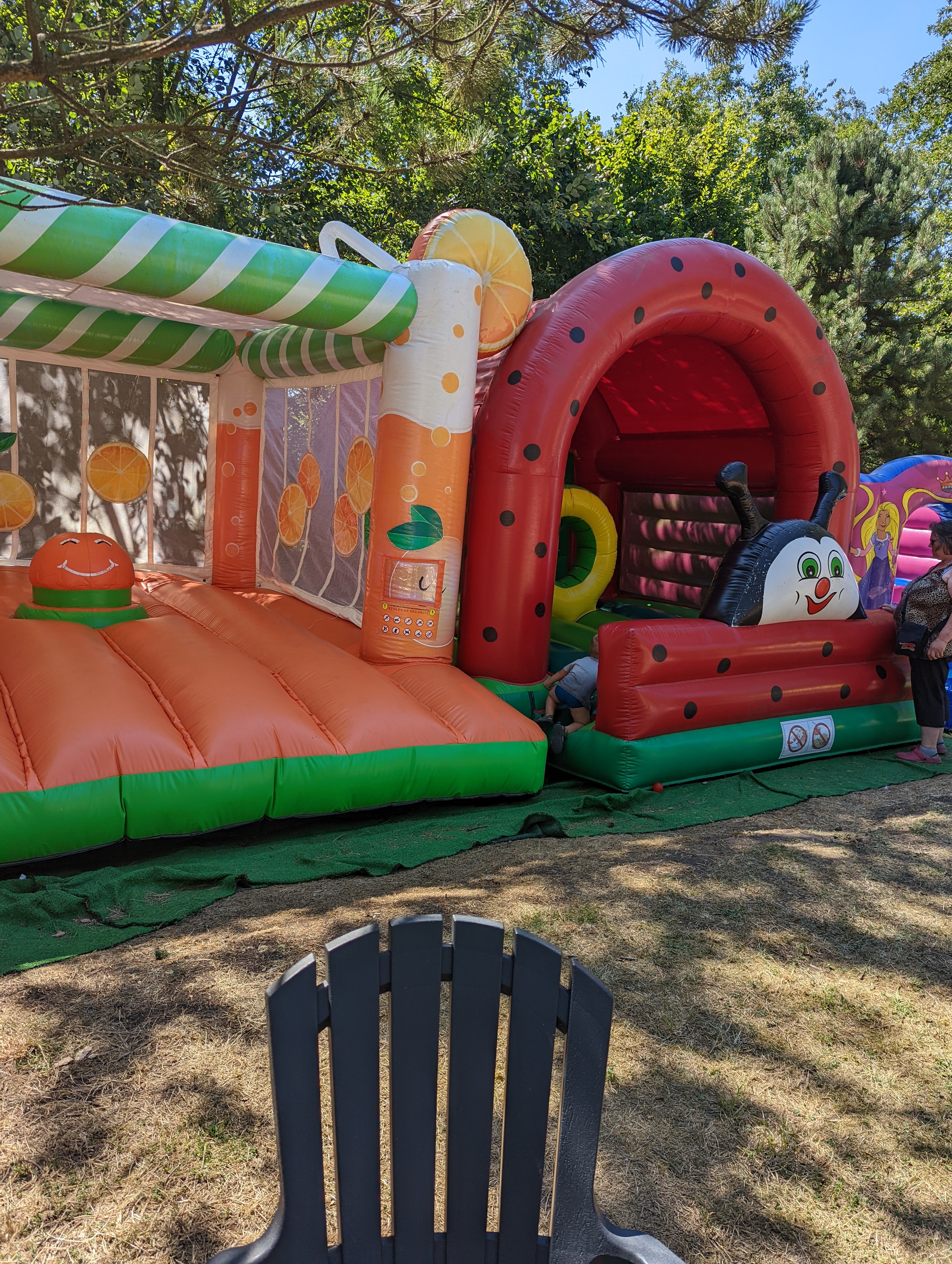 Parc bien entretenu, beaucoup de châteaux gonflables, Très agréable avec la chaleur, le toboggan aquatique gonflable. Endroit ombragé.