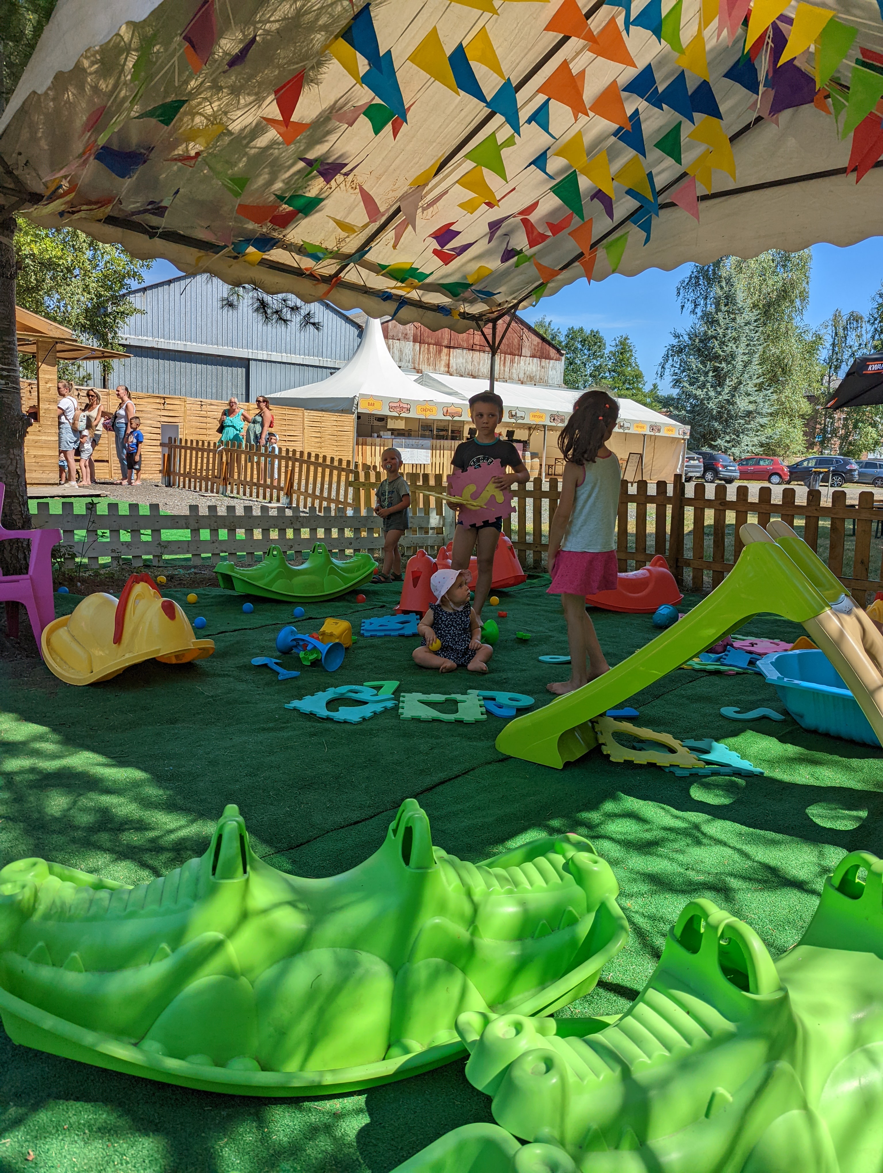 Endroit sympathique pour les enfants,on peut se restaurer granita,glace,crêpes ,frites fricadelles etc....boissons fraîches, café....WC. Coin pour les plus petits ,il y a des chaises un peu partout j'aurais juste dû y aller un jour où il fait moins chaud car les gonflables sont brûlant s'il fait trop chaud mais ce n'est pas de leurs faute , le toboggan avec pataugeoire est très bien ,conclusion c'est top pour les enfants