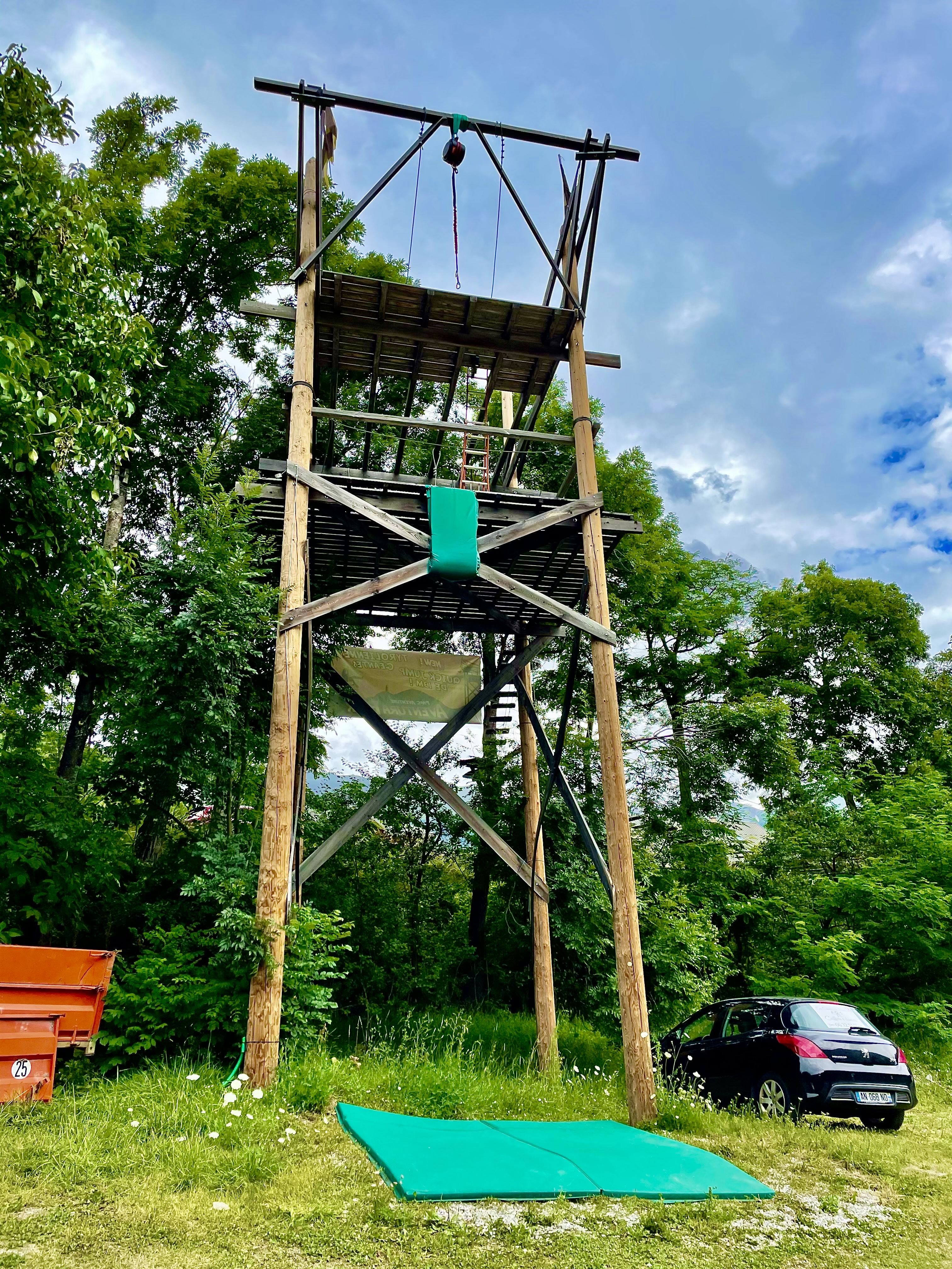 Lieu très agréable situé en pleine forêt : nombreuses activités proposées : parcours acro branches accessibles à toute la famille , grande tyrolienne + de 300m de longueur !!! Rafting, canoë. .. petit parc d avtivites pour les plus jeunes , air de pique-nique, bar restaurant avec des prix royr à fair raisonnables Ideal pour passer une journée en famille, animateur supers sympas !!!