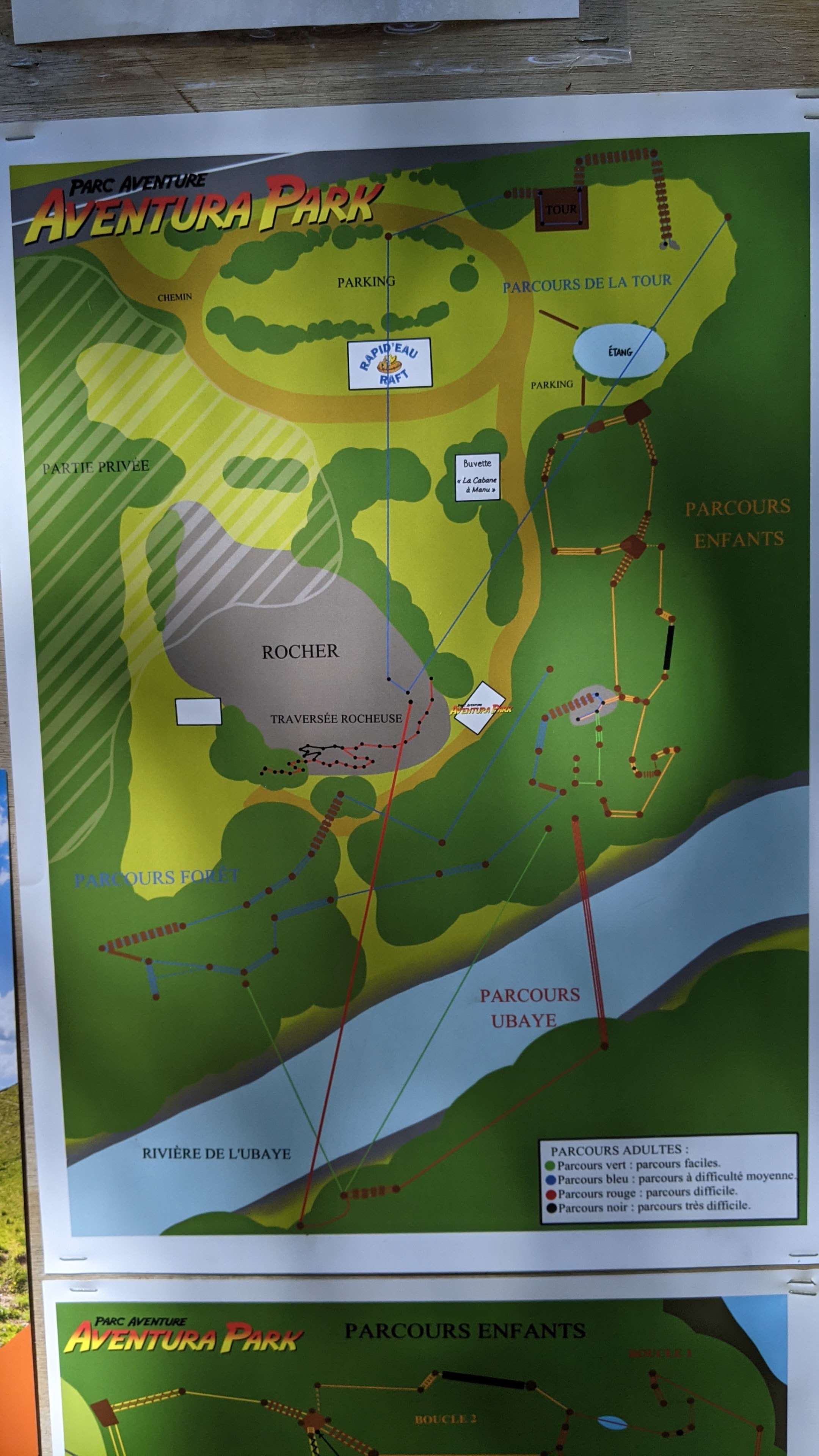 Beau parc agréable beaux parcours au dessus de l Ubaye , seul bémol certains parcours dits a partir d 1 mètre 40 la taille est trop juste , ma fille fait 1.45 et il fallait que je la porte pour se décrocher . Je pense qu'il faudrait rehausser la taille limite pour le confort se tous .