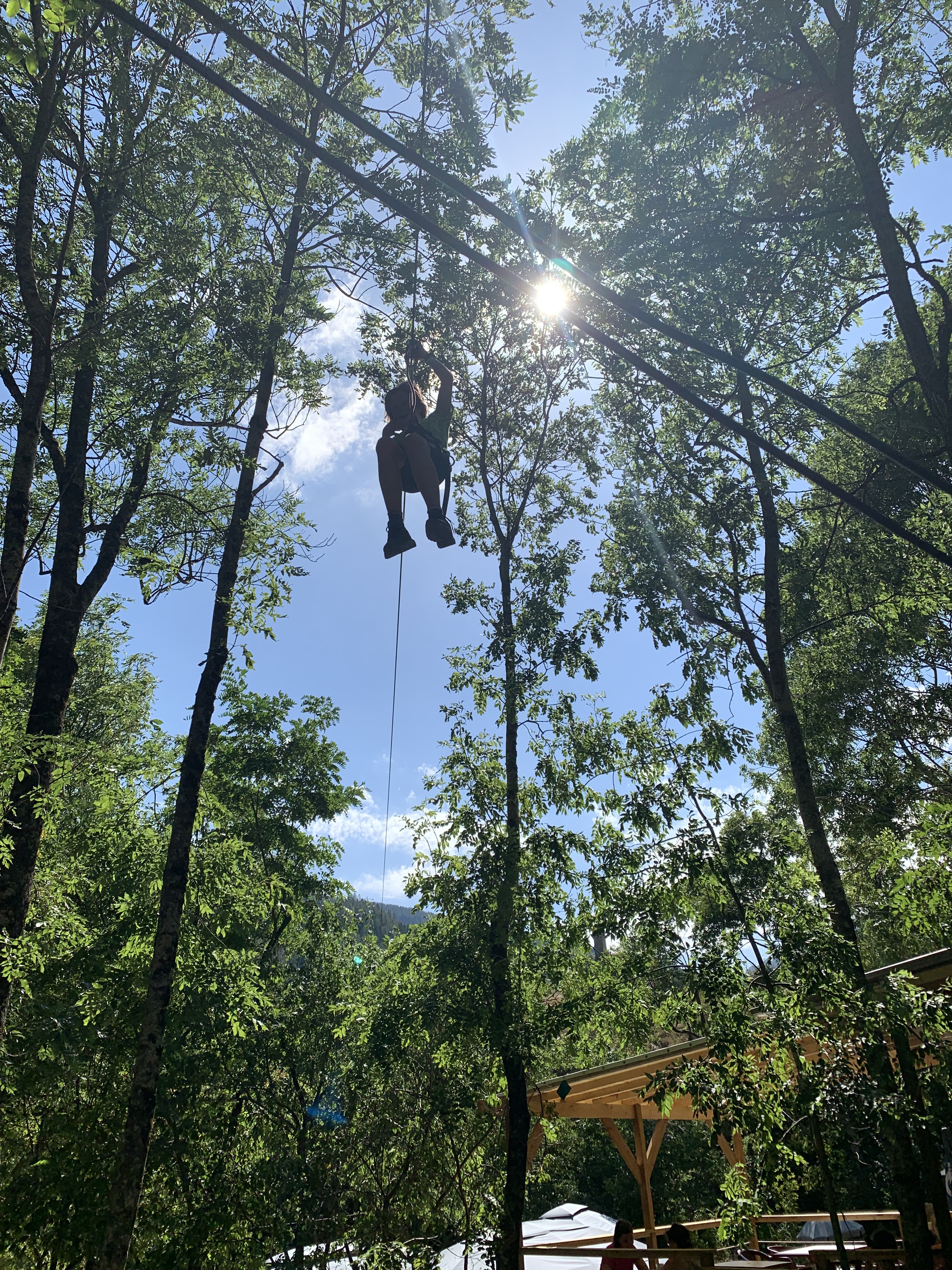 Super tyroliennes au dessus de la rivière, possibilité de faire le tour d'un immense rocher comme en escalade et de beaux parcours dans les arbres. La hauteur est moyenne mais déjà assez impressionnante. Le personnel et les saisonnièrs sont super sympa. Je recommande