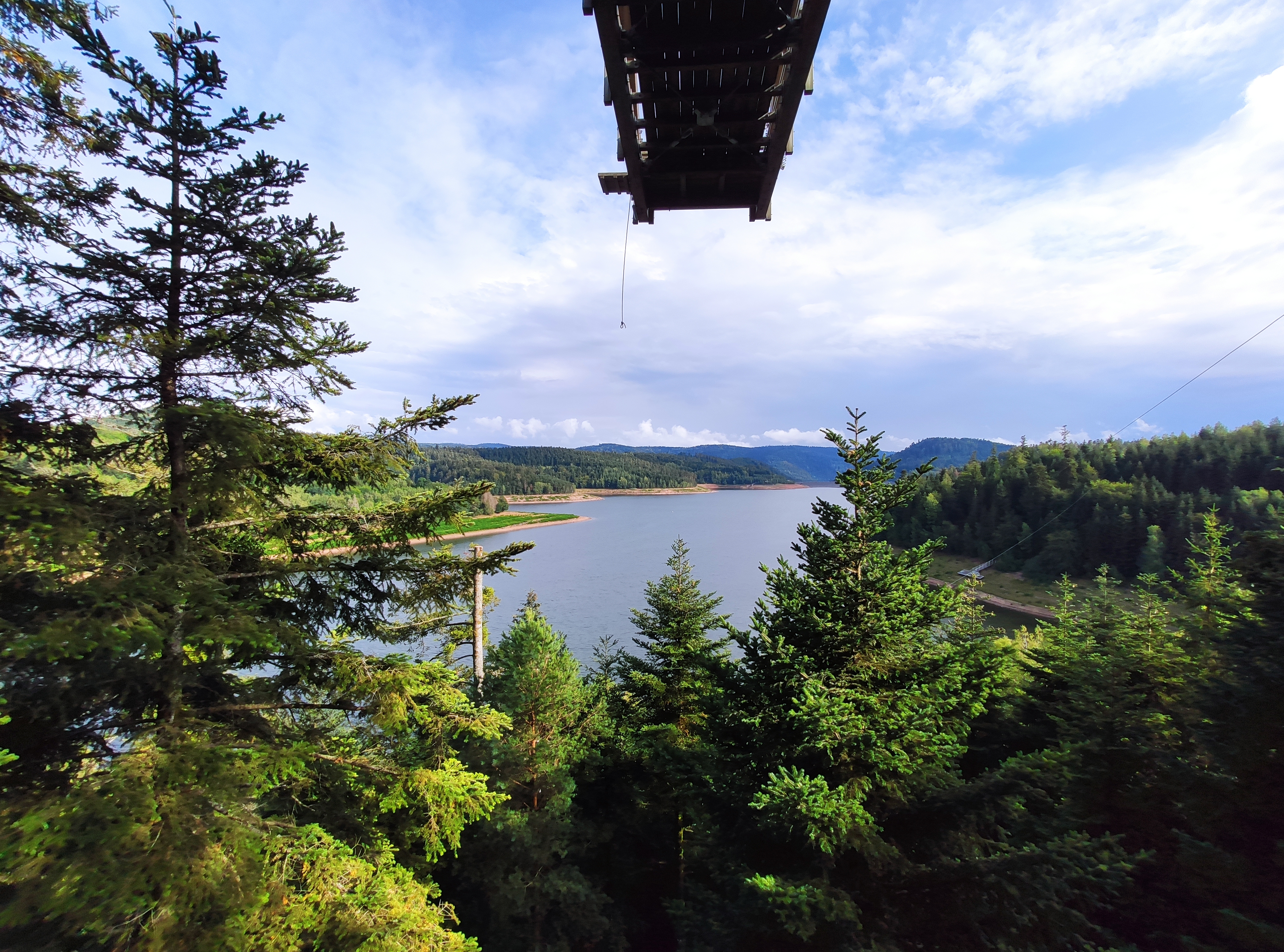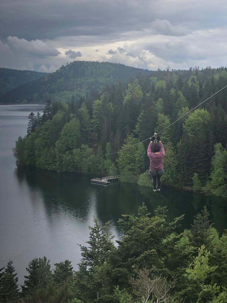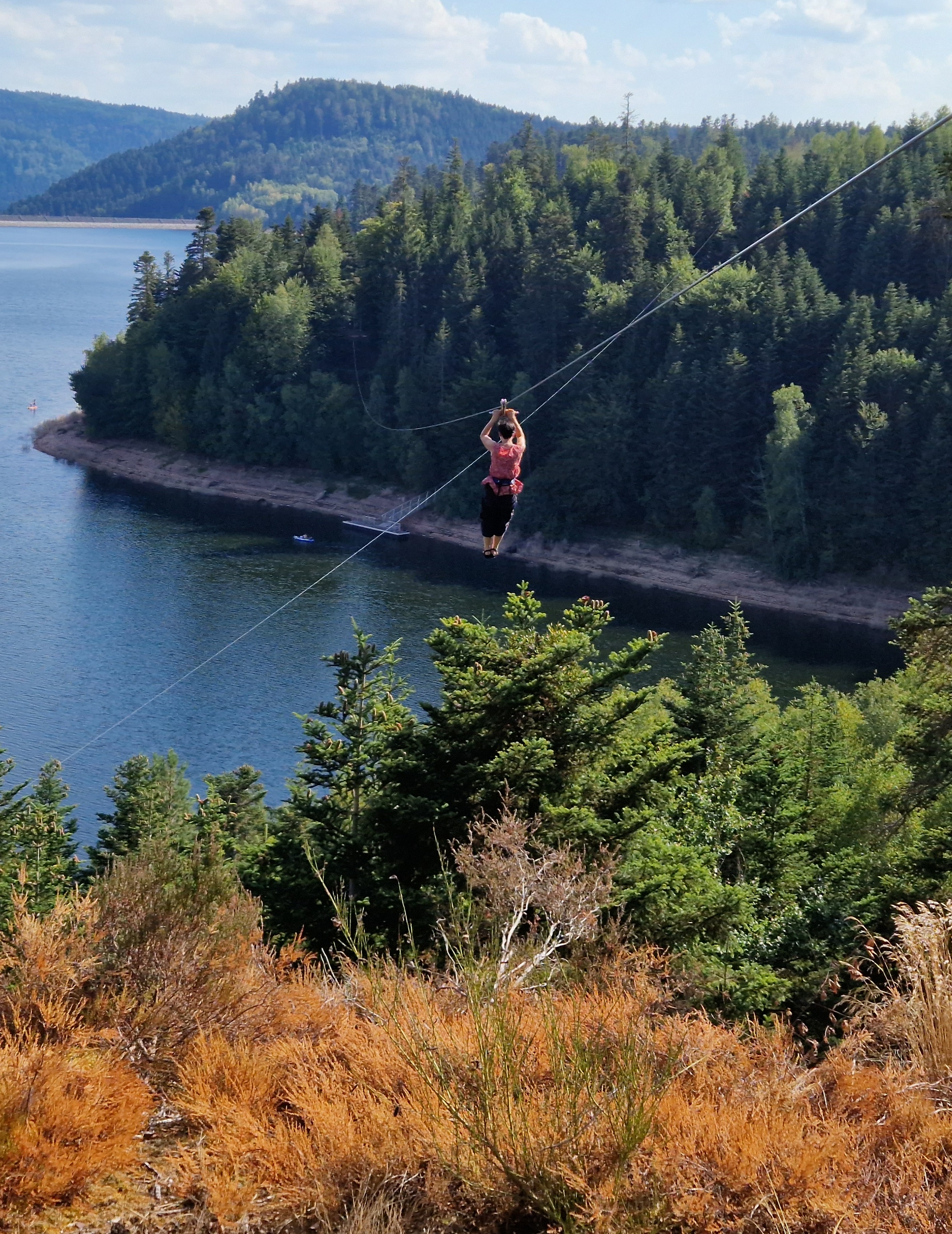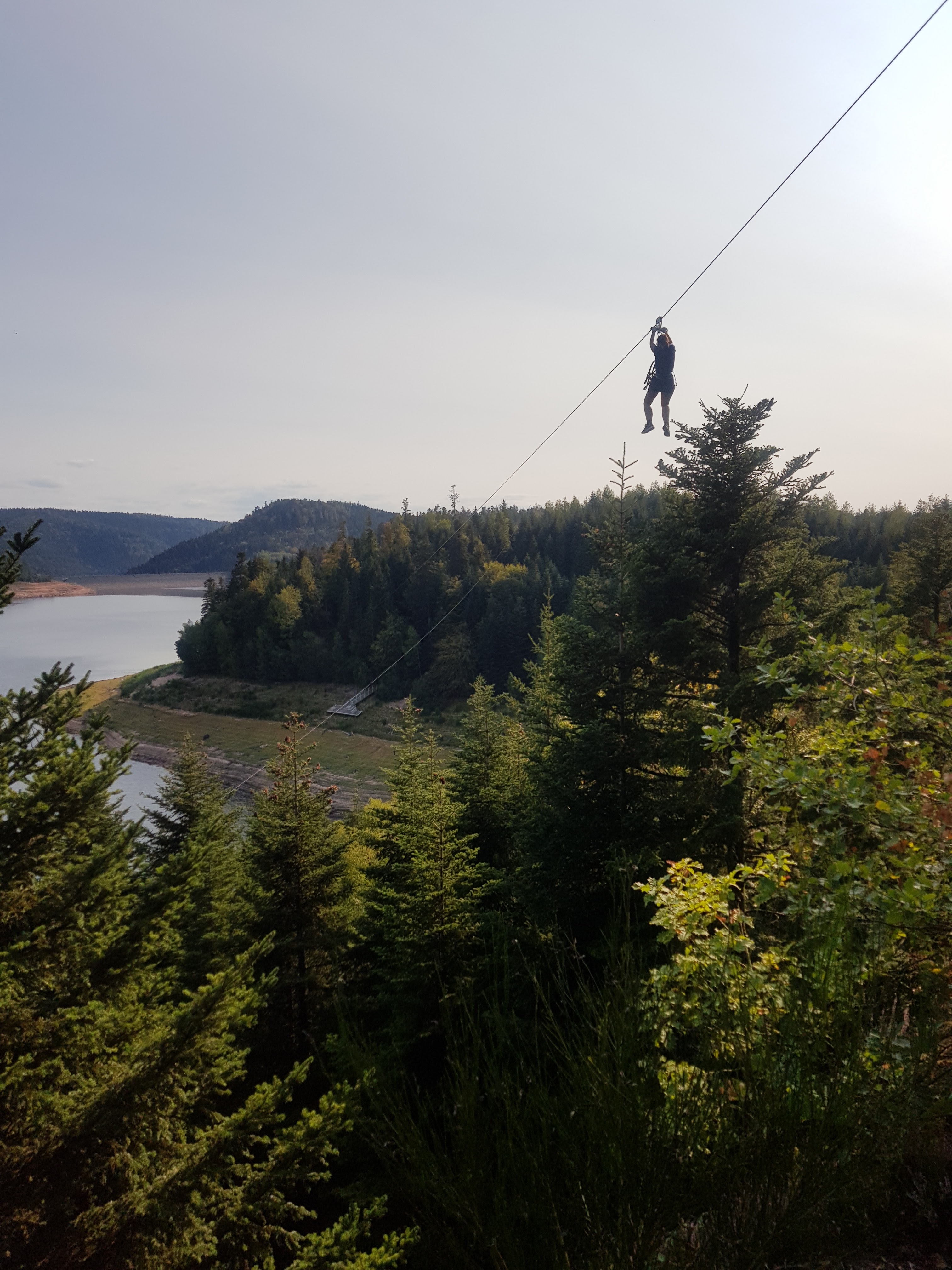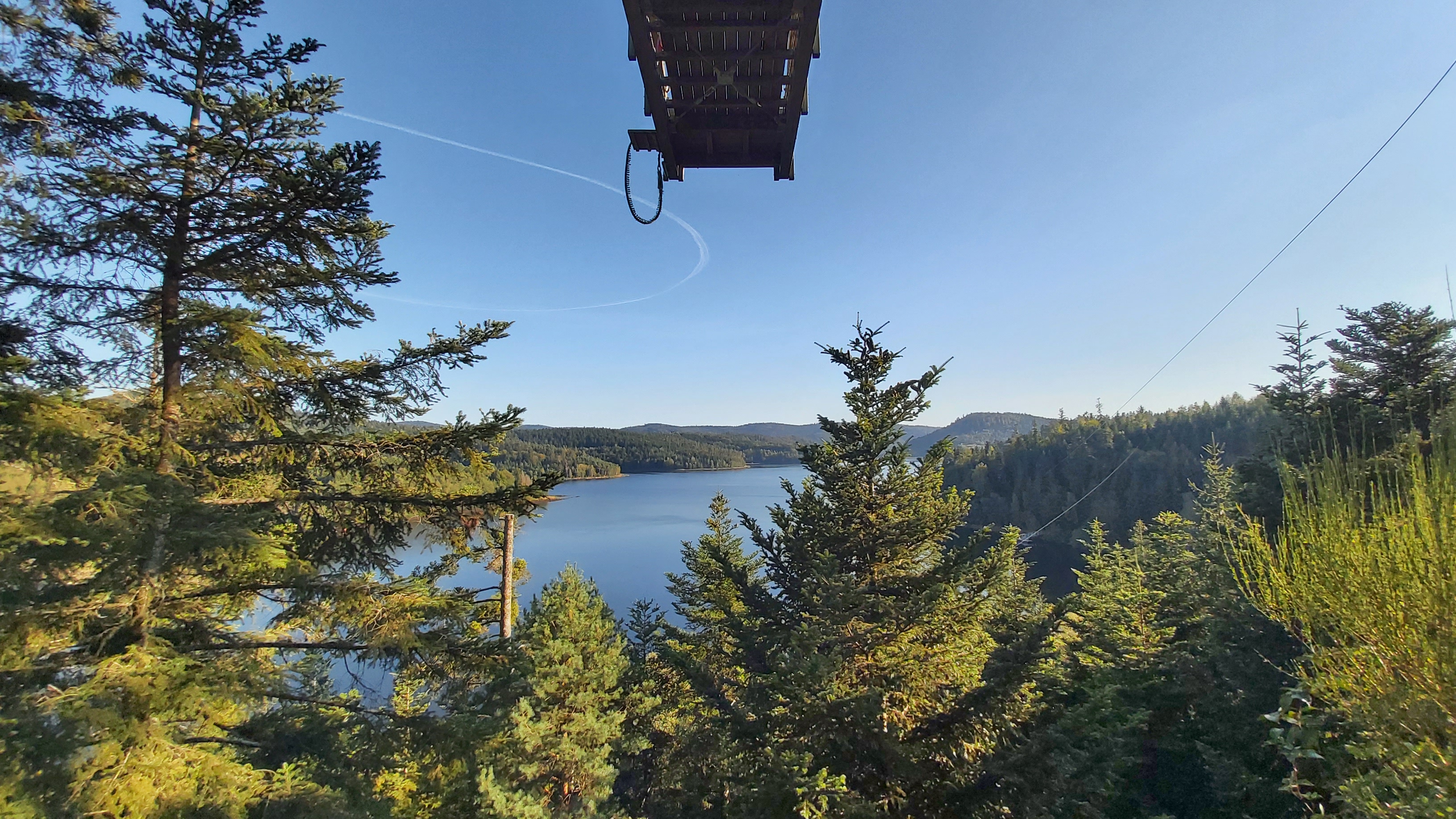 Parcours acrobranches sympas et très sécurisés, accessibles aux débutants. 2 tyroliennes à faire au dessus du lac de Pierre Percée.