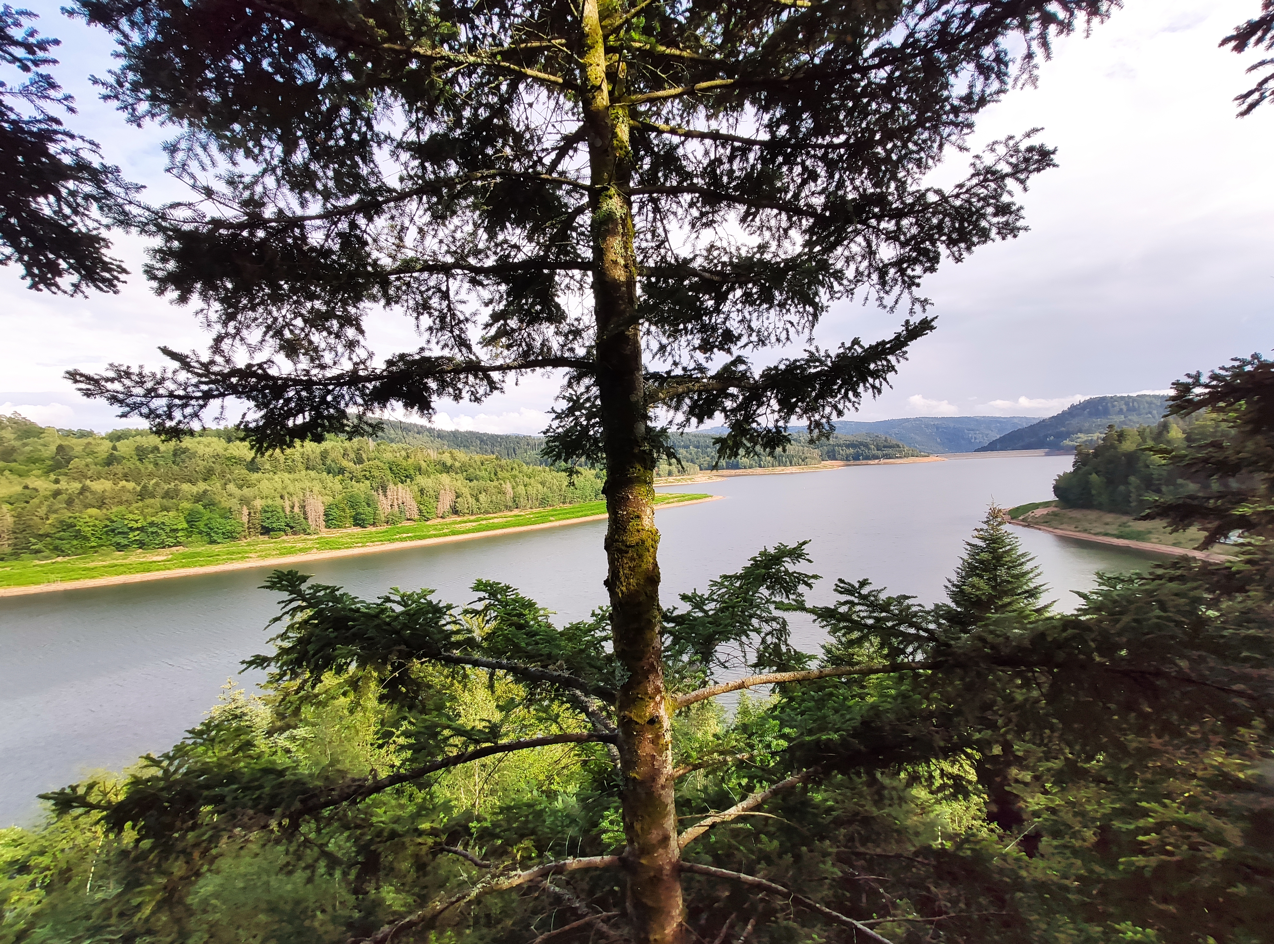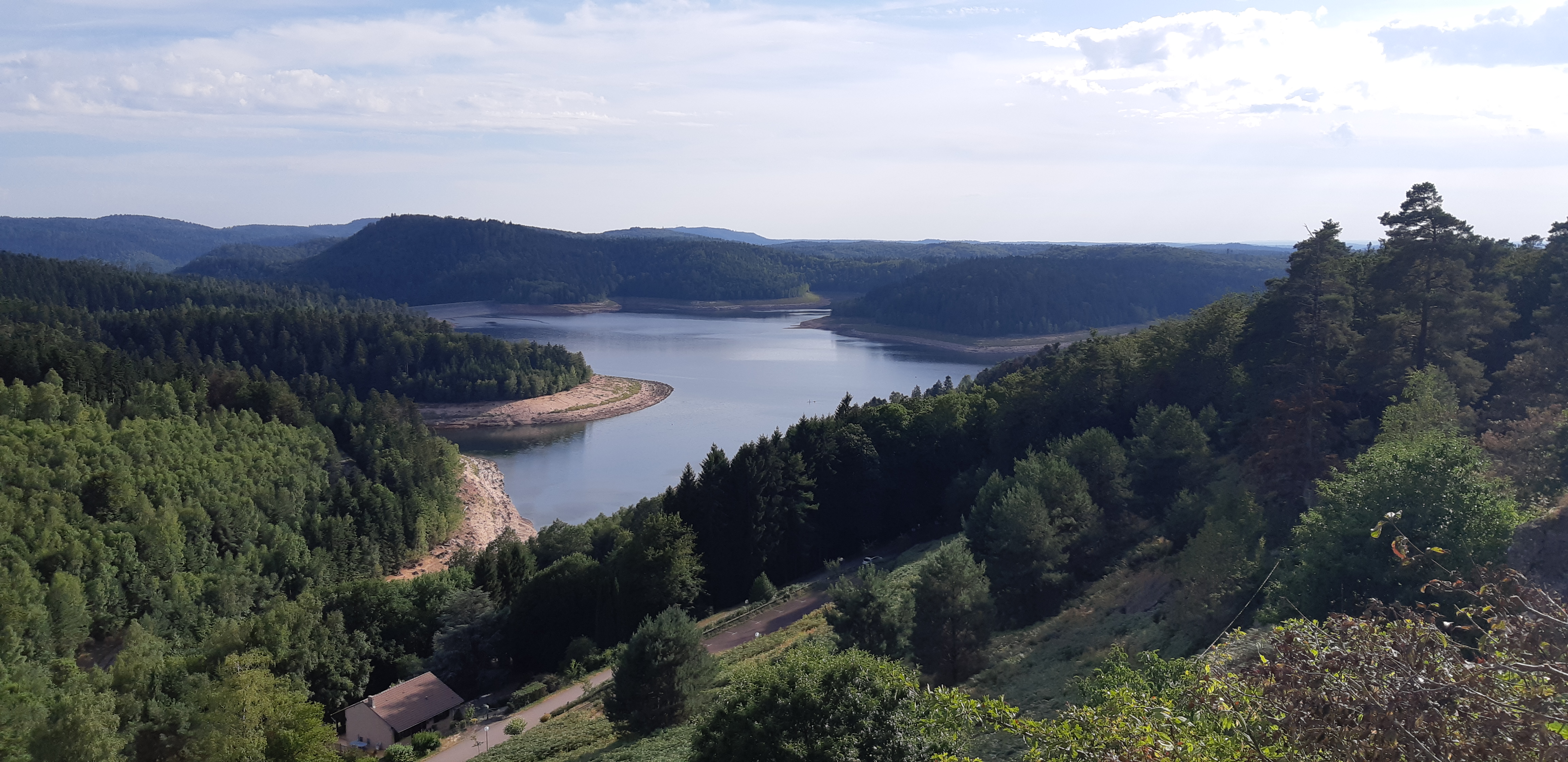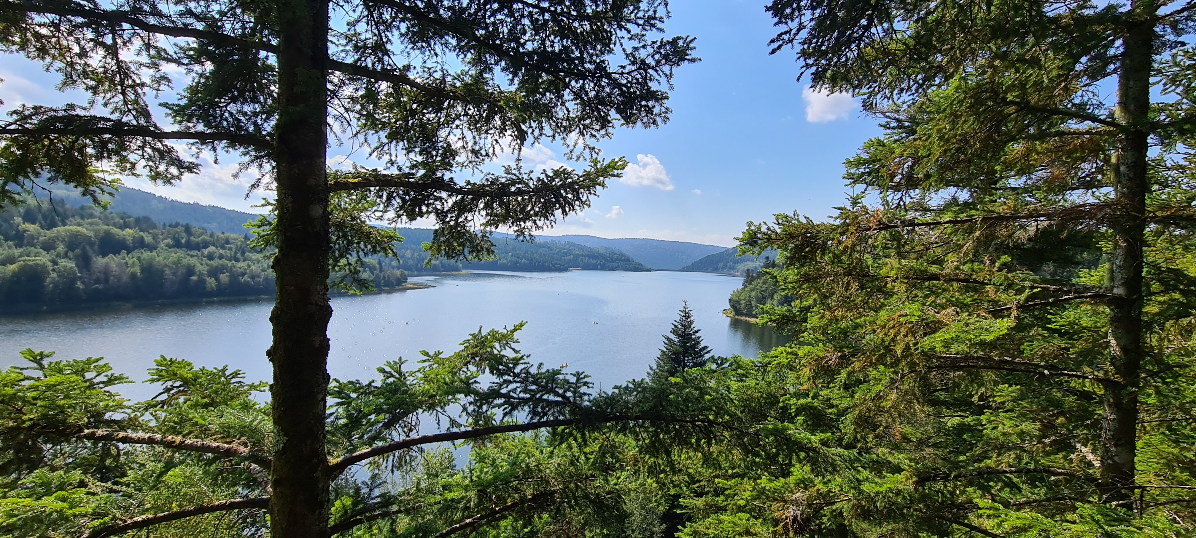 Bel endroit avec vue sur le lac de Pierre Percée. Belle balade en famille. A voir .