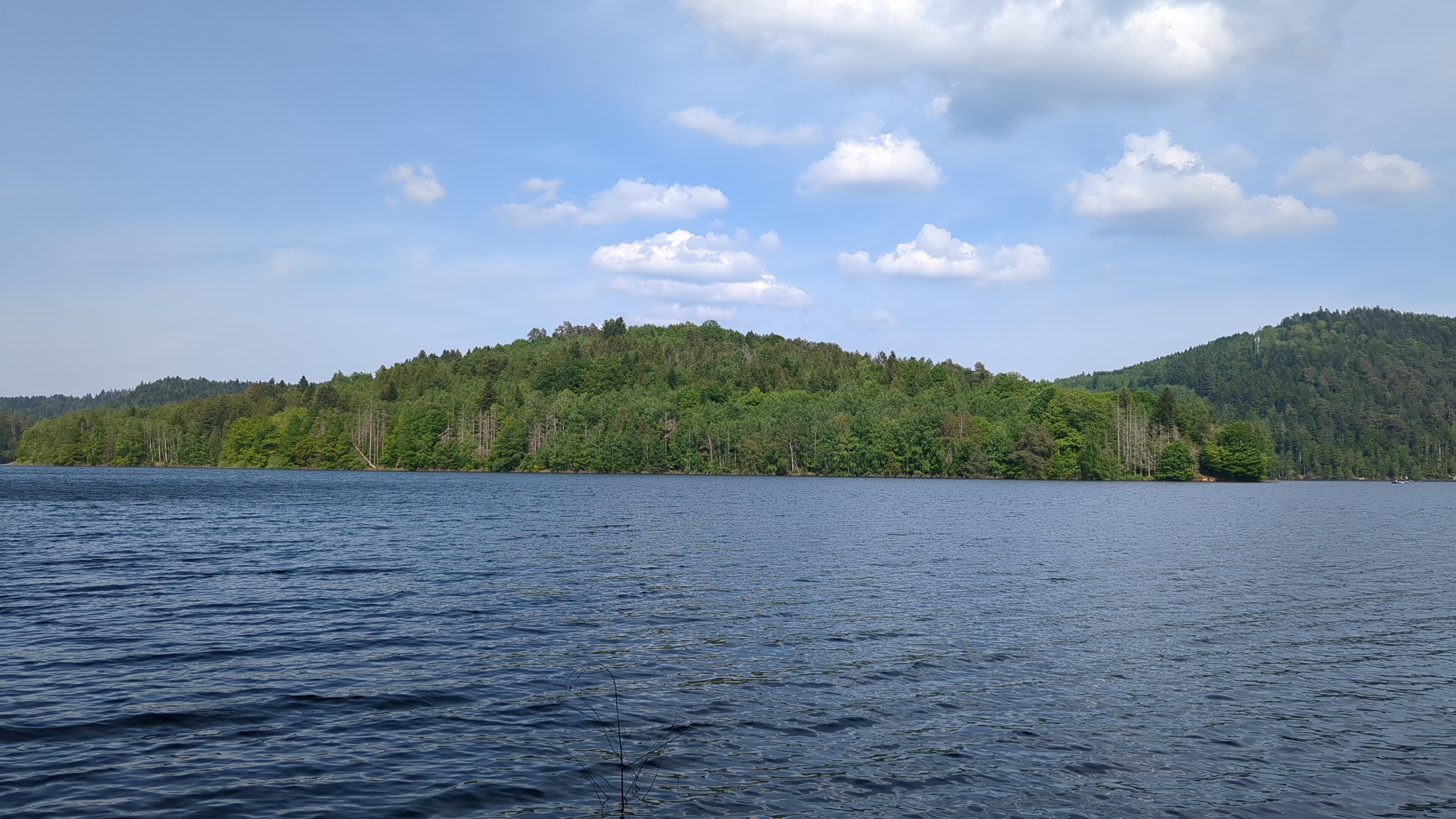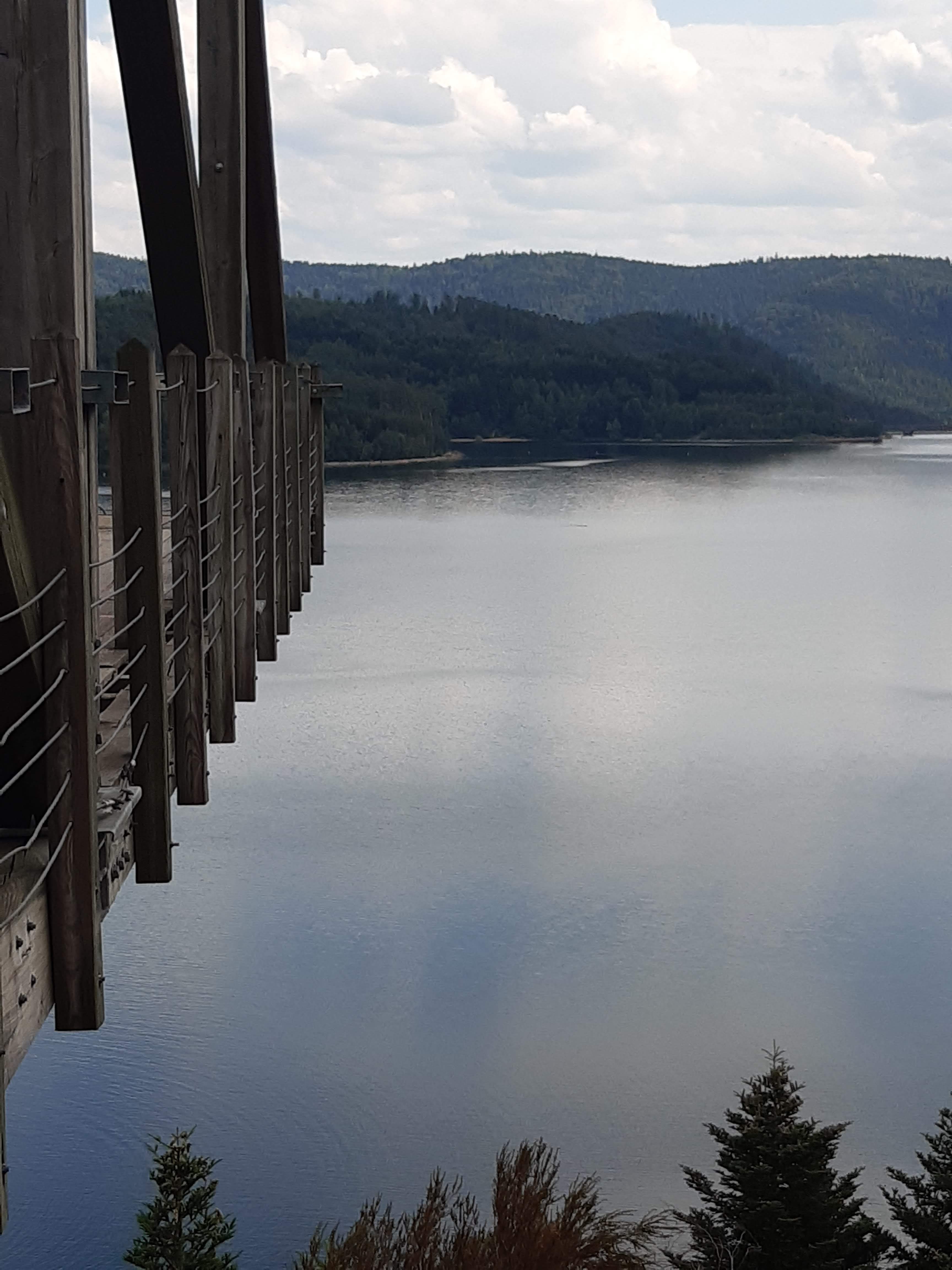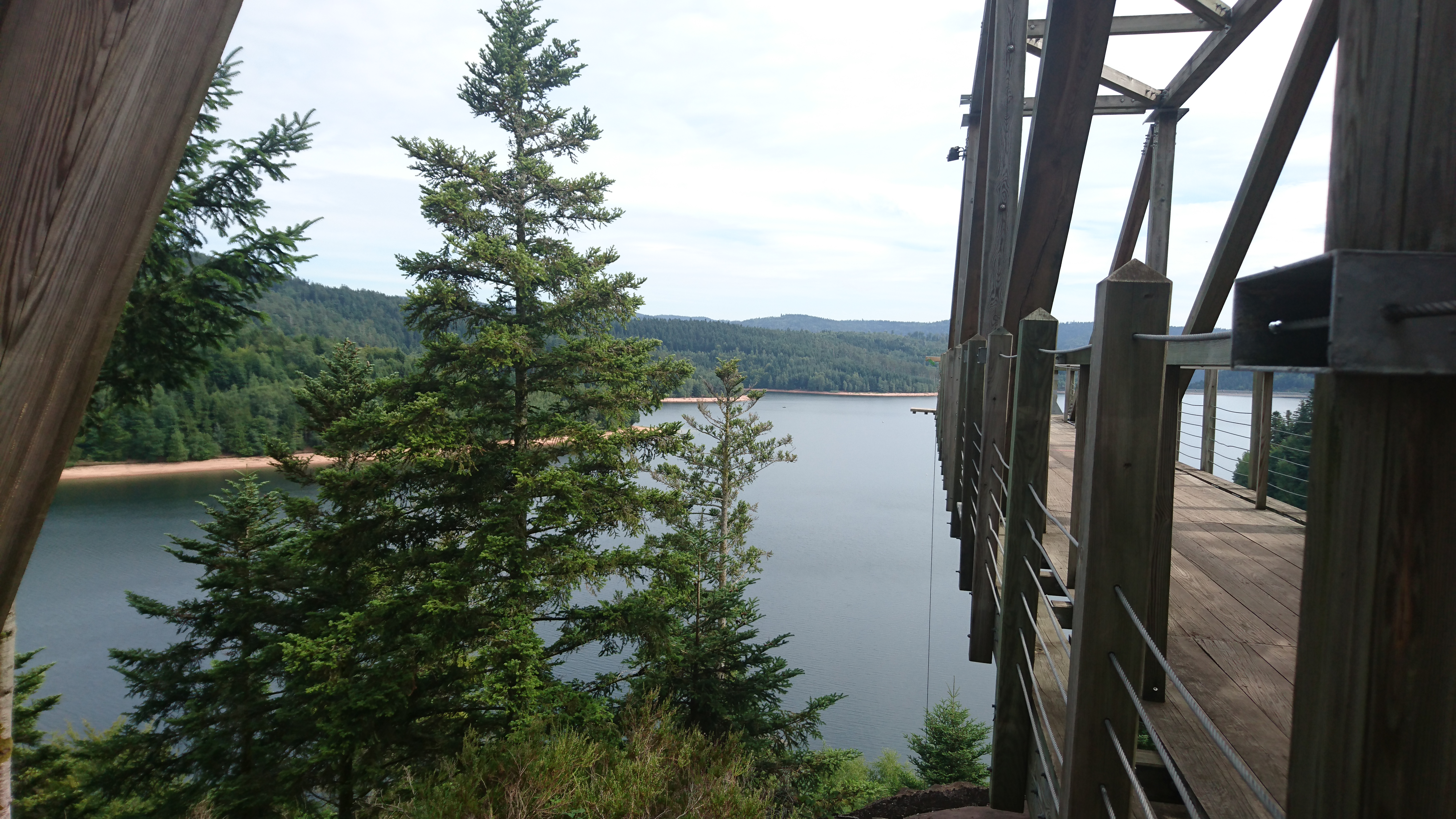 Bel endroit avec vue sur le lac de Pierre Percée. Belle balade en famille. A voir .