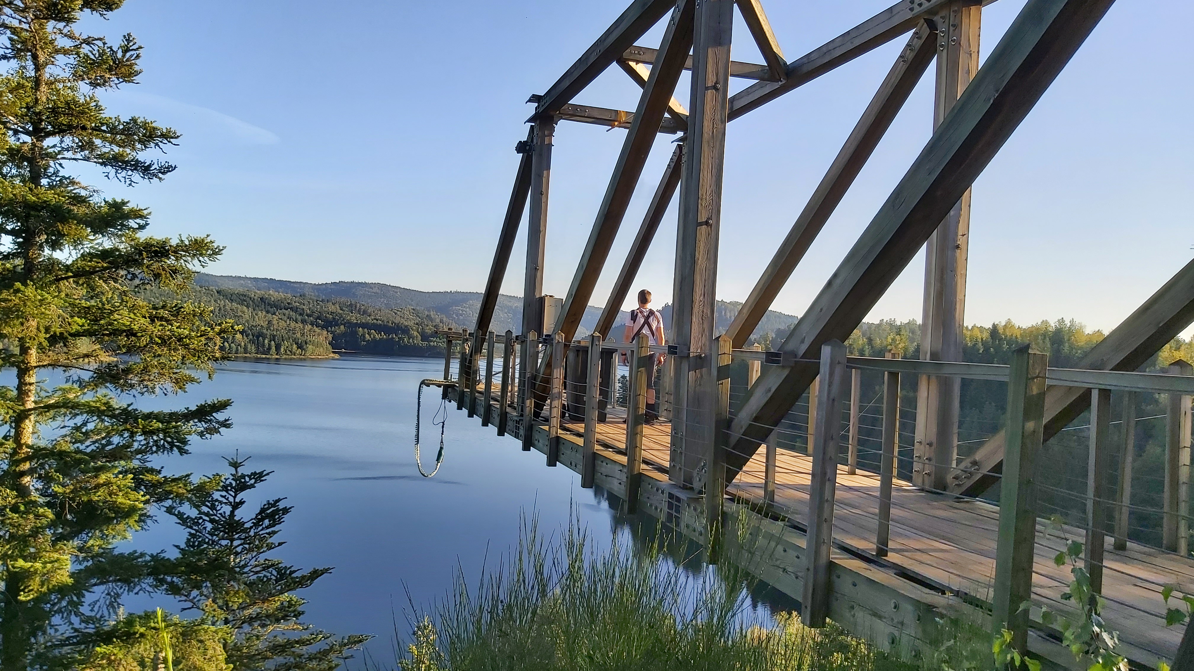 la tyrolienne au dessus du lac est génial , bien encadré niveau sécurité pas plus de 100 kg pour la descente on fait un aller retour donc pas besoin de prévoir un point de récupération on revient là où on est parti