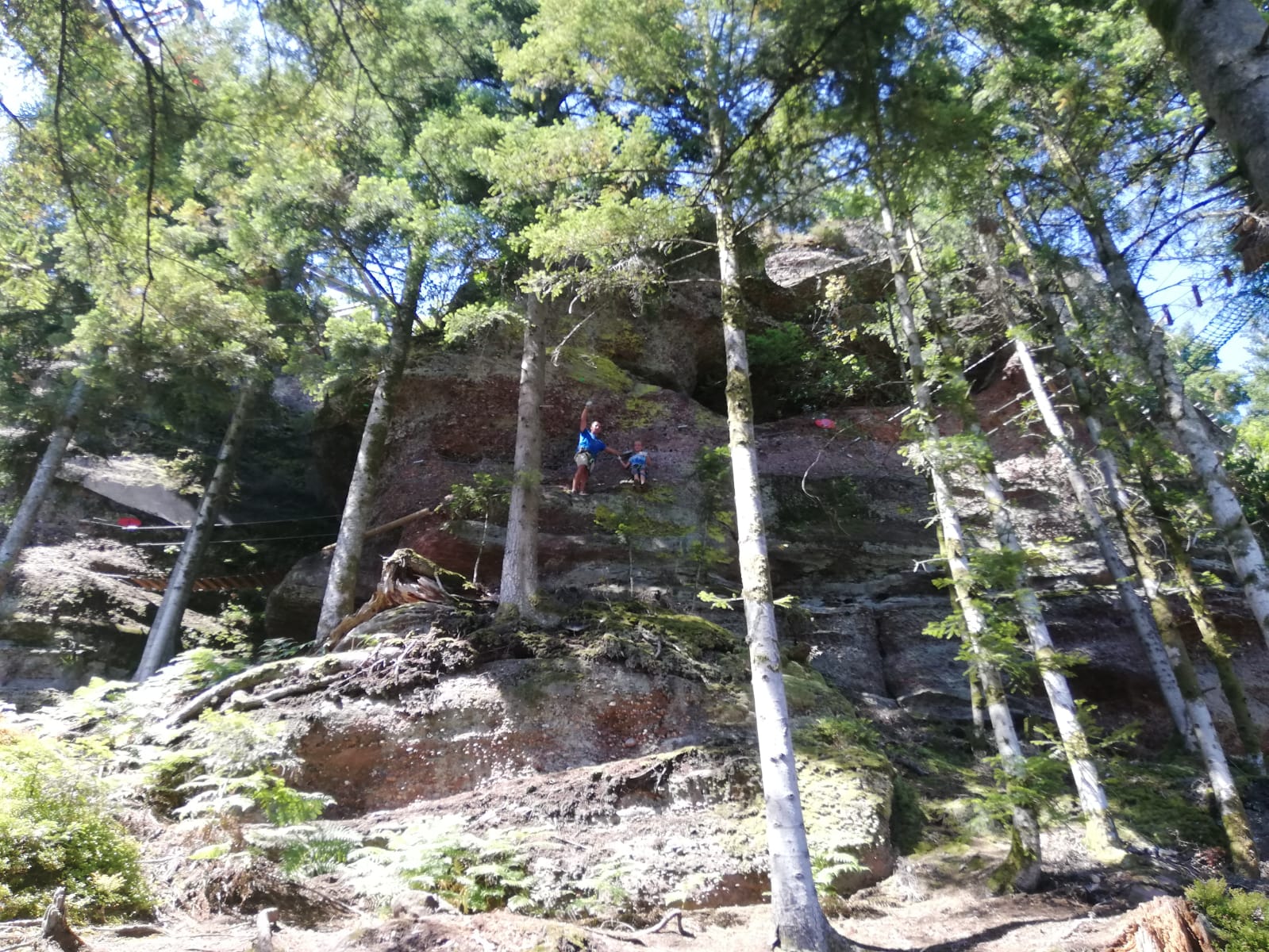 Très beaux cours d'escalade. Aussi bien à travers les arbres que le long de la paroi rocheuse. De plus, 2 longues et spectaculaires tyroliennes au-dessus du lac. Également une aire d'escalade et de jeu stimulante pour les plus petits. Vous pouvez facilement y passer une demi-journée. Hautement recommandé.