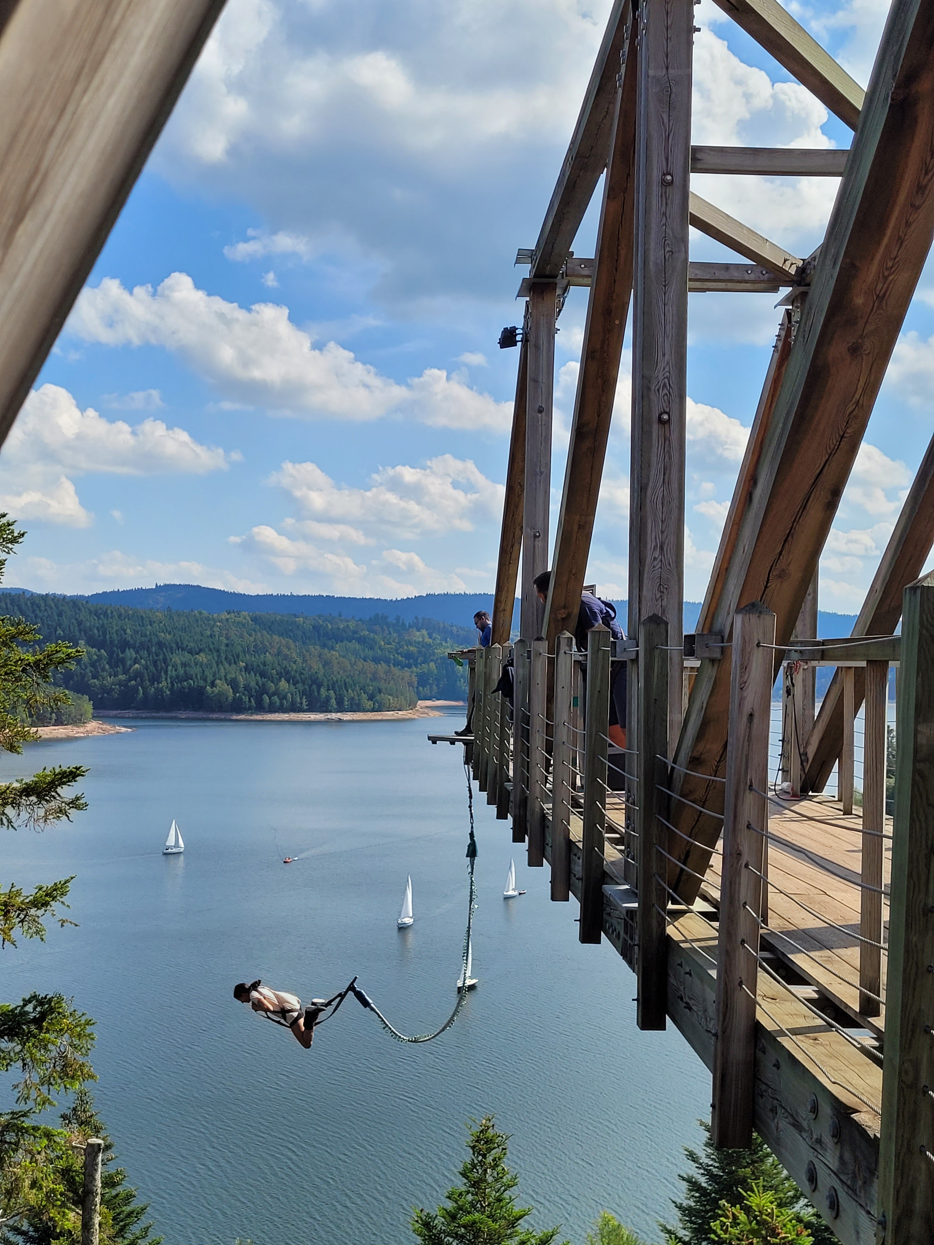 Vue sublime sur le lac,tyrolienne vraiment extra,à faire absolument 🤩!et le saut à l'élastique pour les plus courageux 😎.