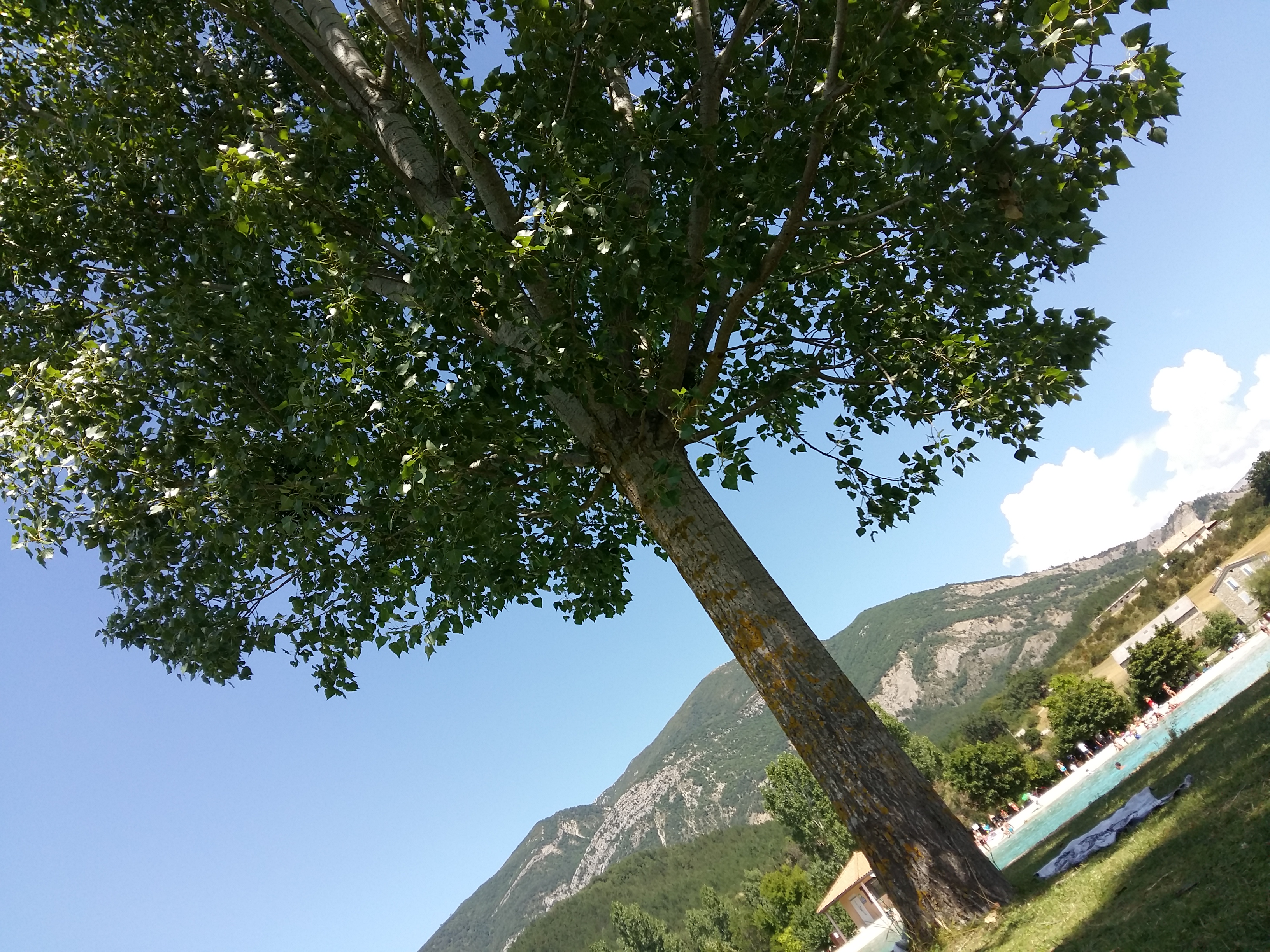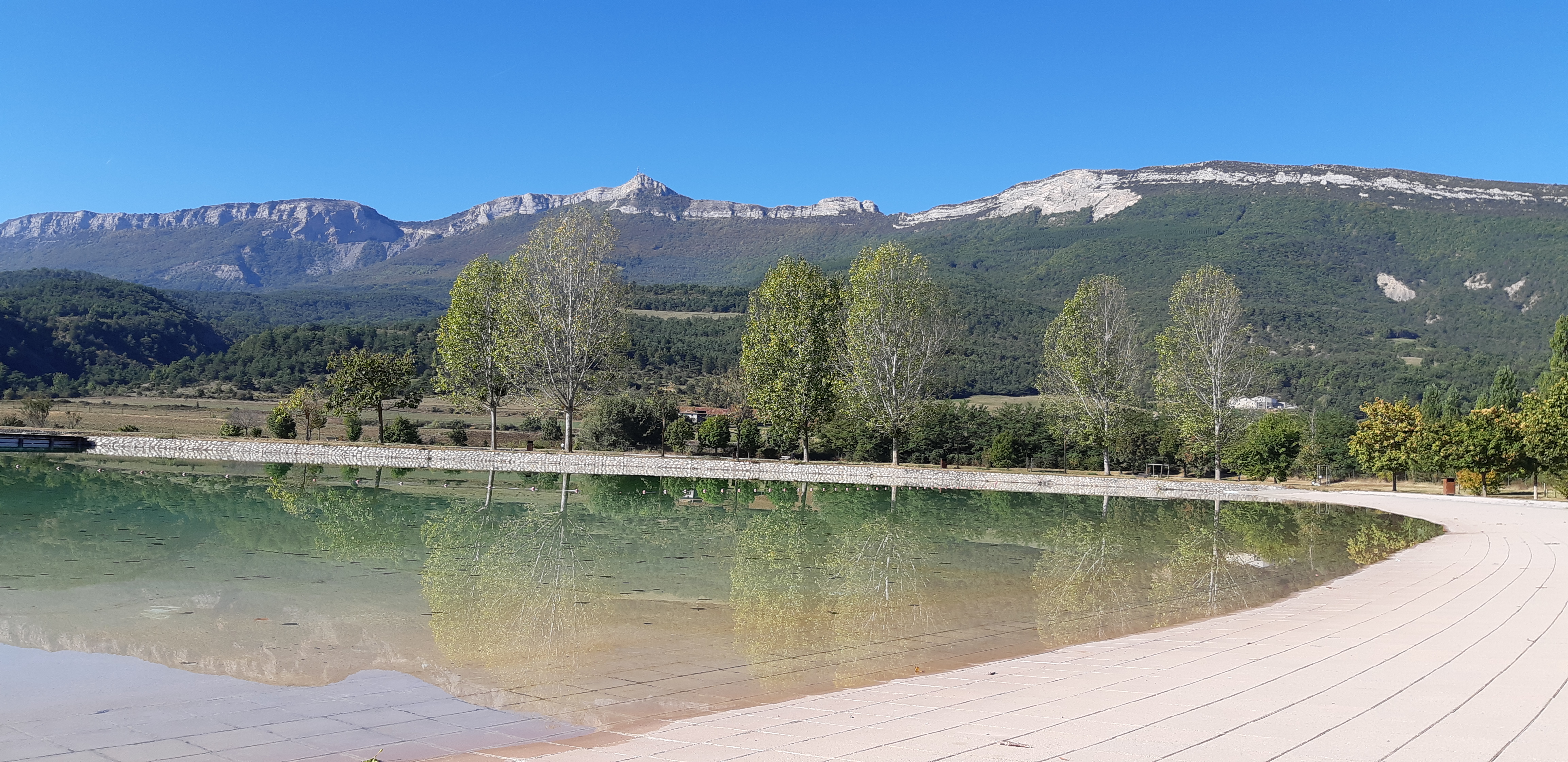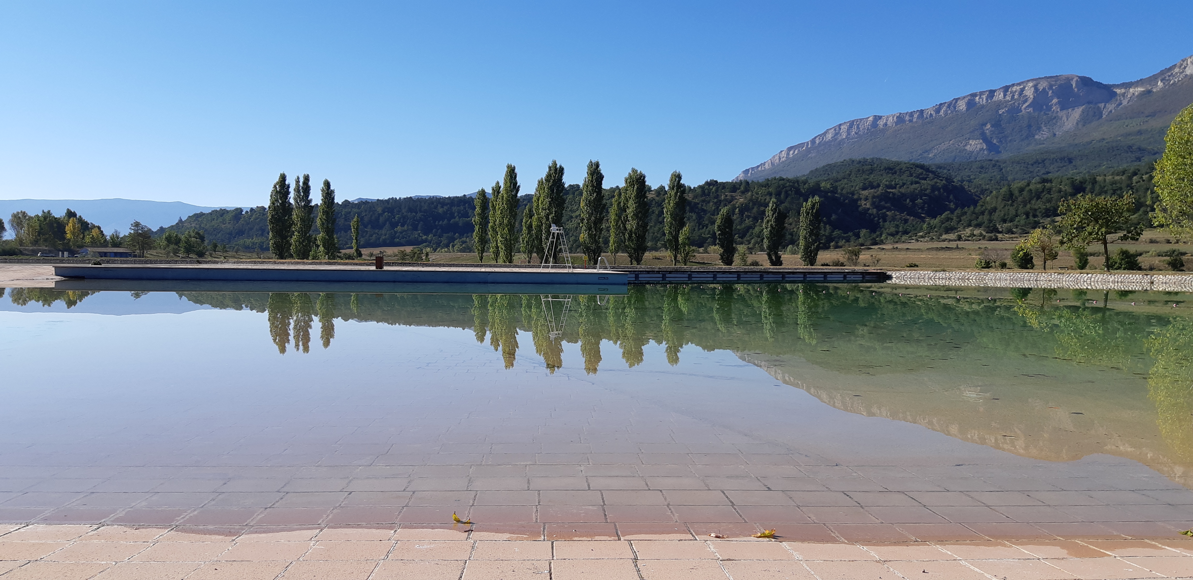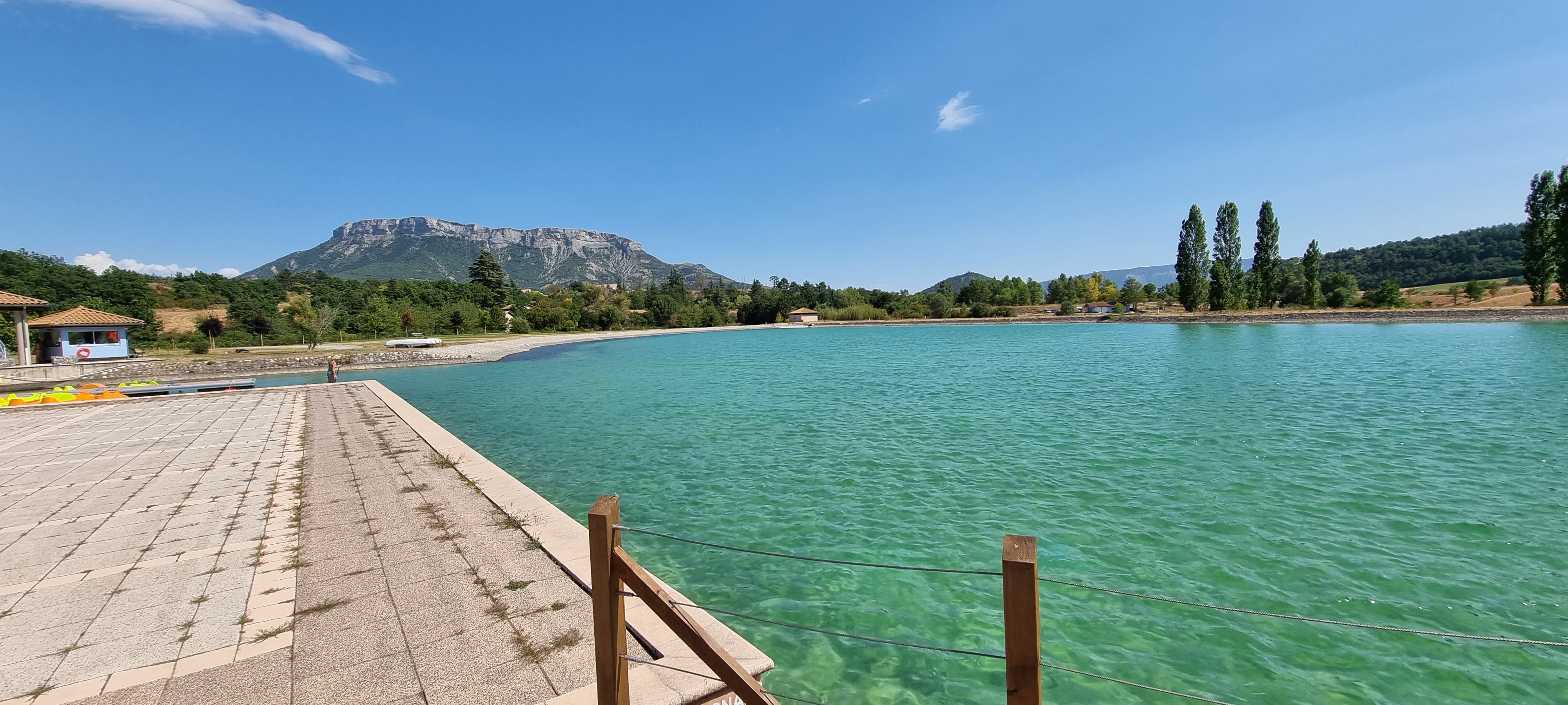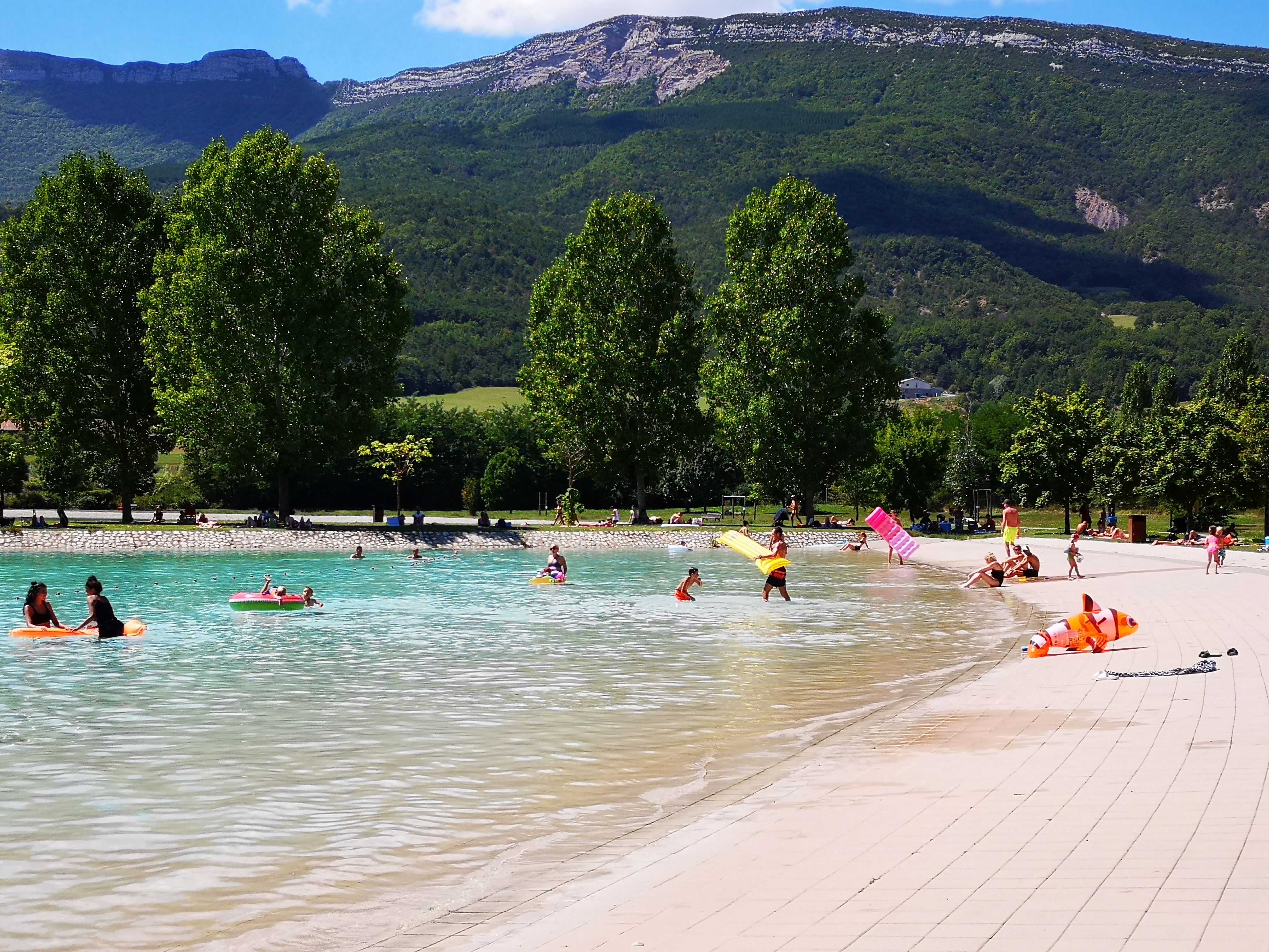 J'adore cet endroit. Comme au milieu de nulle part, protégé par les montagnes, on a cette impression d'être seul au monde tout en étant entourée de plein de gens. Une drôle de sensation mais ô combien plaisante. Plage de gazon, d'asphalte ou de pierres, à l'ombre d'un arbre ou d'un parasol ; barbecue, pique-nique traditionnelle ou même restaurant-buvette ; eau chlorée ou naturelle ; vous n'aurez que l'embarras du choix. Repos, dépaysement et farniente sont au rendez-vous !