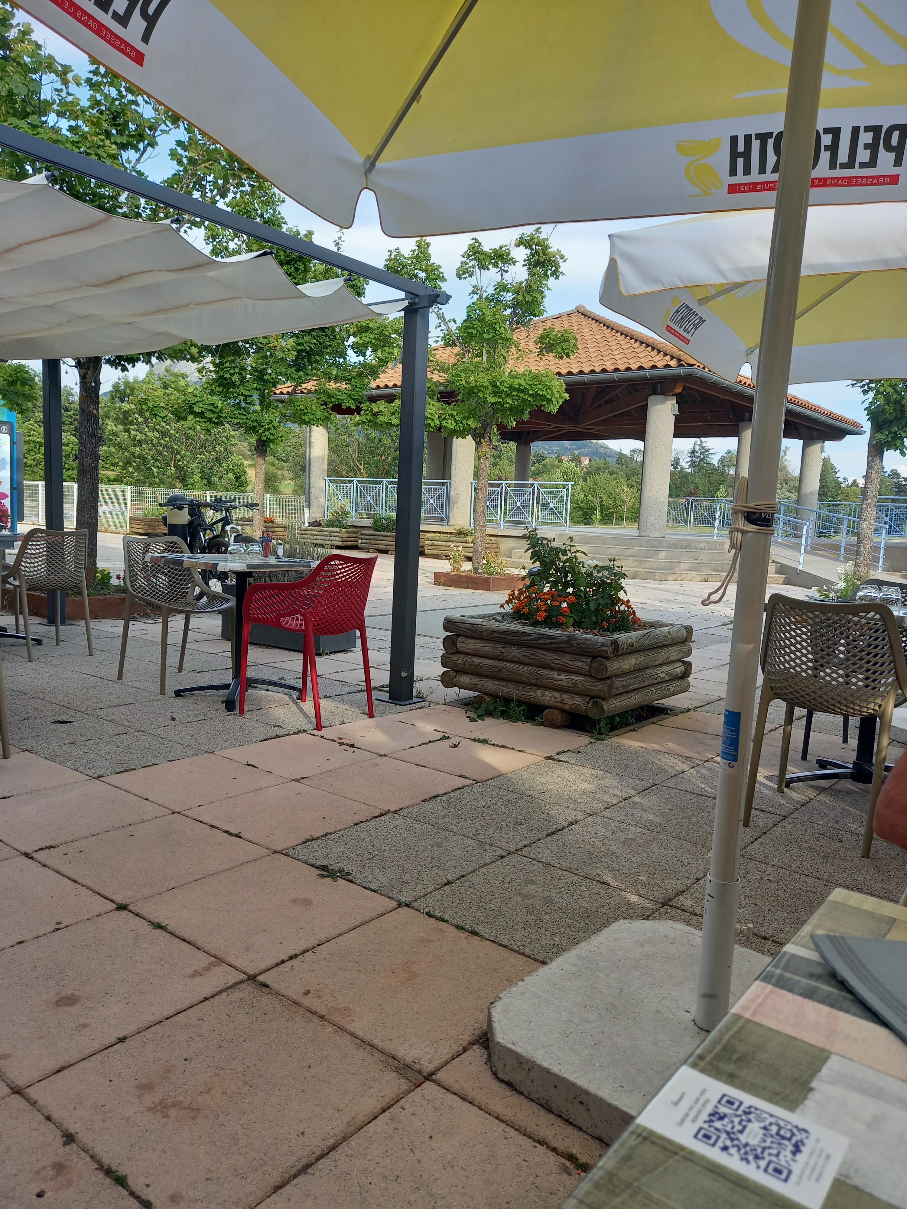 Cadre tres agréable avec une belle vue donnant sur un plan d'eau où l'on peut se baigner. Il y a aussi moyen de faire du pedalo et canoe. Le restaurant présente une carte simple mais efficace. Le service est rapide et les produits sont frais.