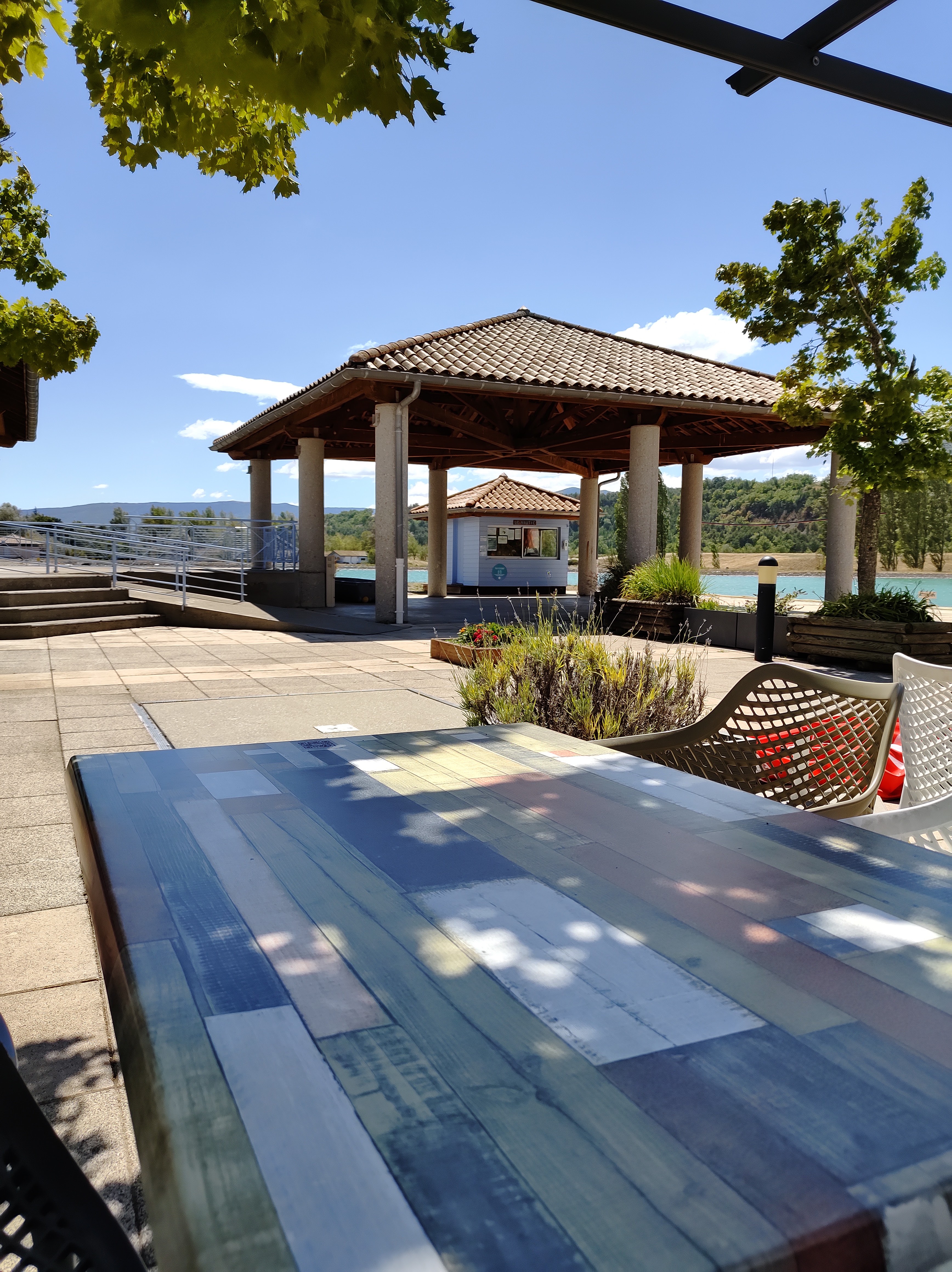 La base n'était pas ouverte, nous avons pu faire une pause et pique niquer sur les tables, au calme et à l'ombre.