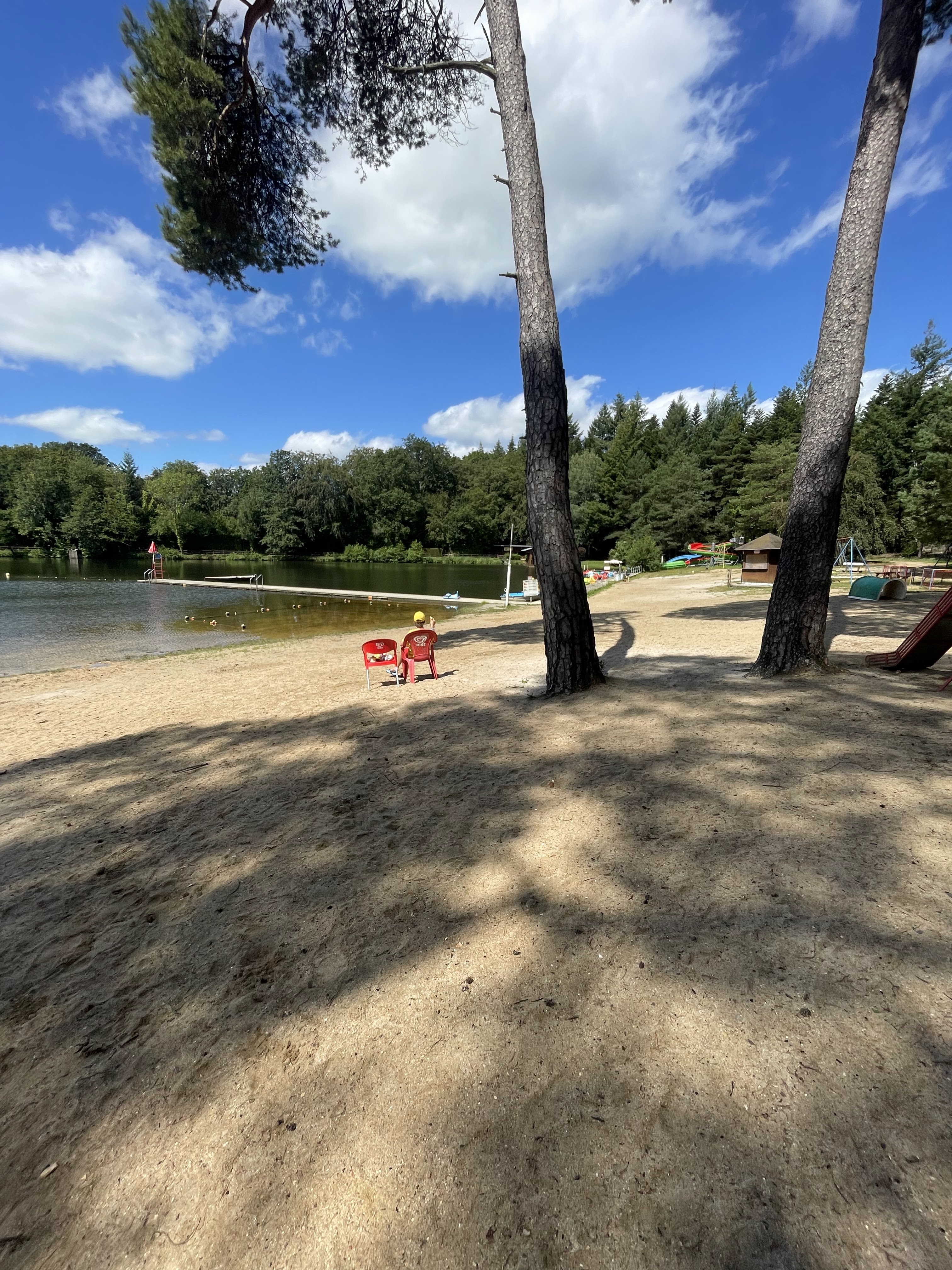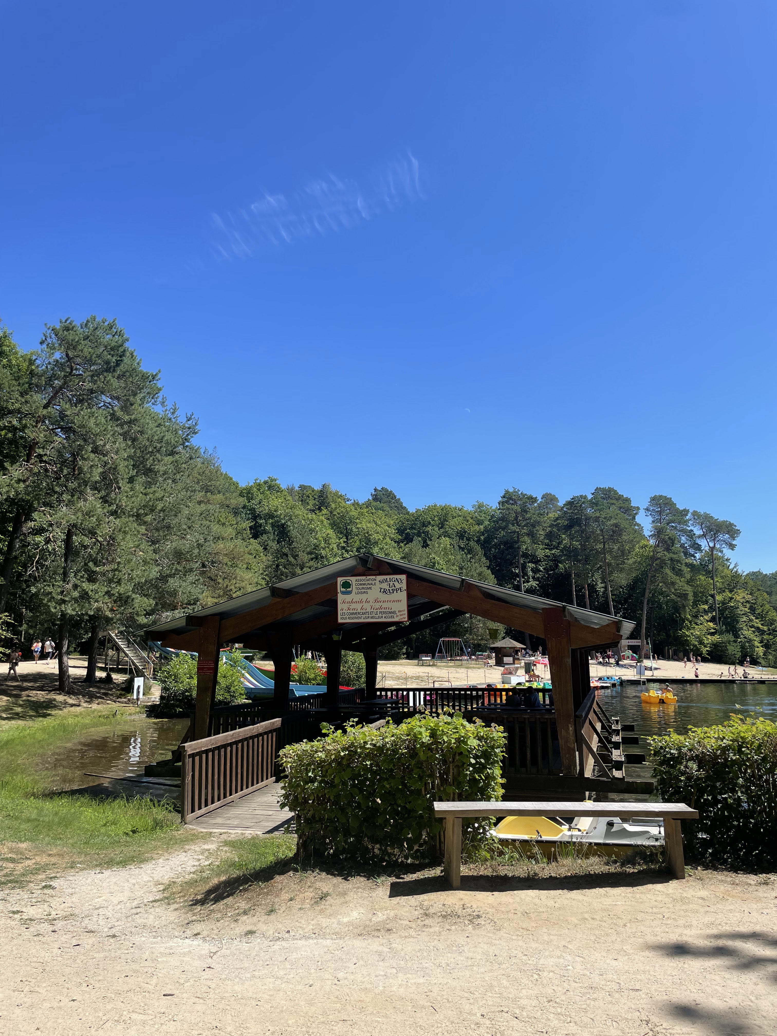 Nous sommes allés découvrir cette base de loisirs le 23.08.23. L'endroit est tres ombragé, nombreuses table de pique nique autour du parking devant l'entrée situé au cœur des bois. L'entrée et payante (3€ adulte et 1.50€ enfant de - de 12 ans). Las activités tel que pedalo, canoe, mini golf, ou toboggan sont payante et à ajouter au prix de l'entrée. Le mini golf est au cœur de la foret, donc tres ombragé, parcours sympa mais vieillissant besoin d'un bon entretien et balles un peu trop rebondissantes. L'eau de la base de loisirs ne donne pas envie de s'y baigner, verte et odorante par endroit. Il y a de nombreux poissons mais je pense qu'ils n'ont pas accès aux espaces de baignade car filets. Terrasse couverte sur l'eau tres agréable et situé en face du petit snack (crêpe, glace, boissons...). Jeux pour enfant sur le banc de sable. Nous avons passé un bon après midi en famille avec les enfants. Paiement à l'entrée mais possibilité de payer les activités directement à la petite cabane sur la plage. Arrivée à l'ouverture les WC étaient propre.