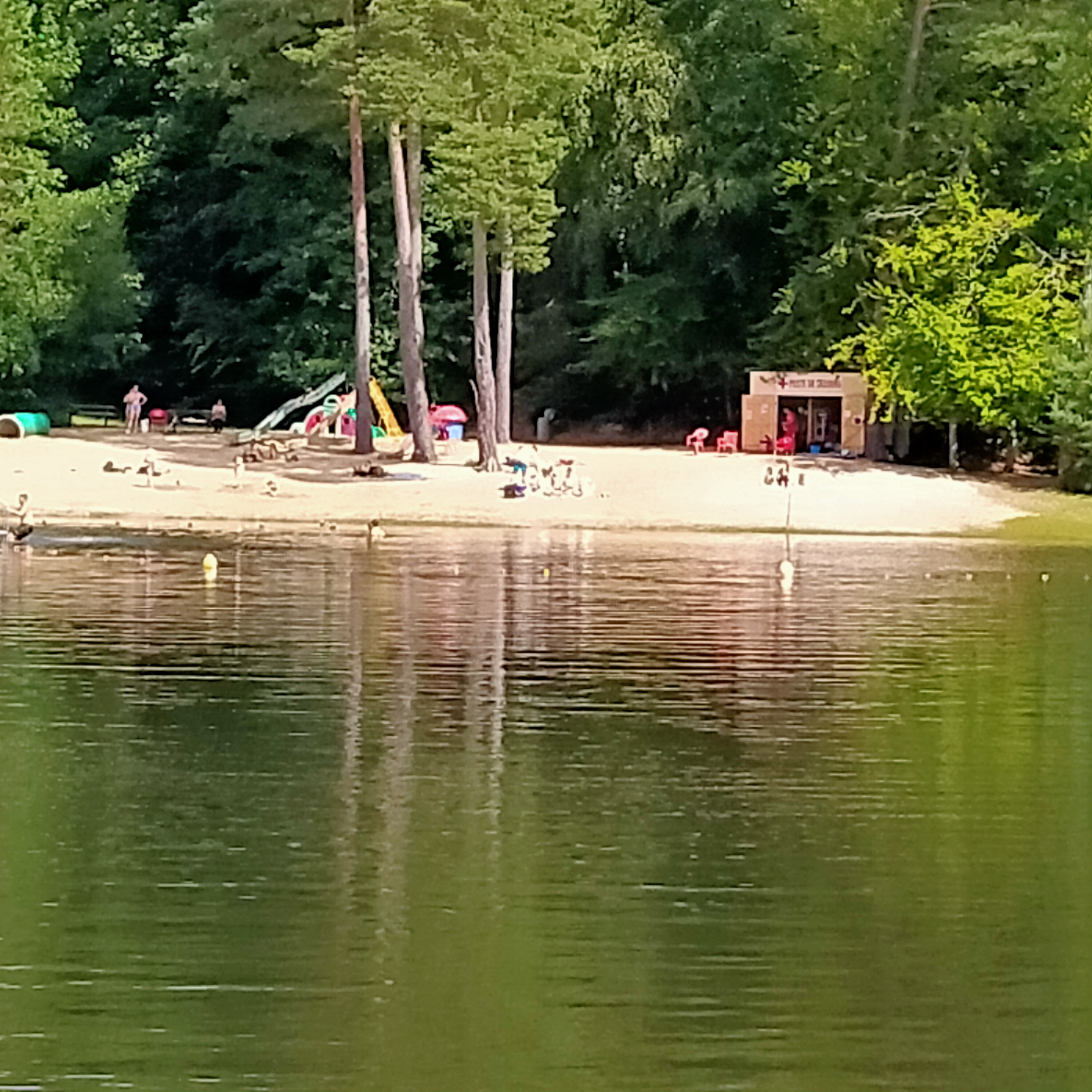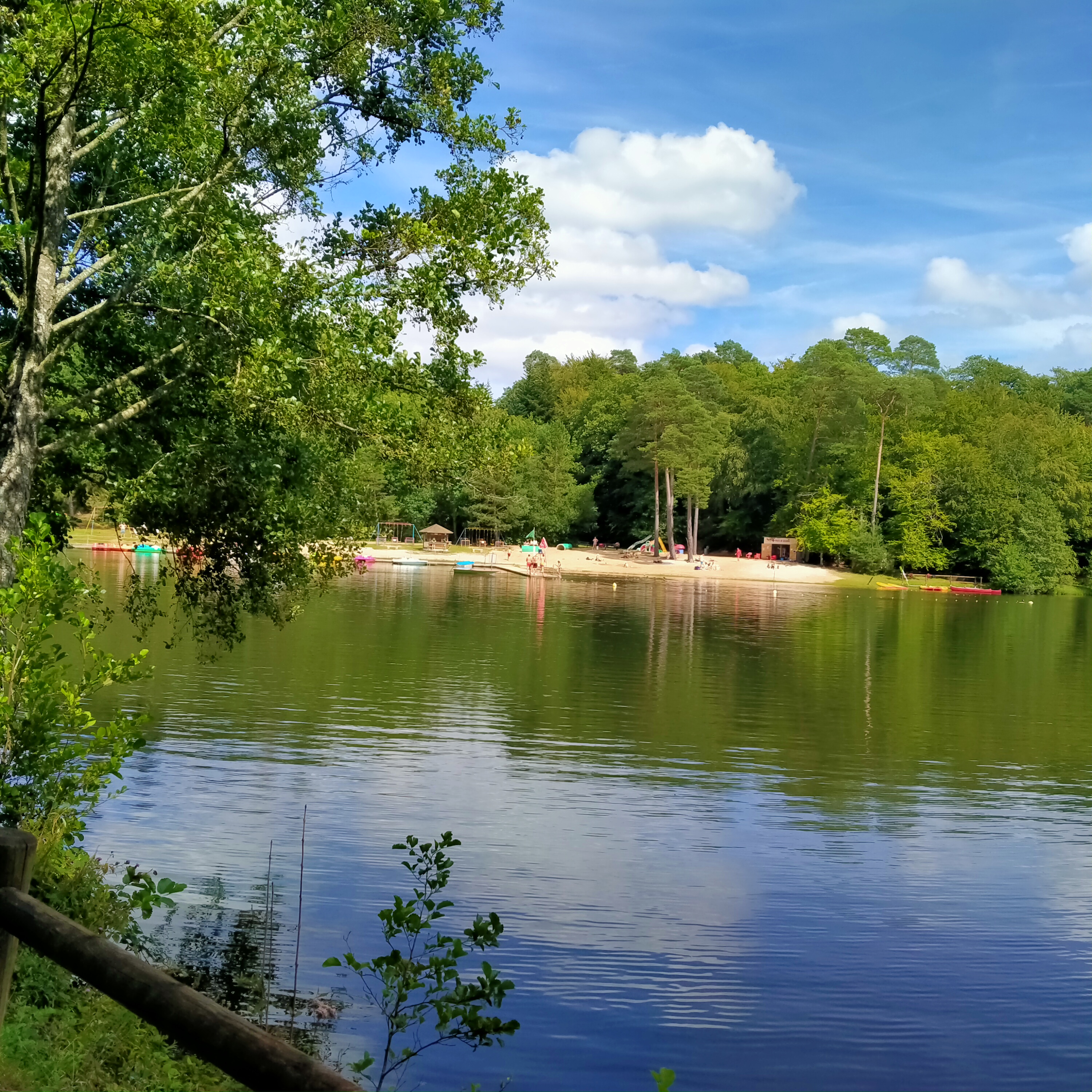 Étang de baignade surveillé aménagé, pédalo, barque, buvette, entrée pas chère.moment agréable