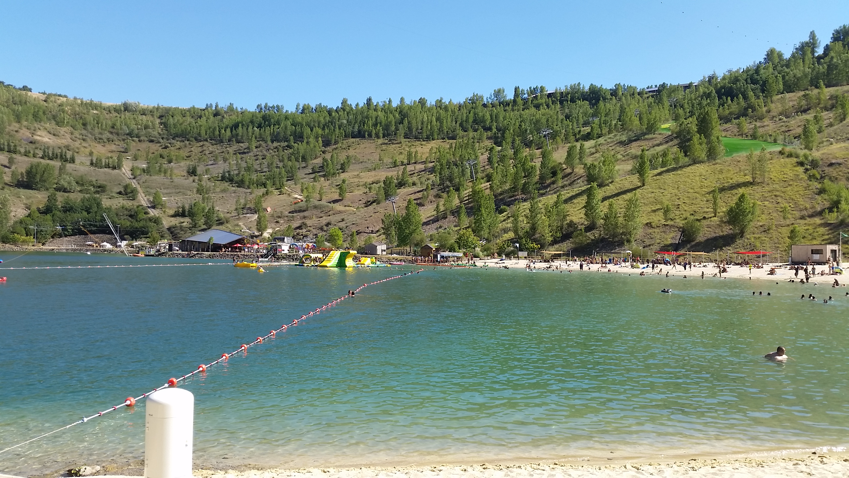 Beaucoup trop d attente !! Pour très peu d activités, en plus , attente en plein soleil ! Le lac est beaucoup trop petit et ne laisse pas assez d espace pour les activités nautiques comme le paddle par exemple. La bouée tractée pareil en plus malgré la file d'attente de 2h quand ont tombe de la boué ont peut remonter alors q une vingtaine voir une trentaine attende derrière vous .Très mauvaise organisation pour le covid , on devait pas être plus de 25 sur les gonflables sur l eau alors que quand j y était il y avait personne ( il faut réserver) tandis que sur la plage nous étions une centaine ! Également une très mauvaise organisation avec les cartes pour payer dans les activités et donc malgré la file d'attente nous sommes obligés de dépenser ce qui reste au snack!! Même si il est vrai que le télésiège est très pratique plutôt que montée et descendre à pied , je trouve sa super que les trampoline et le mini golf soit gratuit, même si il y a pas assez de cannes pour jouer à beaucoup.