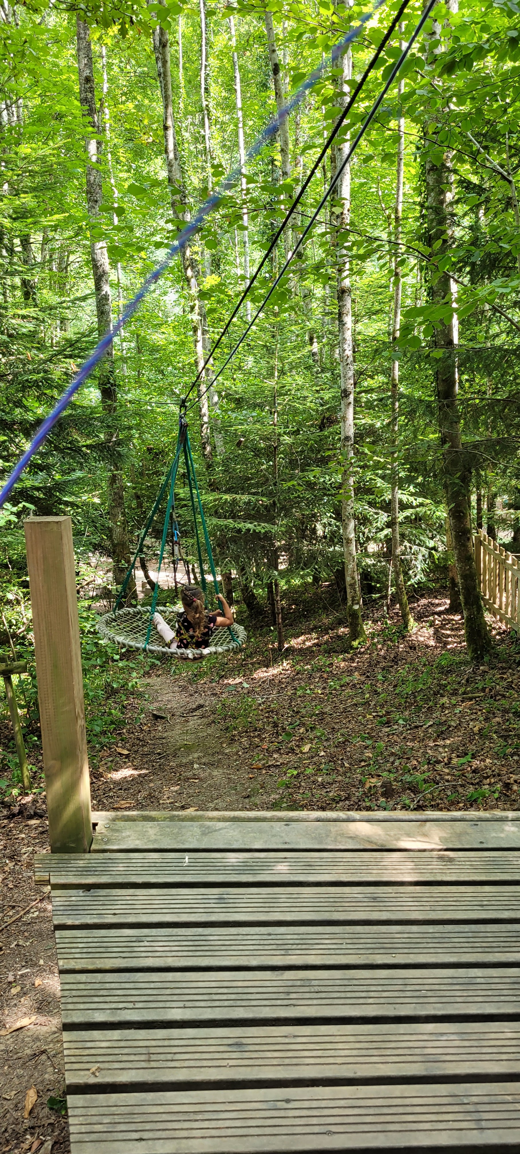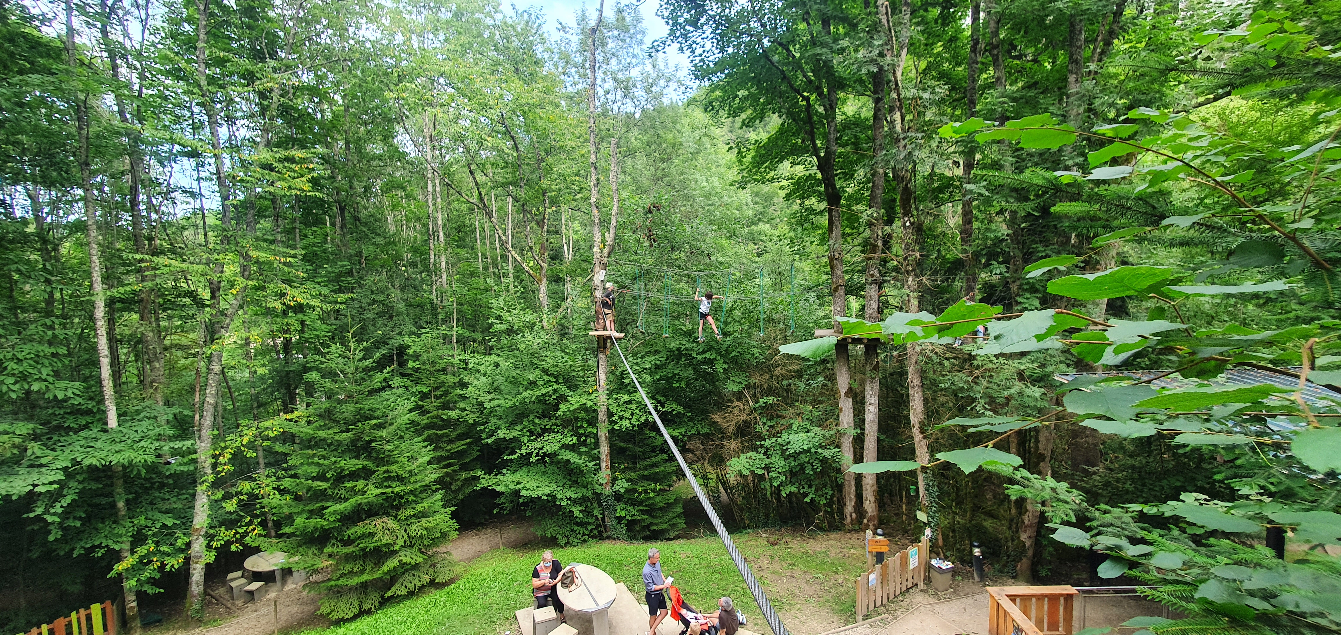Les parcours différents sont bien adaptés pour tous les âges. Lieu agréable dans la forêt au bord de la rivière. Équipe très sympathique et le bar restaurant tout autant.