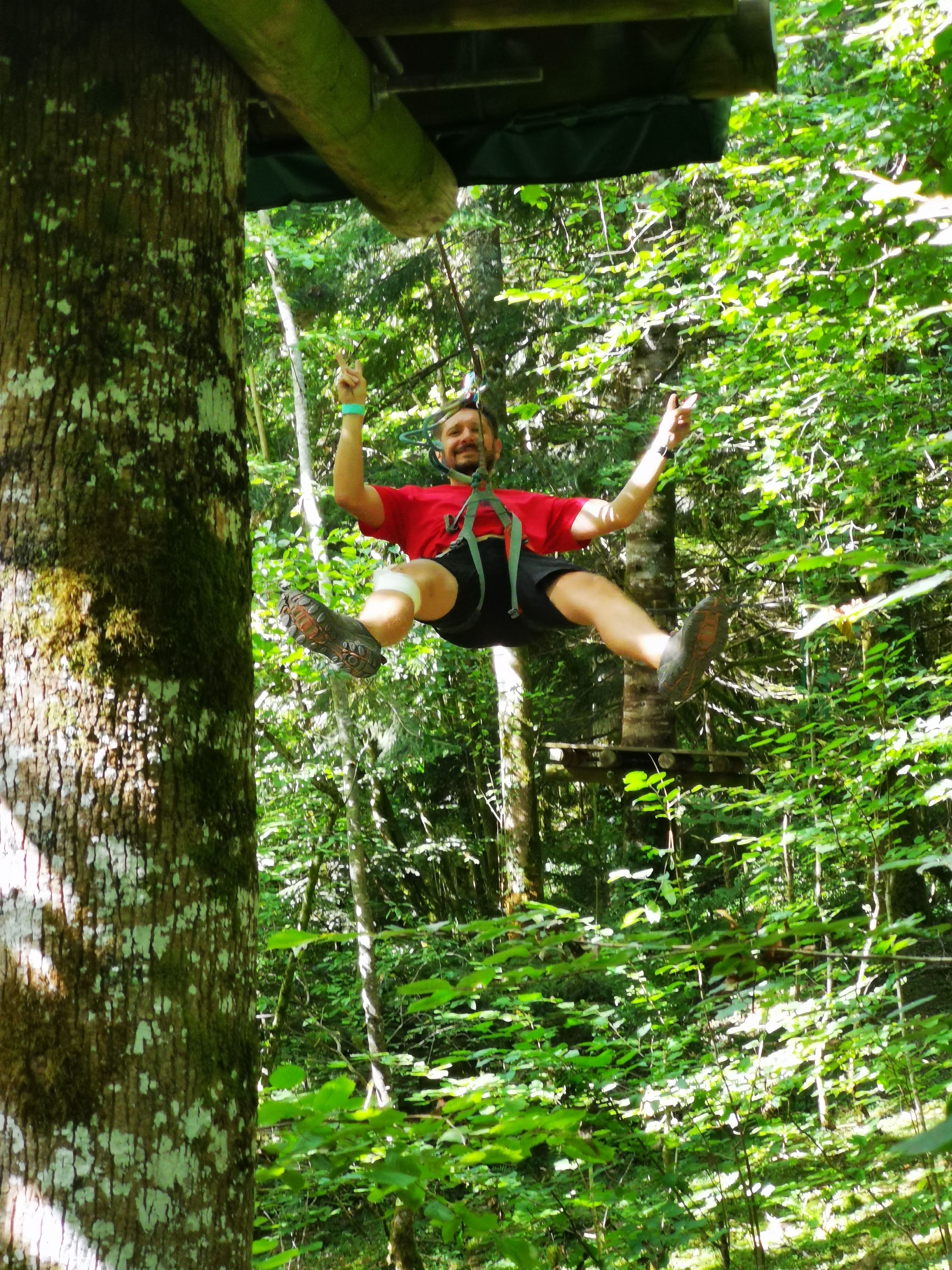 Un super après-midi dans les arbres. Supers parcours, pour tous niveaux.