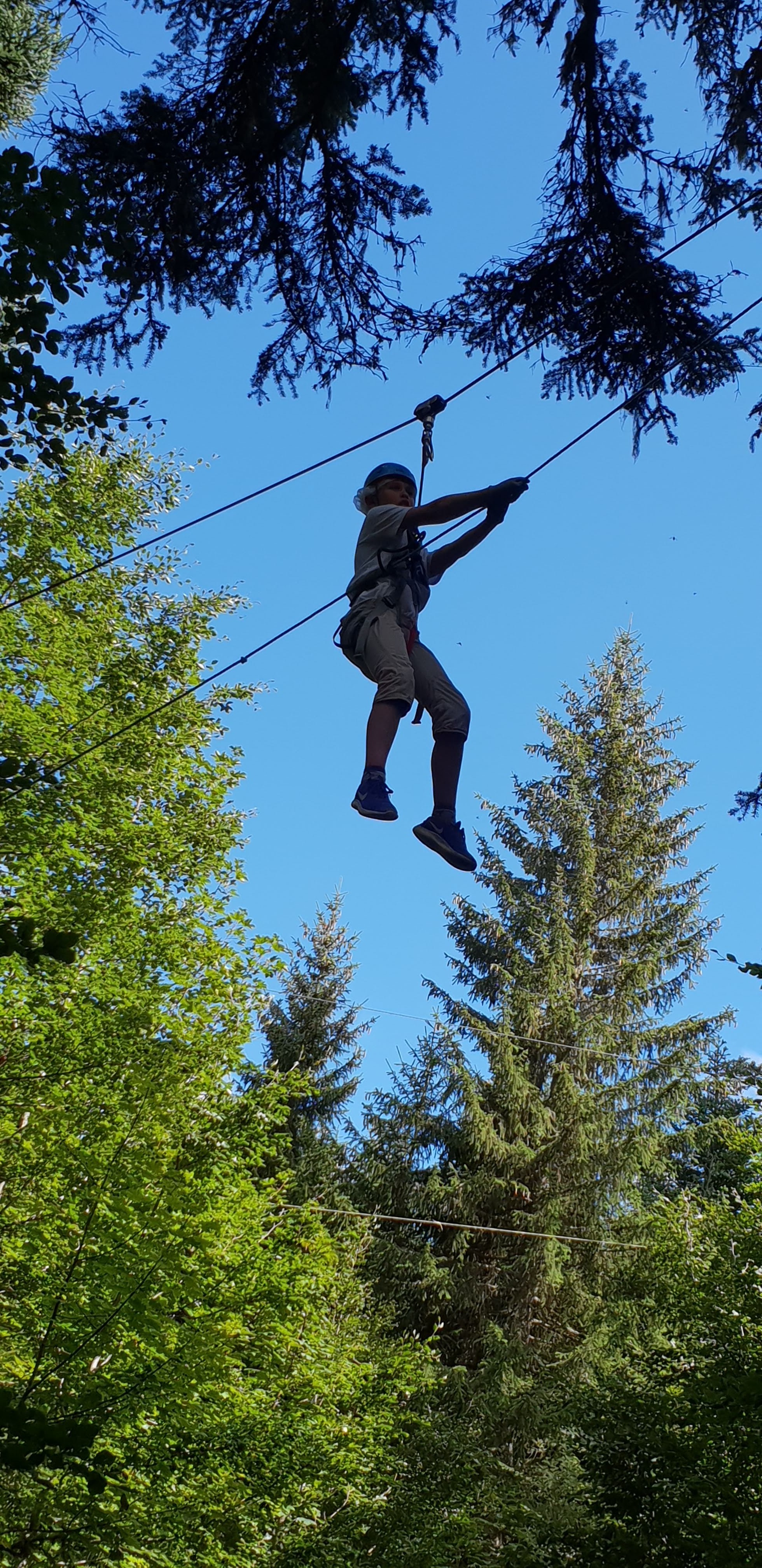 Nous avons passé un excellent après-midi en famille. Même la petite dernière de 8 ans a suivi malgré quelques petites frayeurs et la technicité de certains parcours. Elle a fait le grand parcours, sauf le noir. Le parcours panoramique est vraiment haut. Le système de sécurité est très pratique et évite d’avoir à manipuler les longes. Toute la famille recommande ce site.