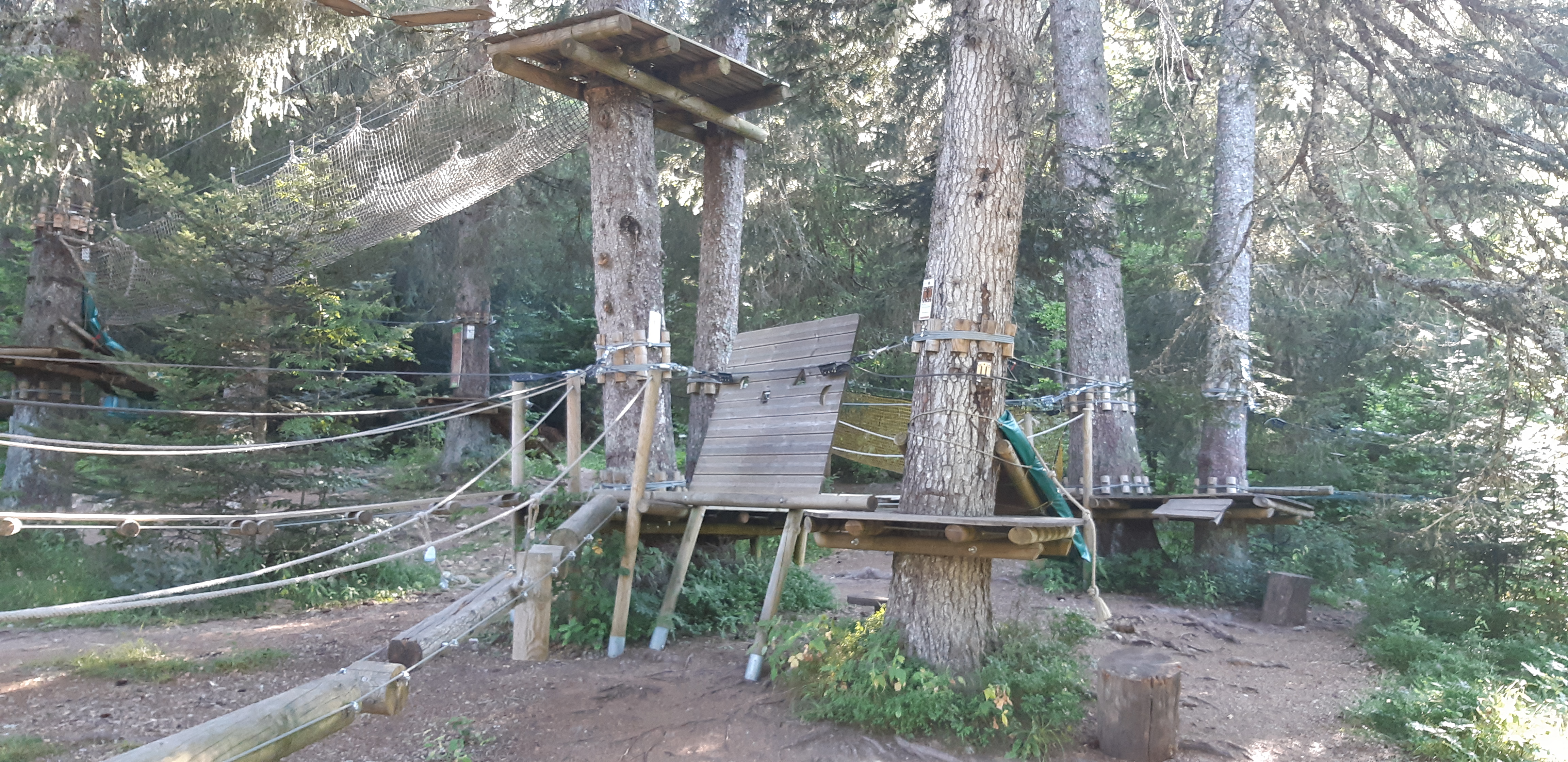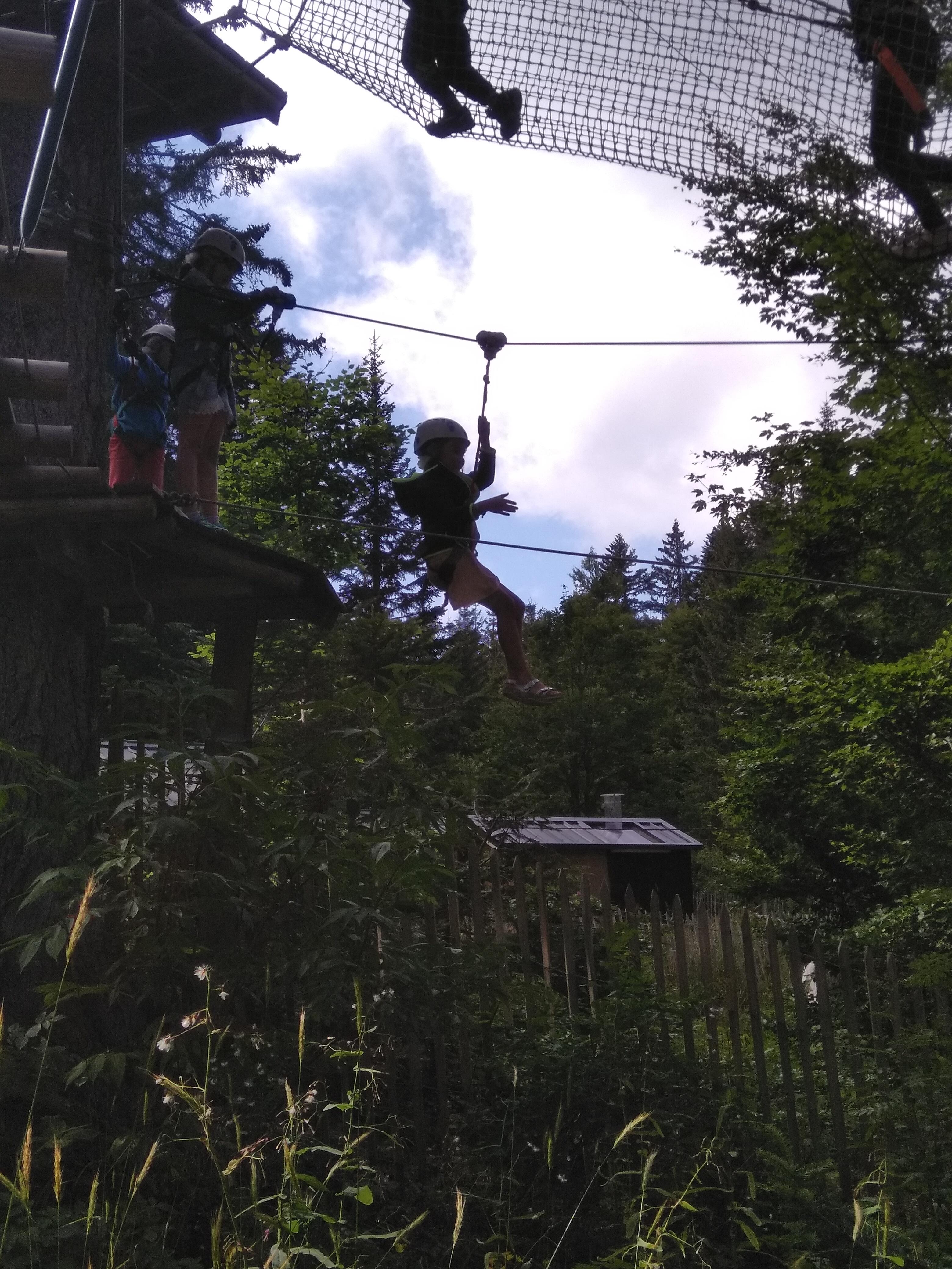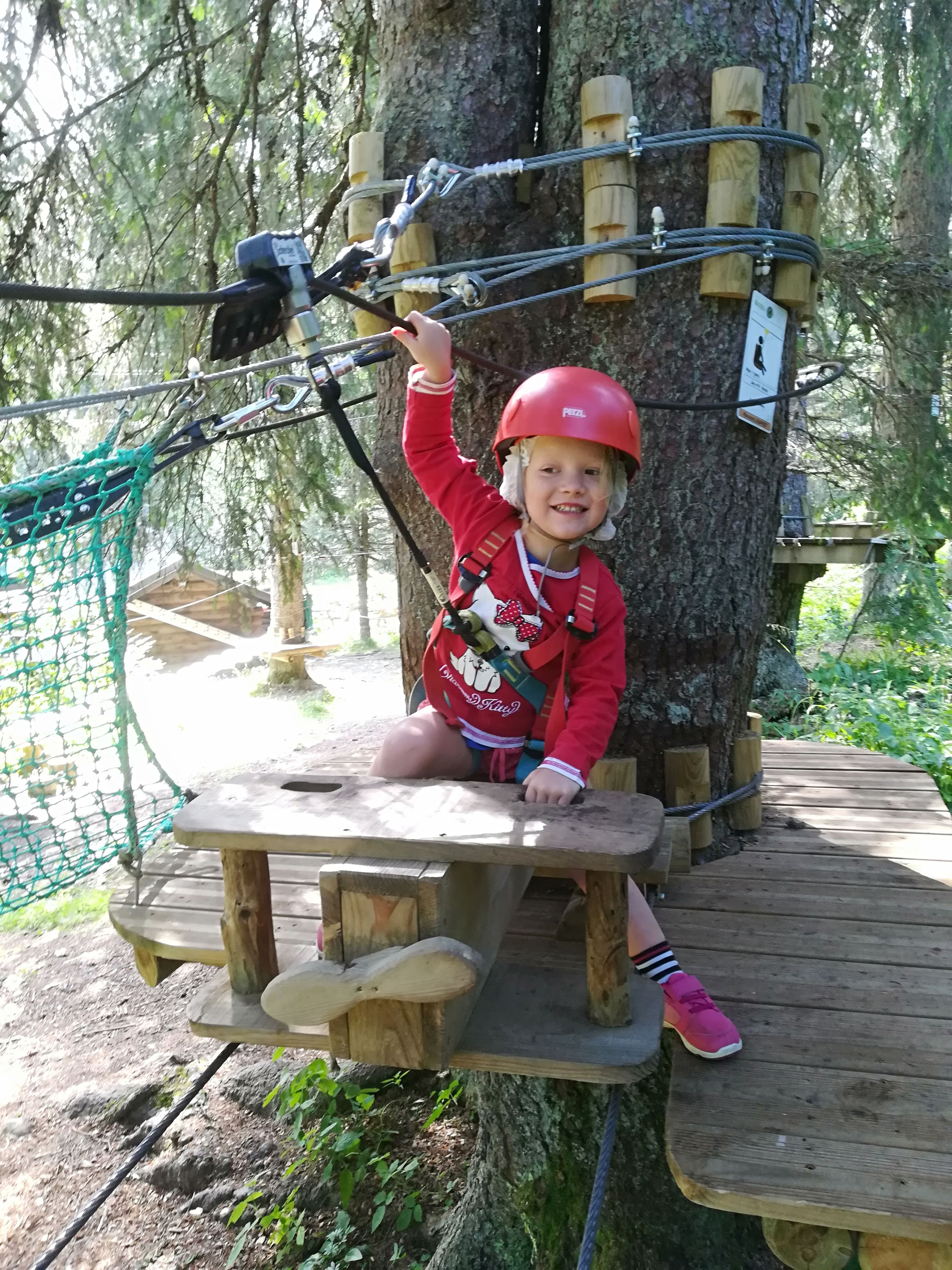 Excellent pour les petits. Ce parc est vraiment bien et divisé en deux parties : une à base de filets qui permet aux plus petits de s'amuser sans avoir les contraintes de l'accrobranche avec les mousquetons et les cordes et une deuxième partie réellement accrobranche pour les lus grands. Tout est bien entretenu et on ne voit pas le temps passer. Petit bonus par temps de canicule il y fait fait quasiment 10 degrés de moins que dans la vallée entre l'altitude et la forêt...même les parents apprécient. Je recommande vivement