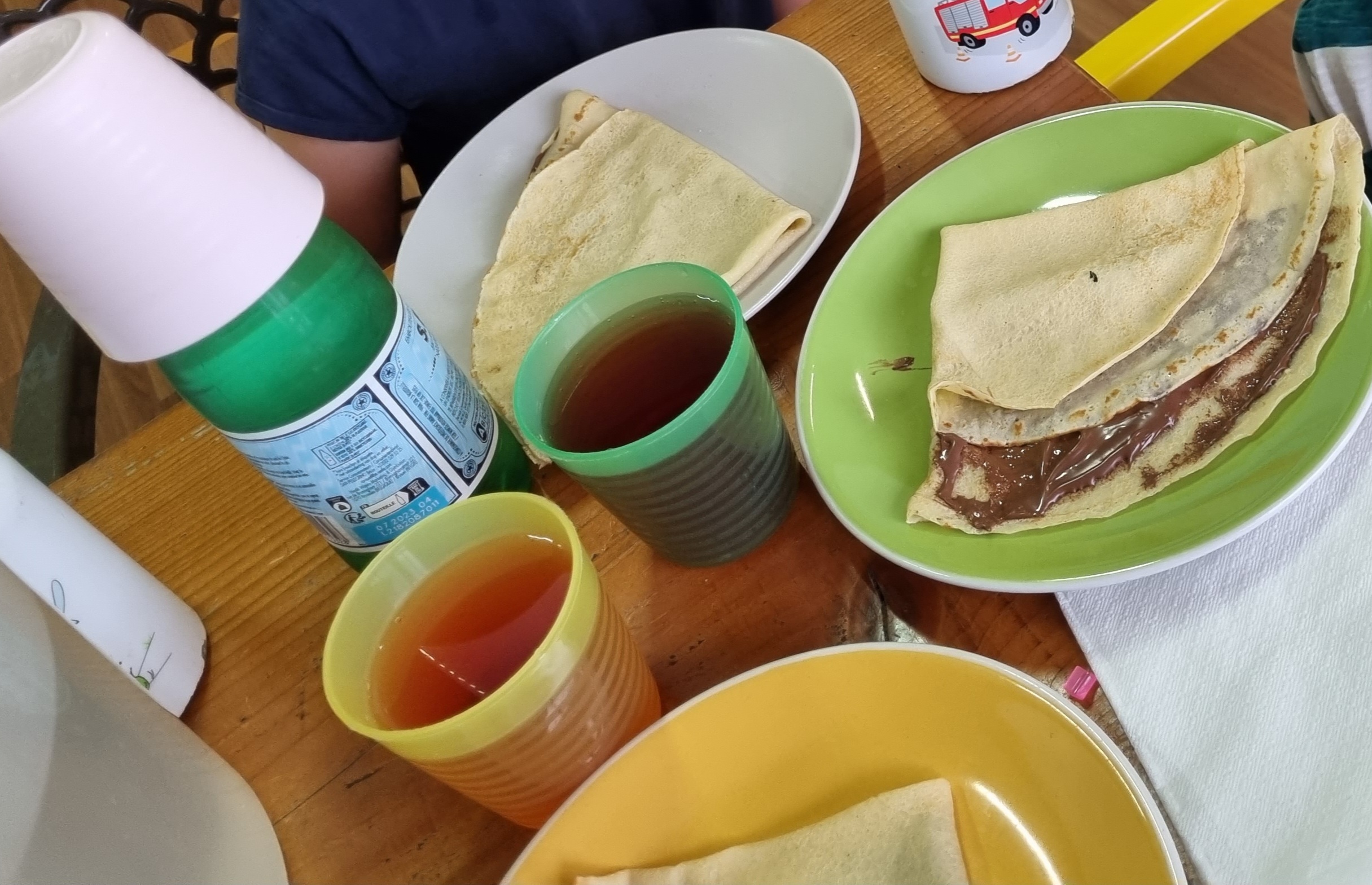 Merveilleux endroit pour passer la journée. Arrivée le matin. Pose repas de qualité avec du choix (steak ou hamburger ou nuggets avec frites ou grosse salade composée ou crêpe chaude) et en dessert crêpe ou compote ou beignet (pomme ou Nutella) ou gaufre (sucre, chantilly ou Nutella) quantité de Nutella bien dosée - Le tout est servi a table en 2 fois donc les desserts sont chauds et une boisson est comprise dans le repas. De plus, l accueil est sympathique, souriant. Un très bon moment passe. Payé 51 euros pour 4 adultes avec repas + 1 enfant de 3 ans avec repas + 1 bébé de moins d un an. On aurait juste aimé un yaourt a boire pour les enfants et peut être un peu plus de jeux pour les tout petits genre fauteuil a bascule avec siege. Mais nous avons deja prévu de revenir le mois prochain.