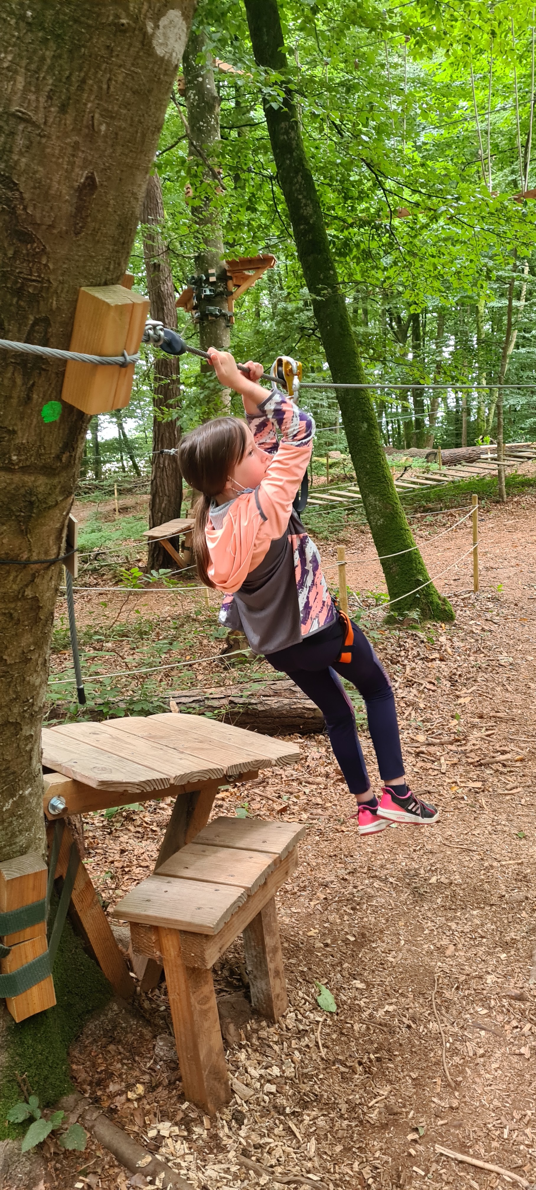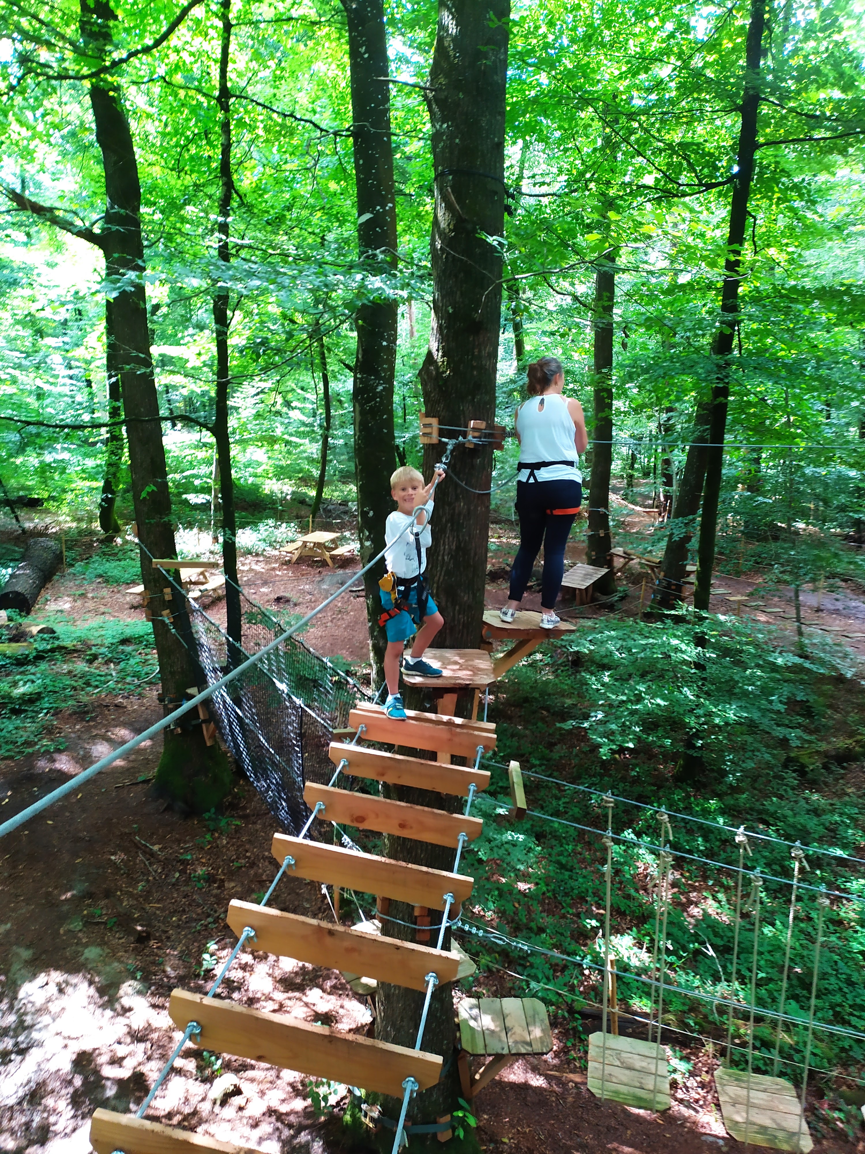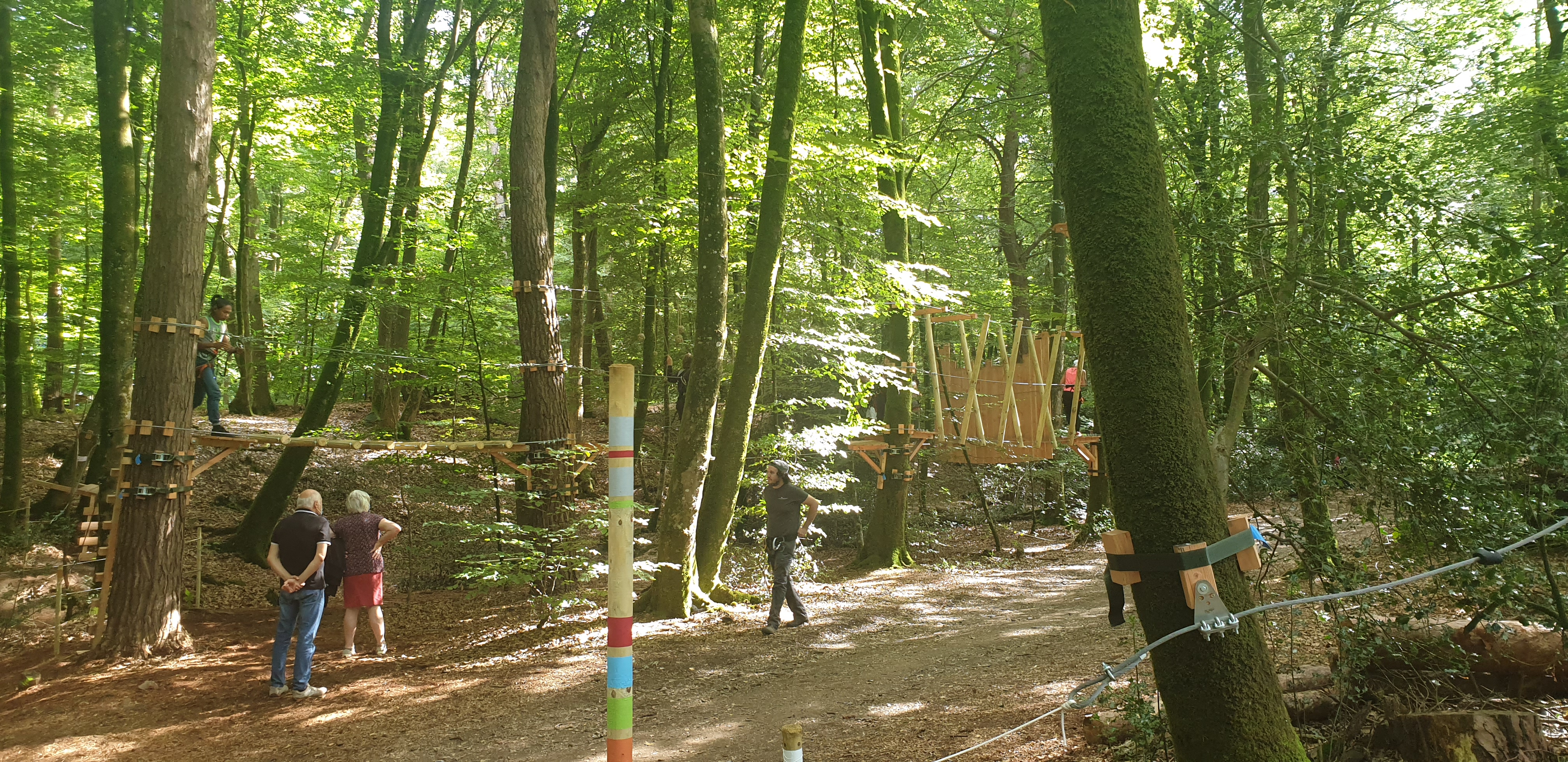 Superbe installation dans la forêt qui borde le canal. De beaux parcours pour tous les âges et niveaux. En bonus de belles tyroliennes. L'équipe est très sympathique, on a passé une bonne après midi avec les garçons..