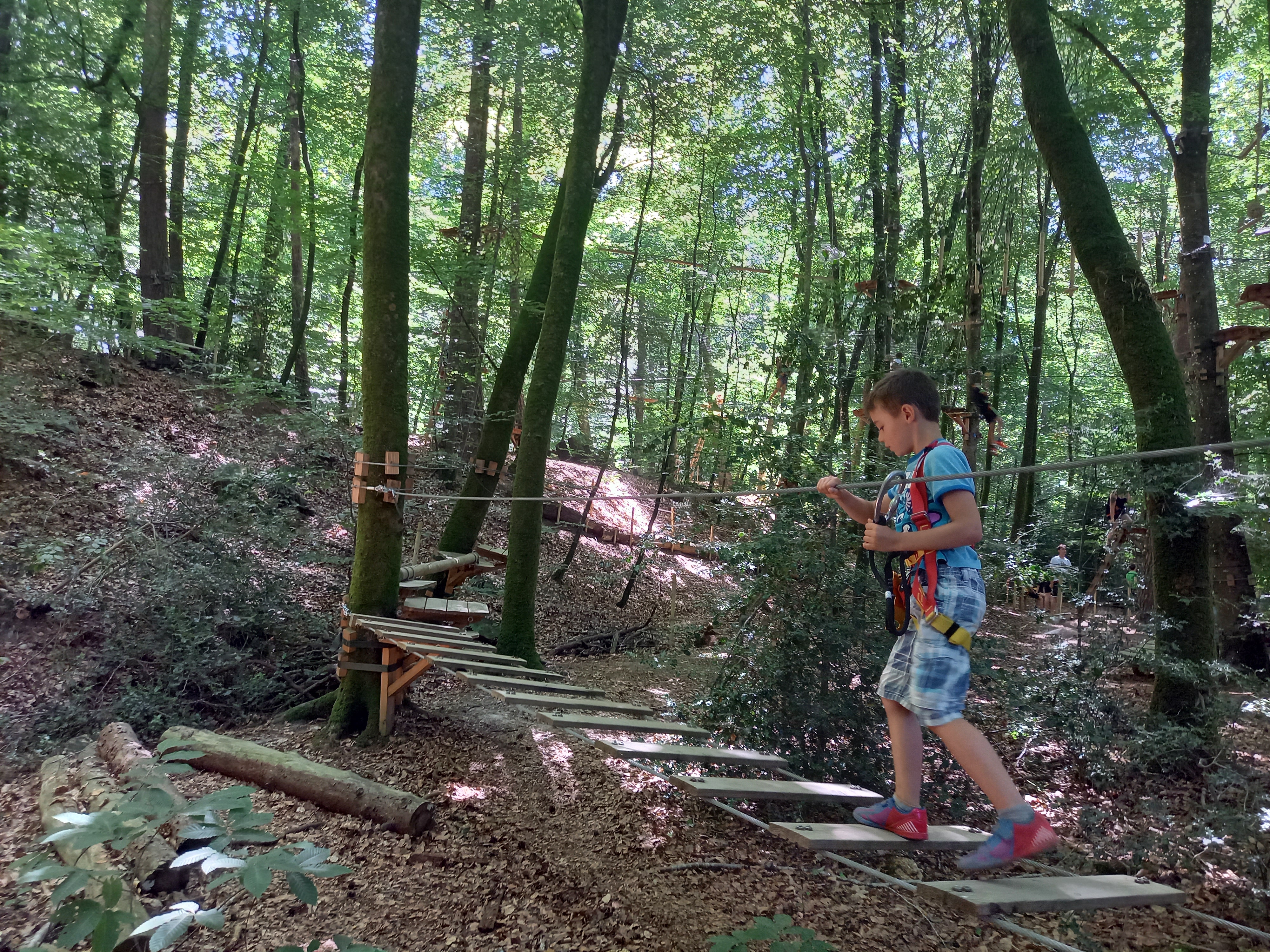 Nous y avons passez une bonne après-midi. Des parcours variés et très physiques. En 2h30, avec mon fils, nous avons fait les parcours orange, verts et bleus en terminant par le parcours comprenant 7 tyroliennes successives. Nous y retournerons c'est certain. Bravo à équipe pour ce lieu et leur sympathie.