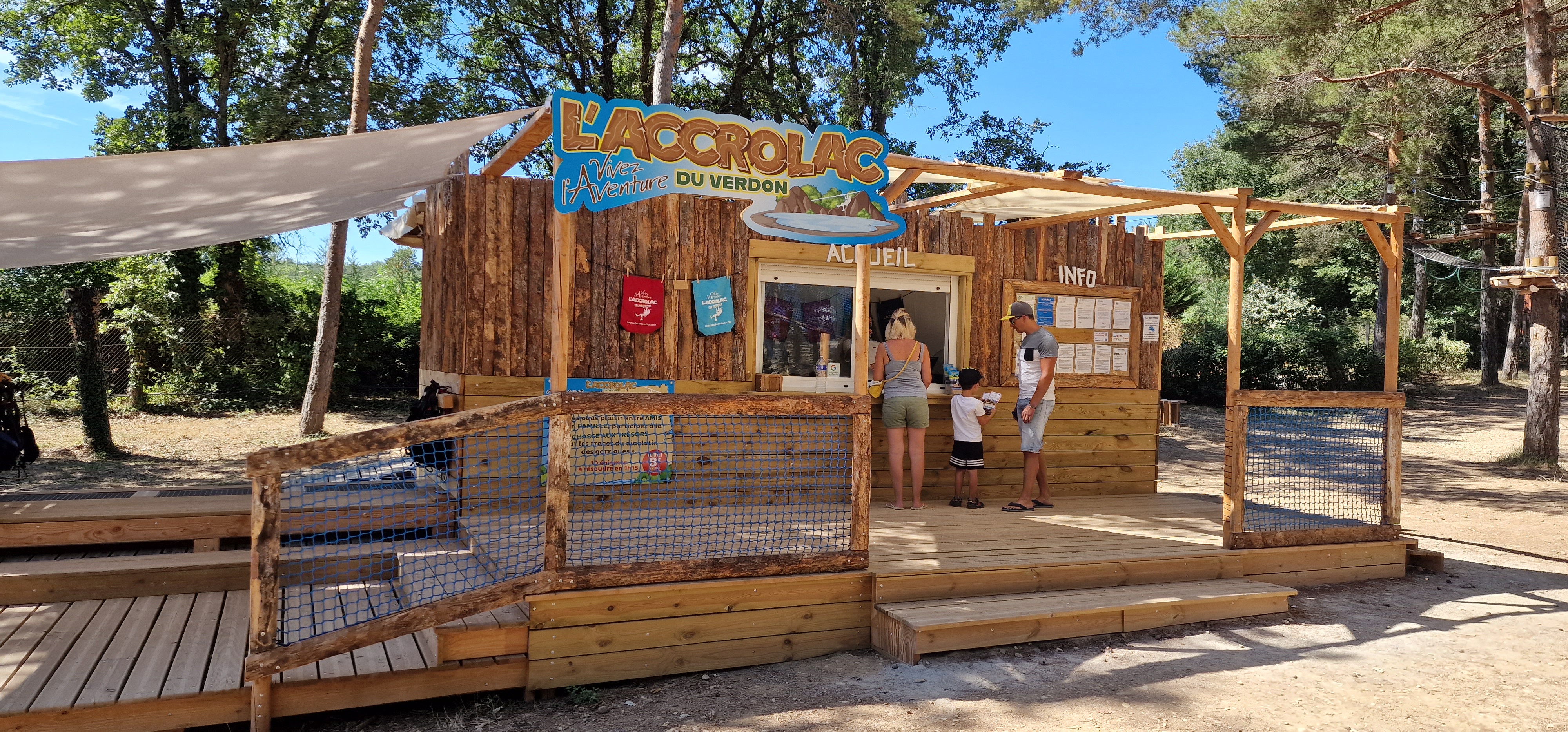 Un lieu plein de potentiel parce qu'il y a un lac magnifique à 5mn mais malheureusement aucune vue sur celui-ci, la seule vue que l'on peut avoir est celle sur la piscine et le minigolf du camping donc les beaux paysages du Verdon il faut oublier. Les parcours quand à eux manquent de difficultés pour les personnes qui ont déjà fait de l'accrobranche mais peut correspondre aux personnes qui souhaitent découvrir.