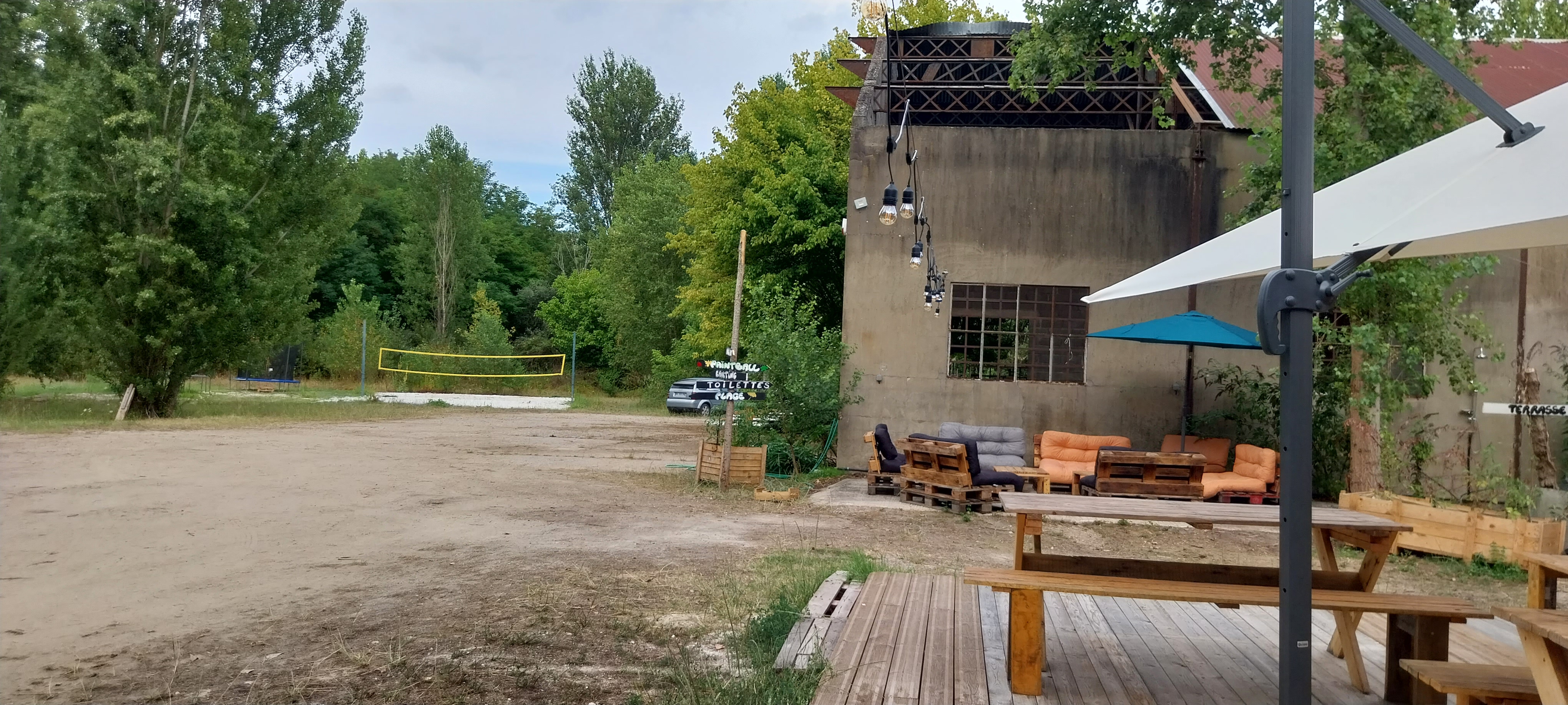 Super endroit en pleine nature. Nous sommes venus fêter l'anniversaire de mon fils et nous avons été très bien accueillis. Les enfants se sont très bien amusés avec trampoline, karts, beach volley, foot, basket...et les parents se sont relaxés dans les salons en palettes et les hamacs pour une sieste à l'ombre. Il y a même une plage. Les tarifs sont très corrects. Venez découvrir cet espacedde détente et de jeux. C'est top!