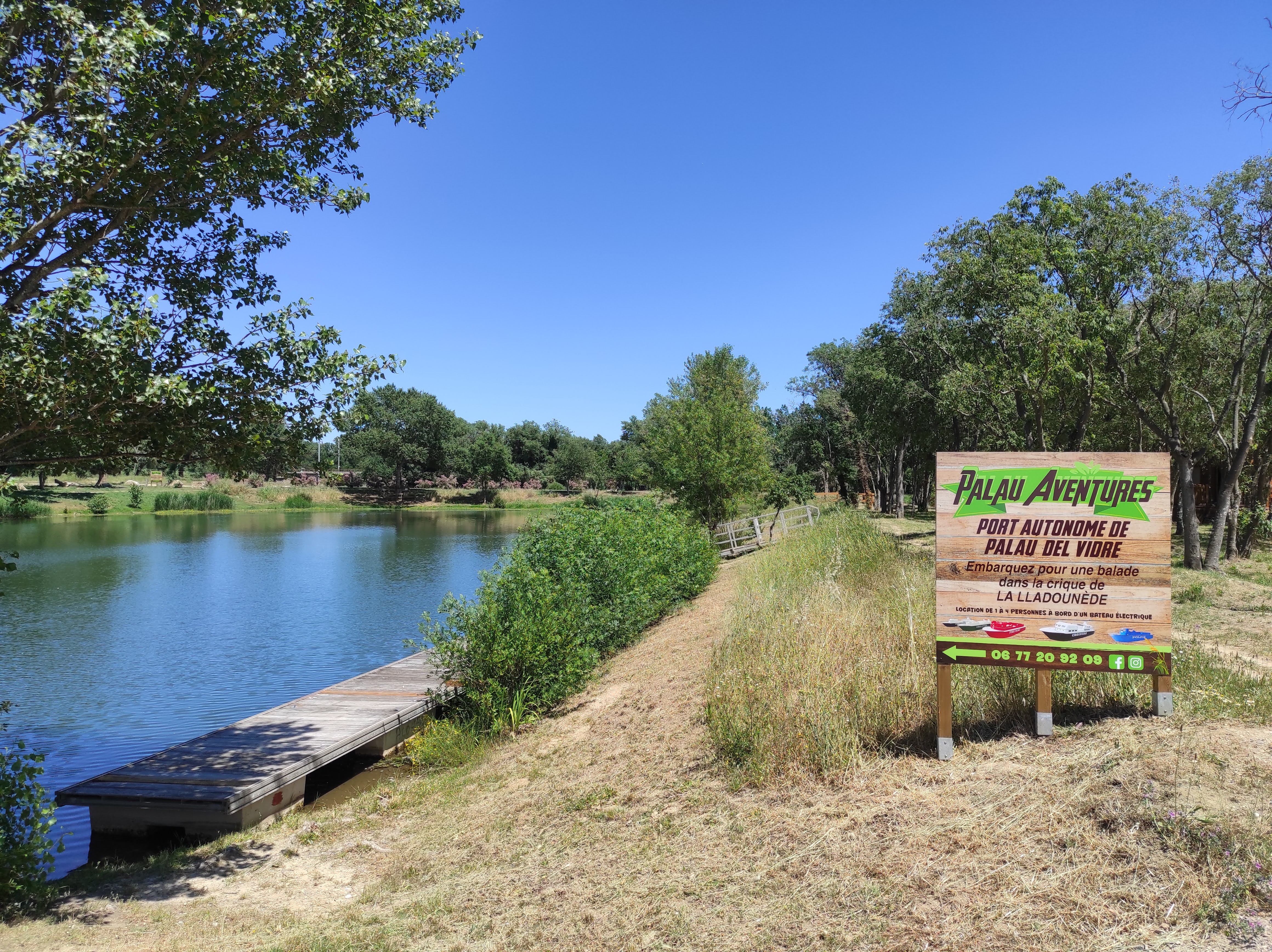 Accrobranche neuf dans un très joli cadre avec le lac, plusieurs parcours en fonction de l’âge, le parcours Jaune réservé aux plus petits dès 3 ans est bien à l’ombre et on peut les suivre pour les aider à passer les mousquetons. Mention spéciale pour le petit vélo de bois de fin de parcours jaune que mes enfants ont adoré ainsi que le parcours Orange tyrolienne pour les plus de 4 ans. Les autres parcours sont dispersés autour du lac avec de belles tyroliennes au dessus du lac. Personnel très sympathique. Bonus : deux balançoires et une mini tyrolienne pour les plus petits. Pas fait cette fois mais vous pouvez louer un petit bateau à moteur pour vous balader sur le lac. Un mauvais point cependant pour la mairie qui indique un accès véhicule interdit au parking du lac dès 18h alors que le parc aventure ferme à 19h. Dans les faits la barrière n’était pas mise après 18h ce qui nous paraît normal, il faut a minima que les horaires de fermeture pour les véhicules soient adaptés à celui de l’accrobranche et 18h l’été c est trop tôt si Palau veut développer son attraction touristique autour de la zone du lac qui est désormais très bien aménagée.
