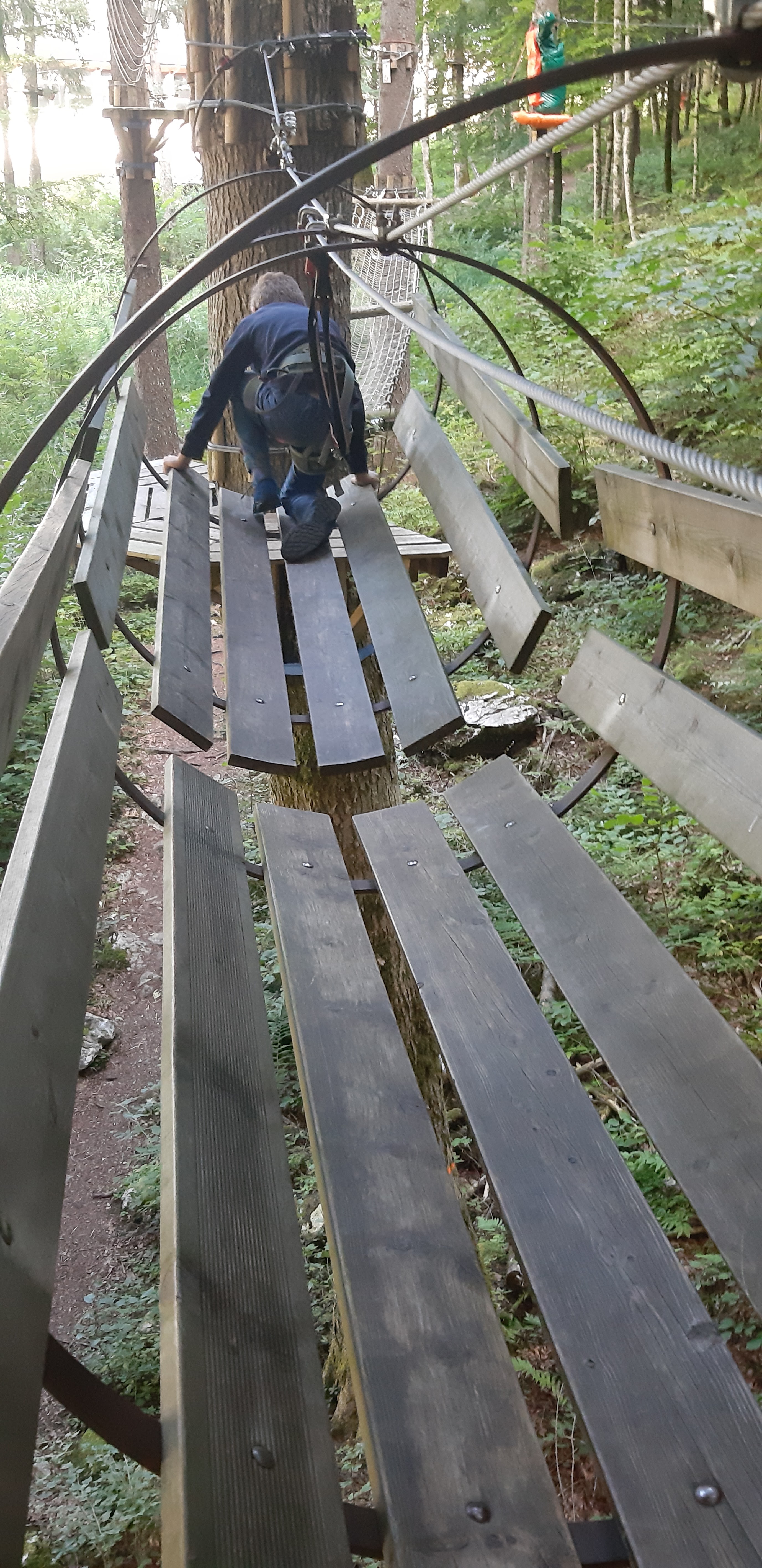 Bons parcours d'accrobranche, réalisés en adulte il y en a 4, de difficulté croissante. Beaucoup de tyroliennes pour ceux qui aiment !