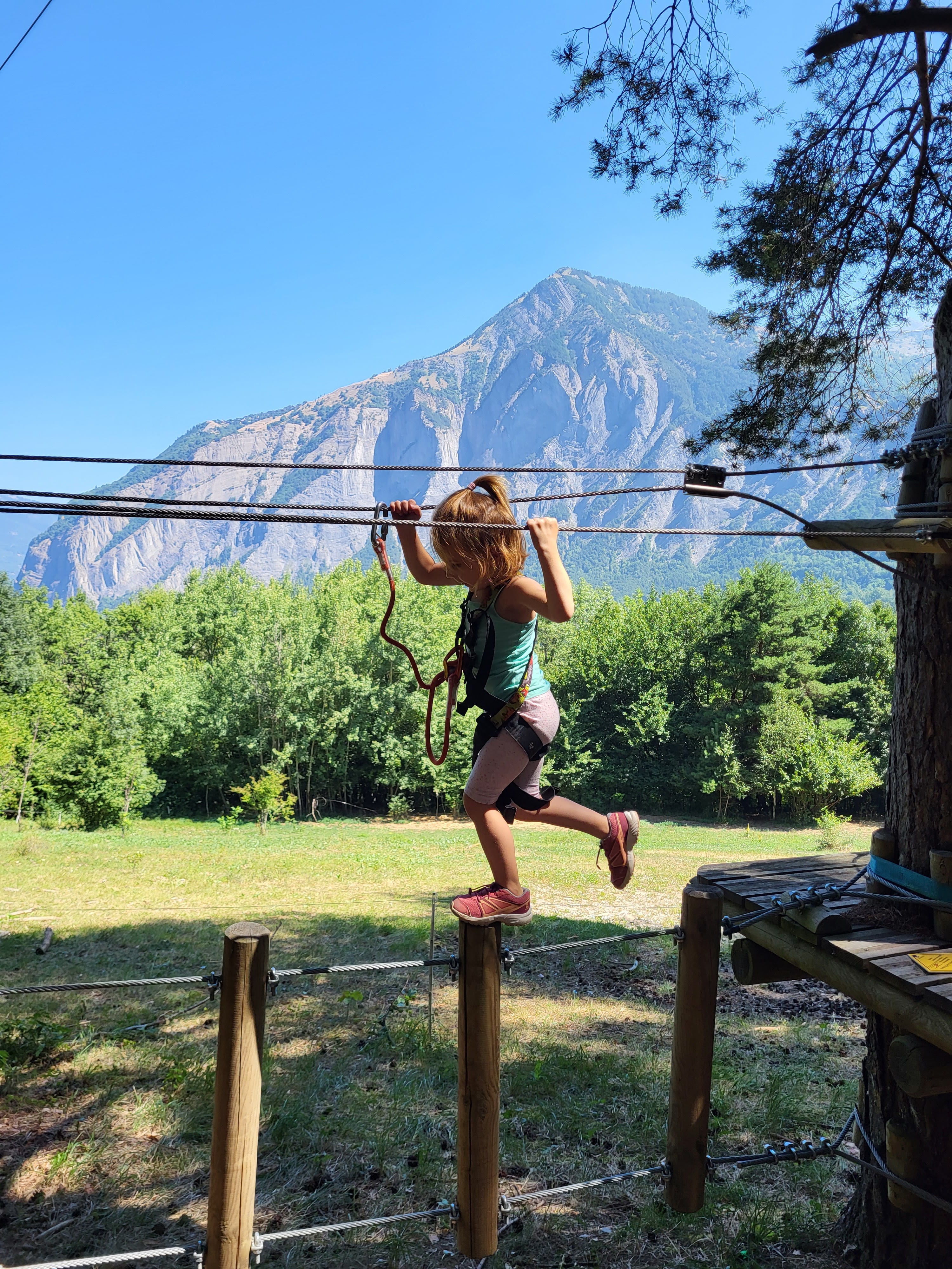 Super parc accrobranches et tyroliennes à Bourg d'Oisans, au pied de l'Alpe d'Huez. Il y a 8 parcours de différents niveaux, jaunes et verts pour les enfants de moins d'1m30; puis bleus, rouges et gris (tyros). Il est préférable qu'un adulte accompagne les enfants car le personnel est peu nombreux.