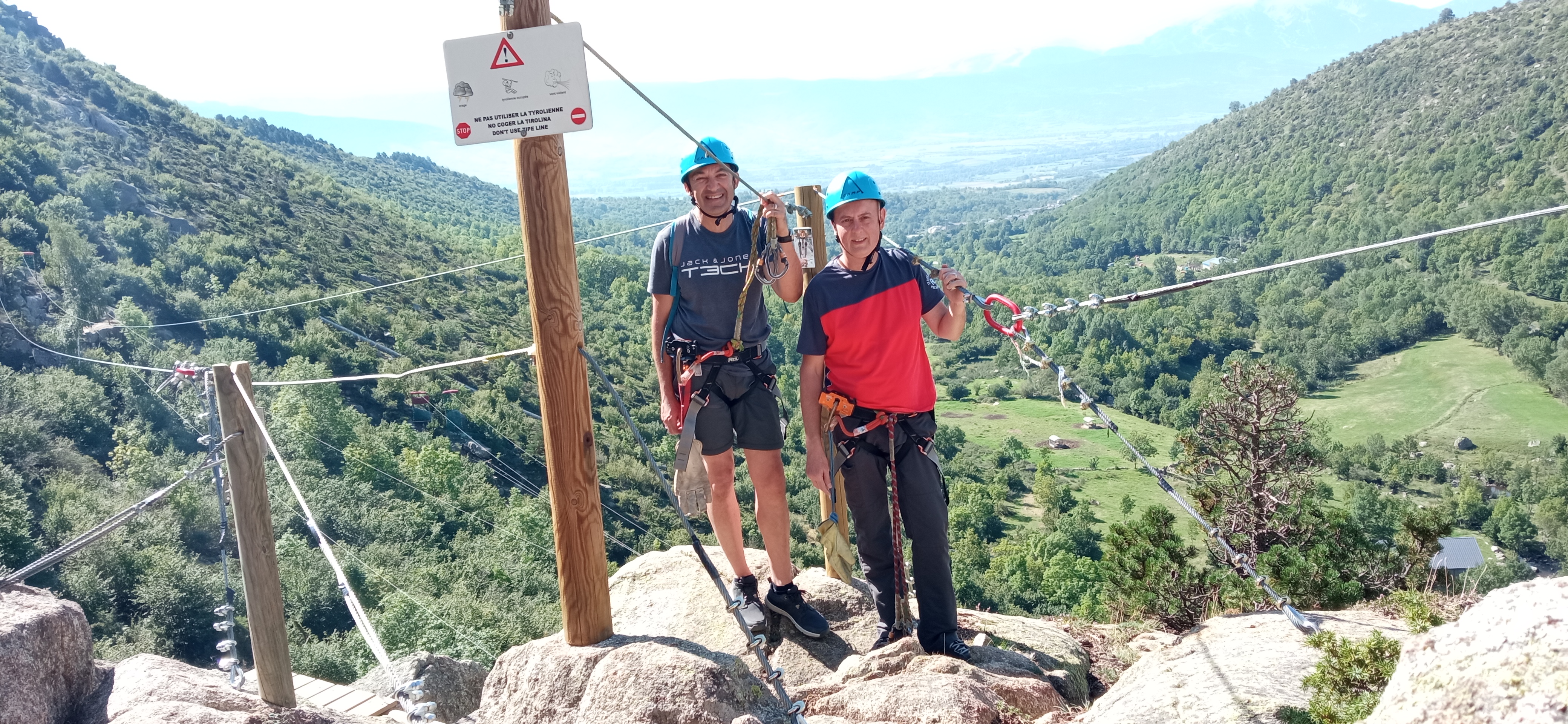 Belle expérience! Nous y sommes allés en adulte avec 2 enfants (12 et 8 ans). Le premier parcours est une ascension de type via ferrata avec différents niveaux (du vert au noir, il y en a aussi un jaune pour les plus petits, mais il ne monte pas jusqu'à le circuit des tyroliennes). Les âges conseillés sont adaptés, il y a des zones assez exposées et les enfants doivent avoir une certaine dextérité physique.. Les vues sur la vallée d'Angoustrine sont spectaculaires.. Nous avons fait le bleu (qui dans un tronçon, a une variante bleu+).. Le meilleur le truc, c'est la flexibilité du circuit. Vous pouvez descendre à différents endroits du circuit, et à la fin faire un tronçon rouge ou noir, si vous le souhaitez). Arrivé au sommet, vous descendez jusqu'au point de départ avec 5 tyroliennes entre 100 et 150m. , bien équipé et sécuritaire . Le prix n'est pas particulièrement bon marché mais si vous considérez que vous disposez de 3 heures et que vous pouvez répéter si vous allez vite et que vous voulez faire un nouveau circuit, ce n'est pas mal. Recommandé!