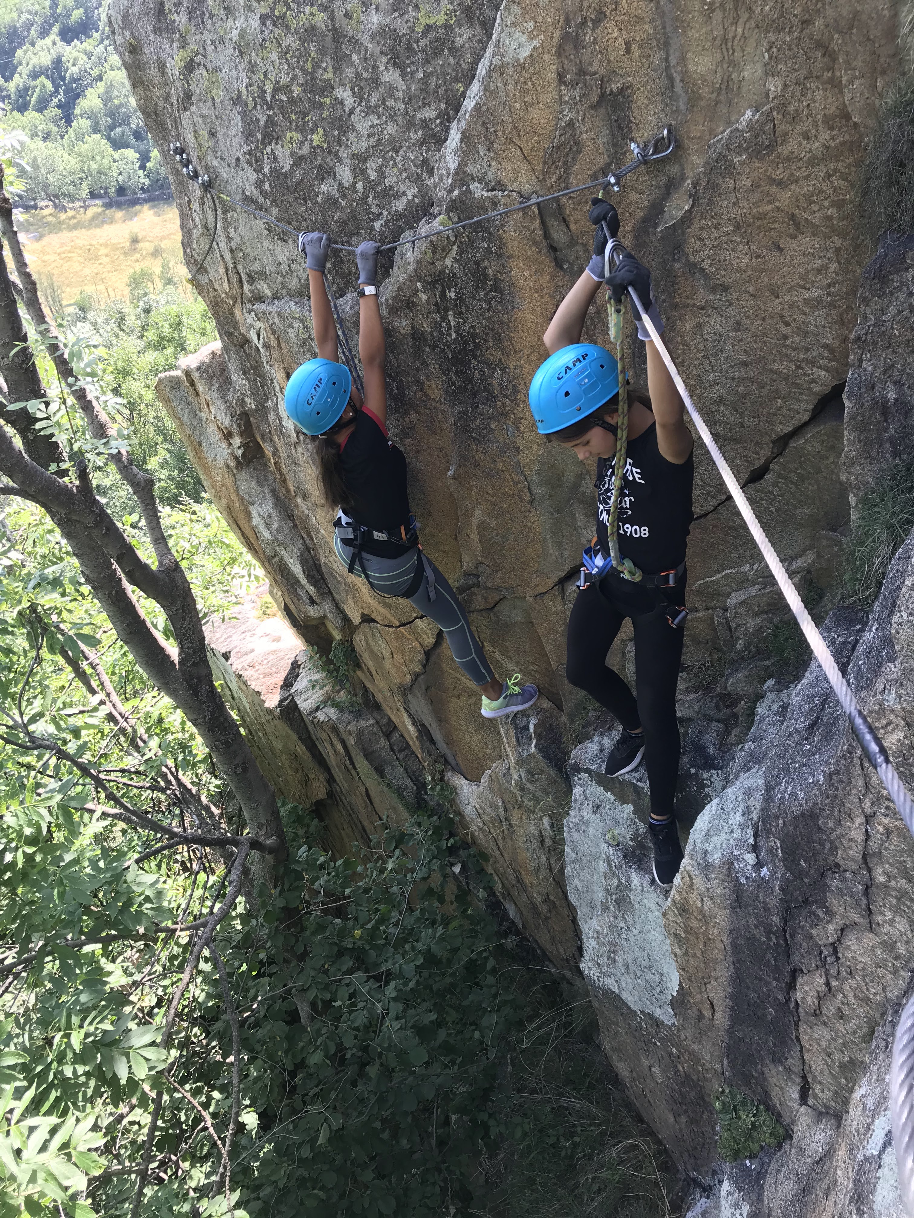 Superbe site et super accueil. C'est une activité qui combine accrobranche, via ferrata et tyroliennes (il y en a 5). Il y a plusieurs parcours pour tous les niveaux. Nous avons passé en famille un super moment, l'équipe est très attentive, et s'occupe de vous tout au long du parcours. Nous recommandons sans hésitation. Nous avons effectué avec des ados les parcours rouge et noir, pour une durée de 3 heures. Ce dernier est assez difficile, plus axé escalade, ne pas hésiter à demander des conseils... Penser à prendre de l'eau, et à se protéger du soleil. Mention spéciale à Axel que <> et à <> pour ses conseils et qui a su convaincre ma femme pour les tyroliennes...