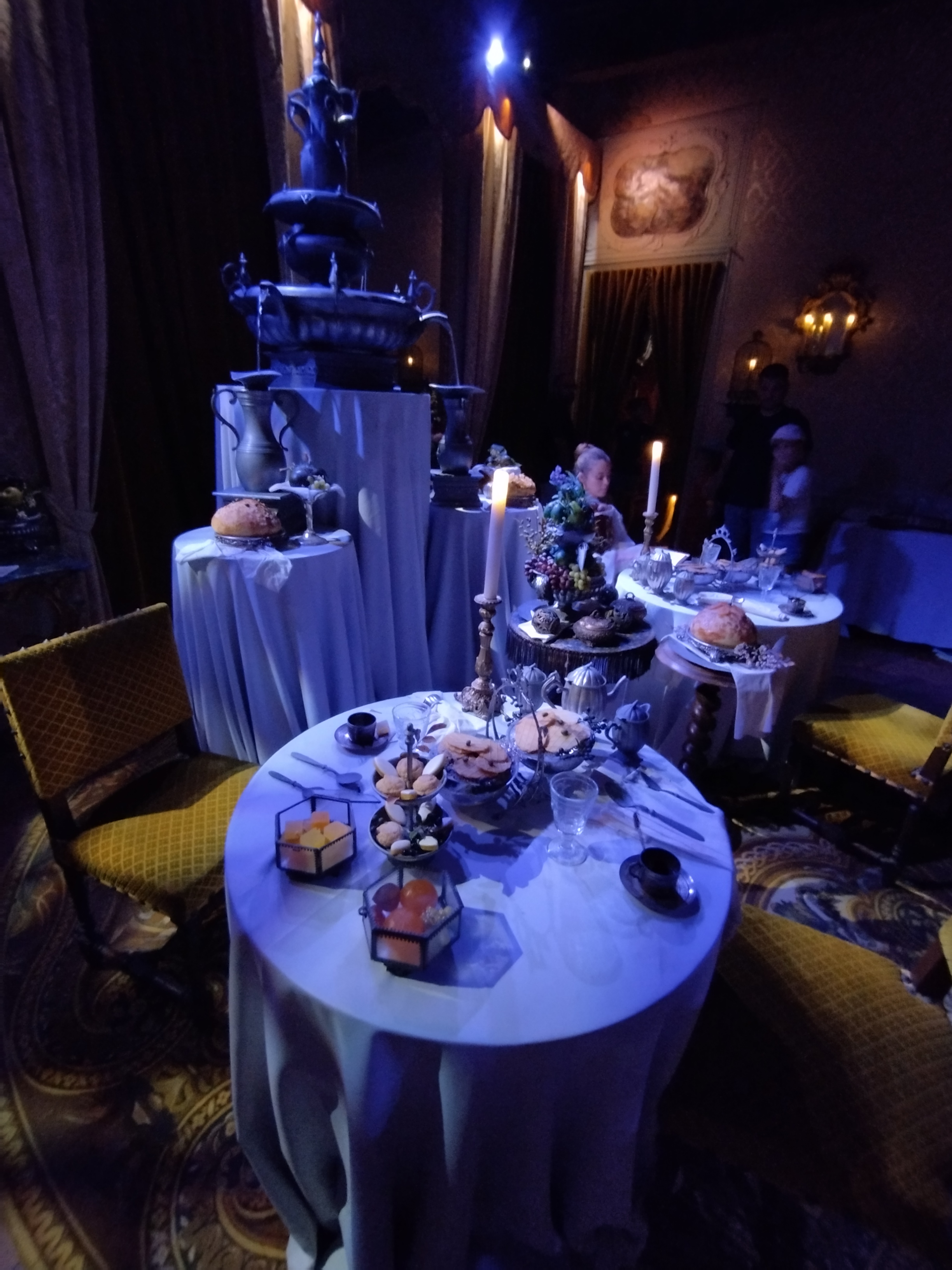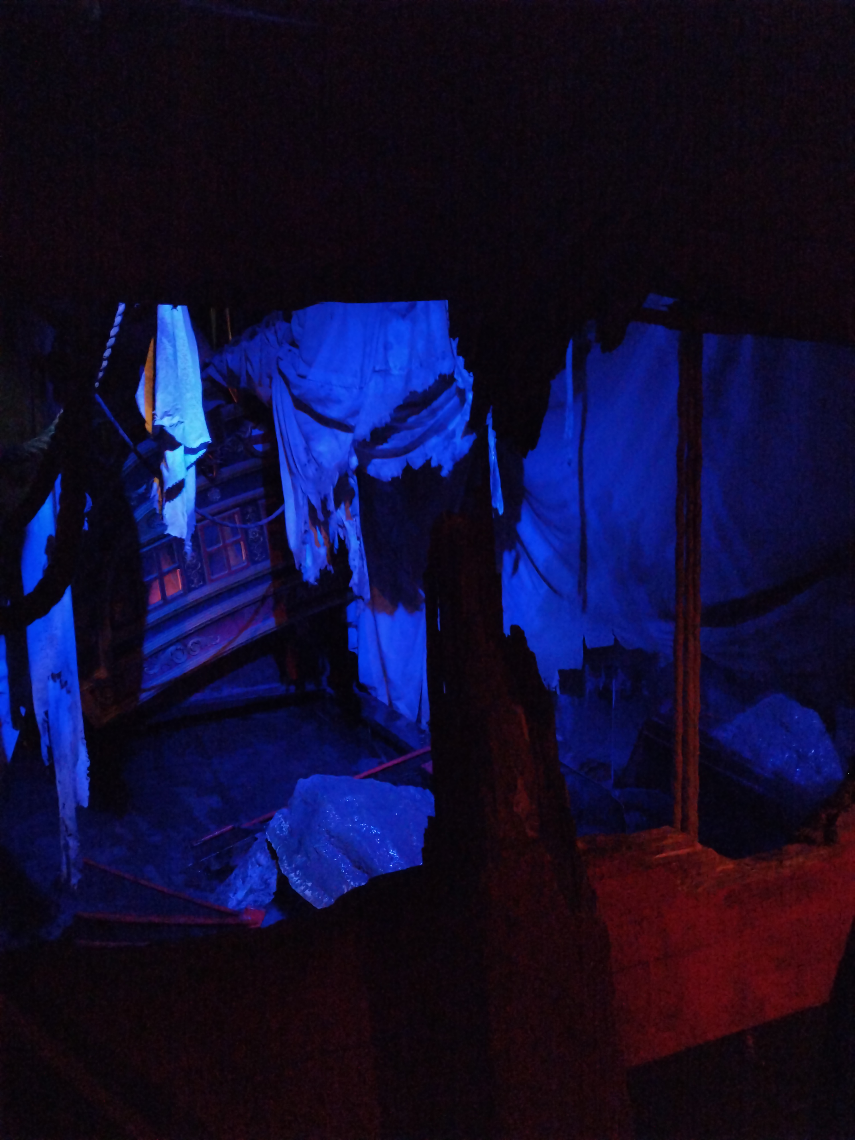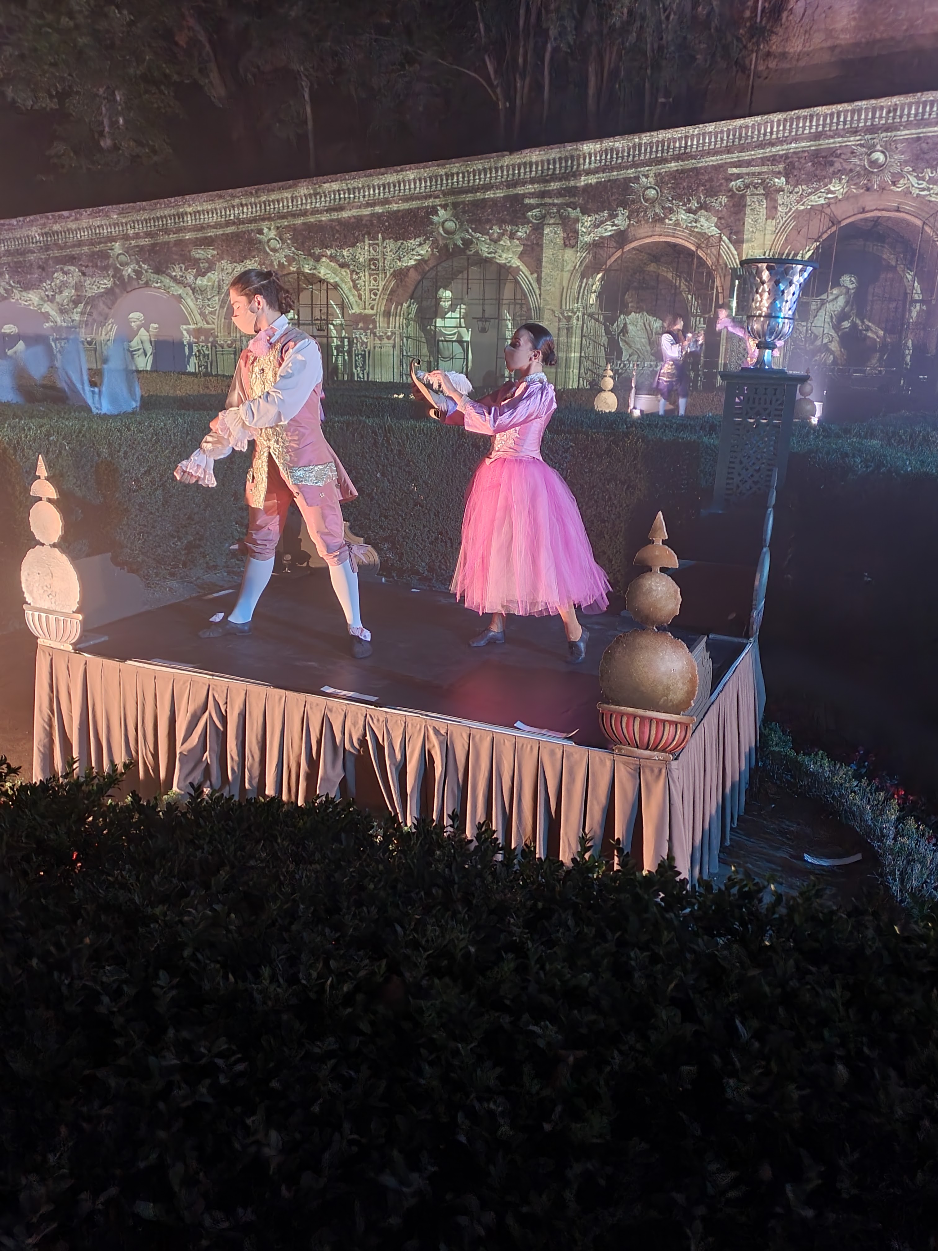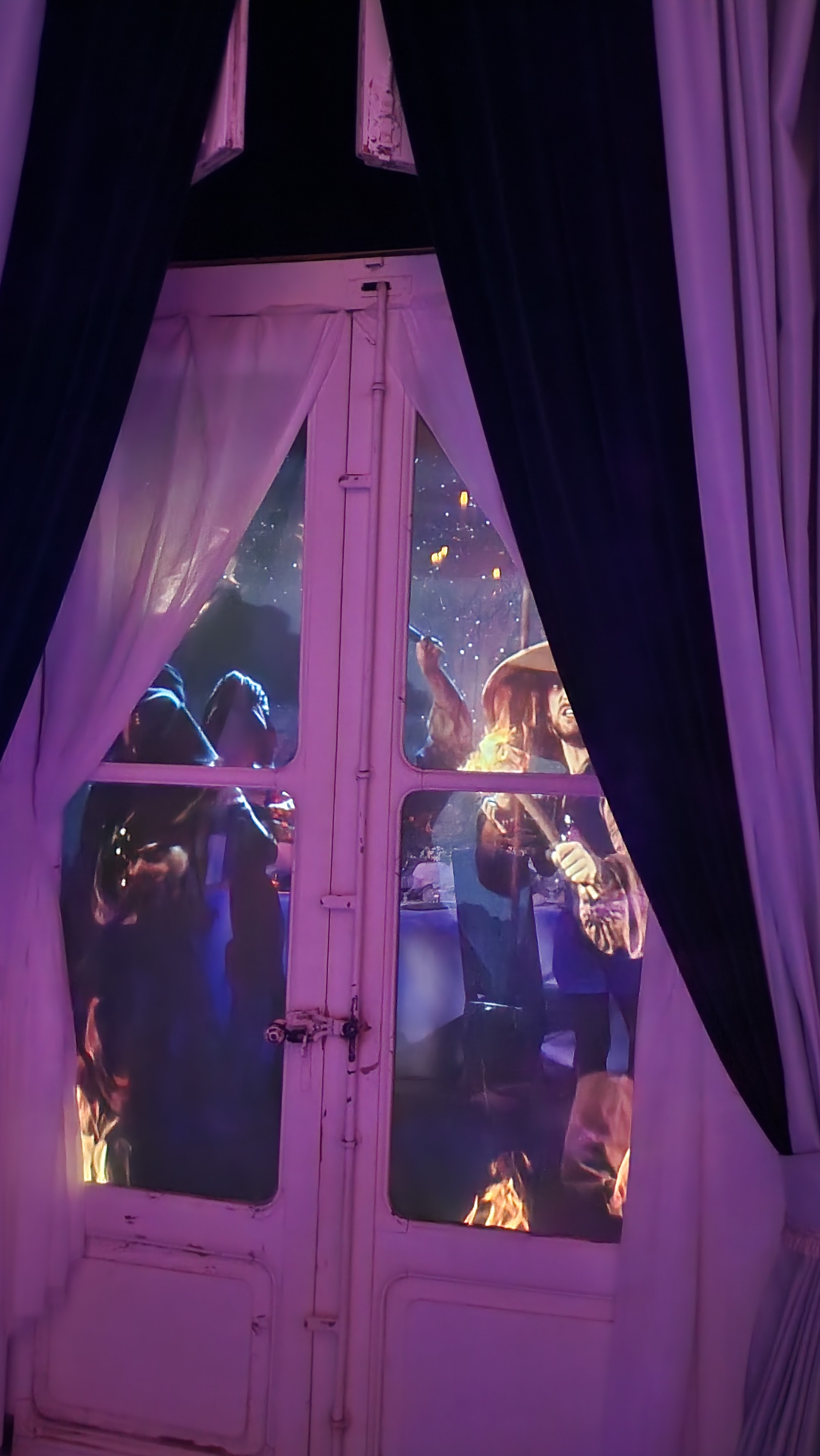 Spectacle magnifique en extérieur à la nuit tombée. la visite du château dans la journée est sublime, avec tout ces décors animés, ça bouge de partout et des personnages en costumes vous croises dans les couloirs. On se croirais dans les pirates des caraïbes à euro disney.