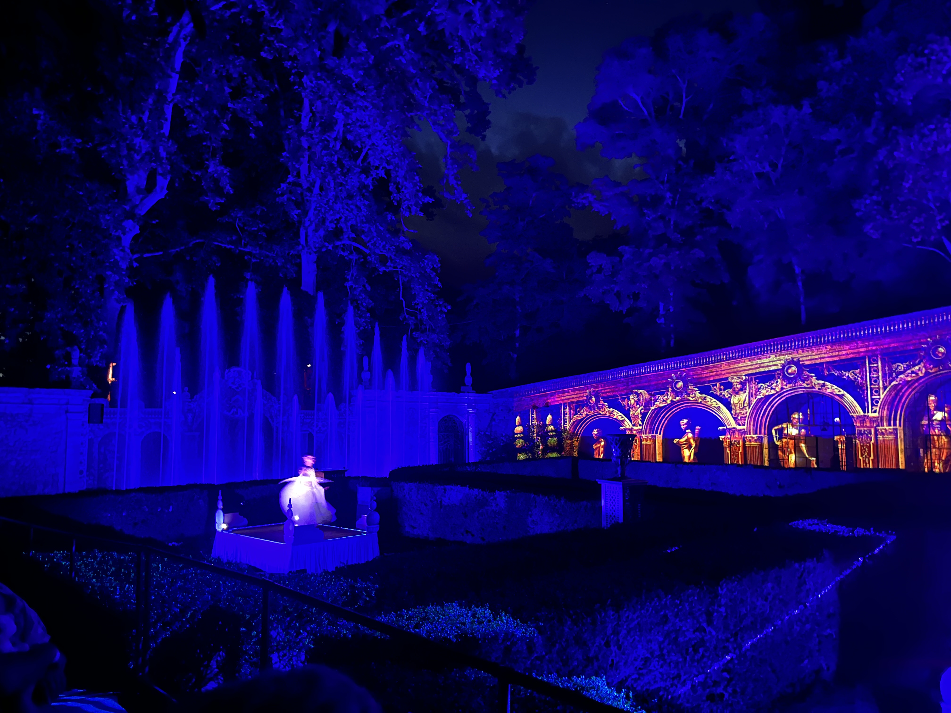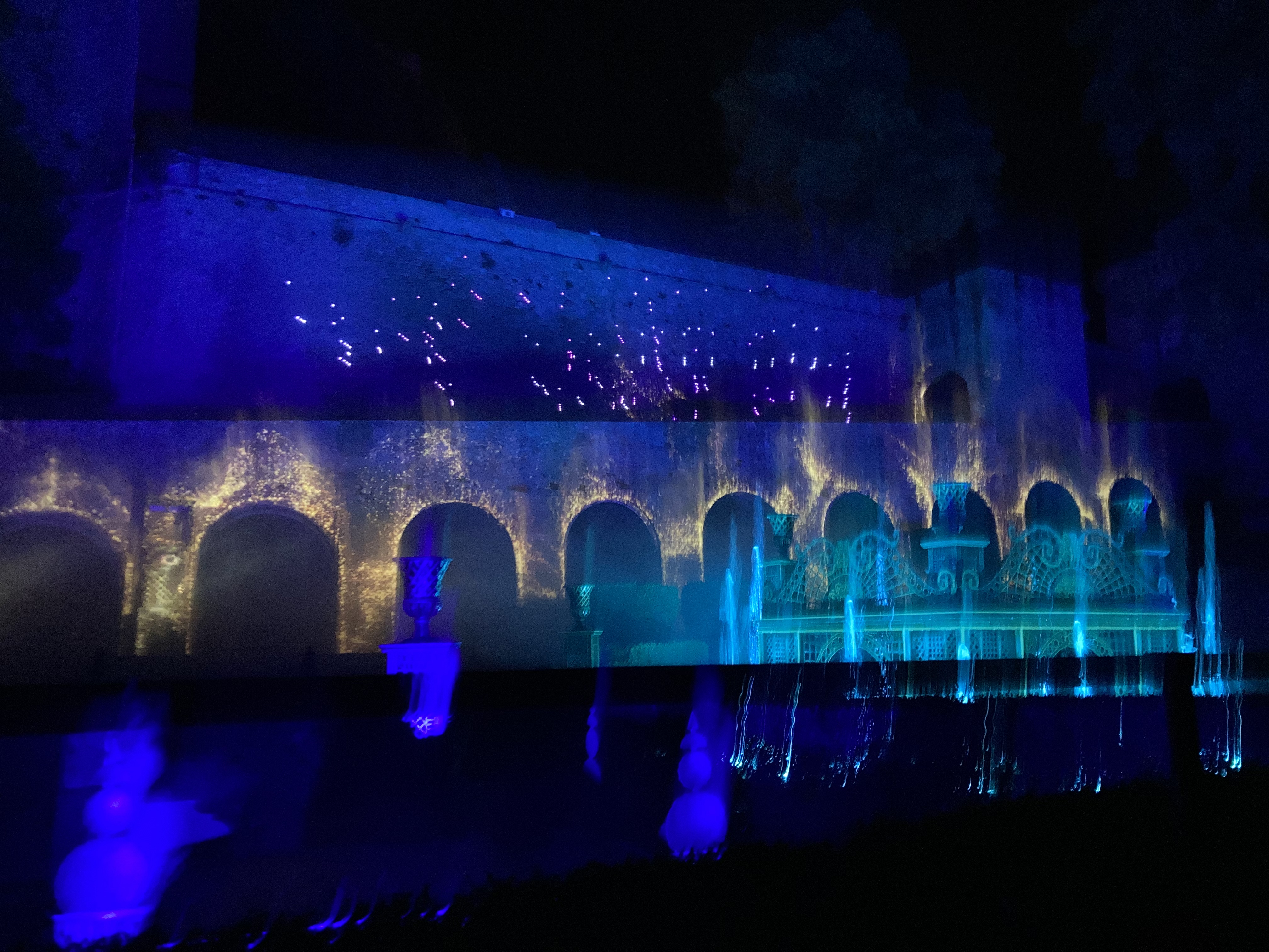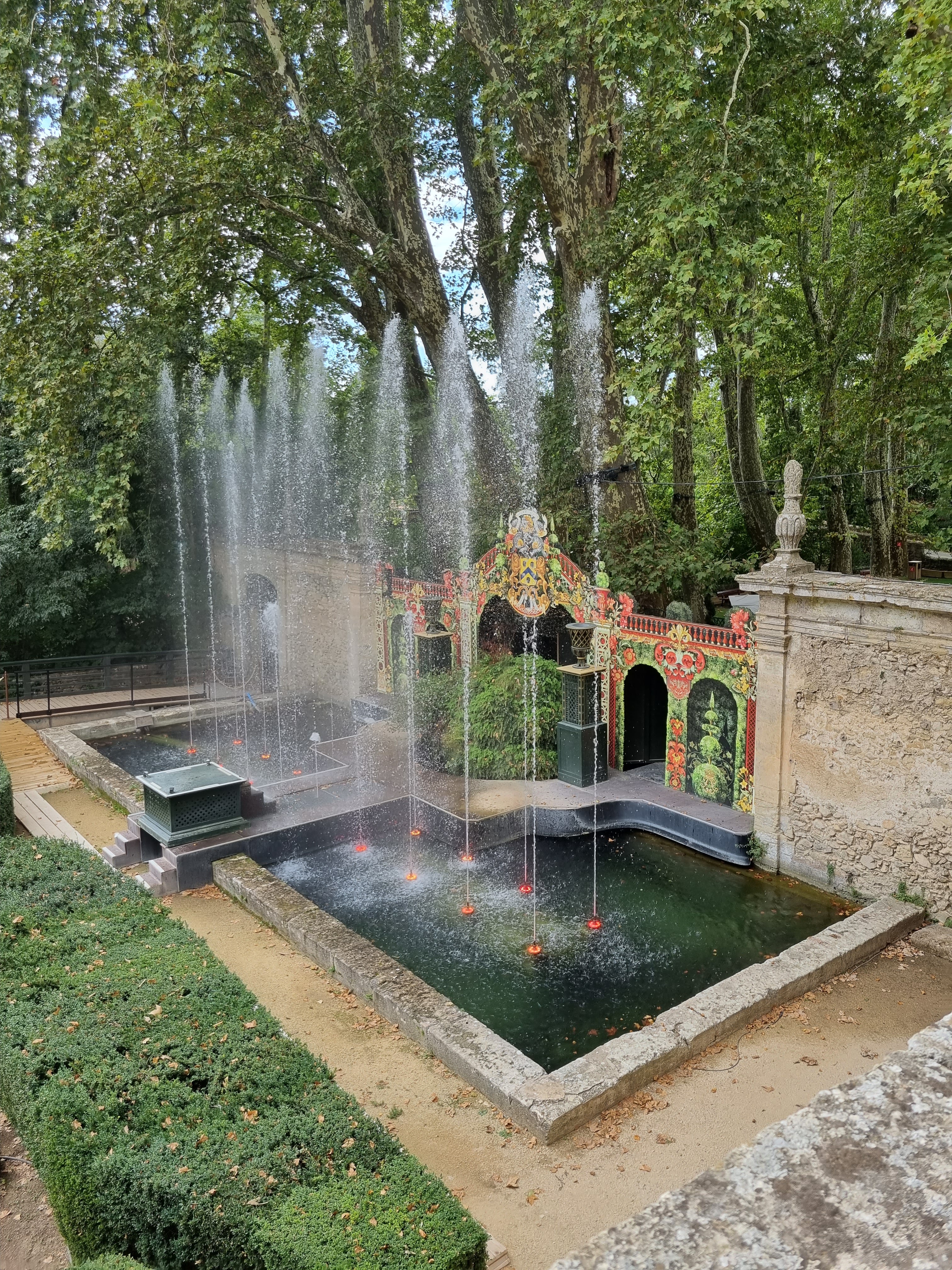 Le temps d’attente pour le spectacle nocturne était interminable. Nous avions des billets pour le spectacle nocturne uniquement, arrivée à partir de 18h30, spectacle prévu à 21h45. Nous sommes arrivées a 19h. Plus de 30 minutes d’attente pour être servi à la guinguette de Marius, puis le temps de manger, ce qui nous a fait rater la visite du château qui ferme ses portes a 20h. L’attente à la place du marché de 19h a 21h : aucune animation, à part 3 personnes qui chantaient des chansons, bravo à eux. Nous avons commencé à faire la queue pour le spectacle comme tout le monde à 21h : 1h15 debout dans une file d’attente puisque le spectacle a commencé à 22h15. Pour finir, le spectacle en lui même… les féeries des jardins le notre…. Toute cette attente pour... 30 minutes de combat d’épée, quelques jets d’eau et quelques jeux de lumière…. Très très très déçu… l’histoire n’était pas top, les mises en scène non plus… des comédiens soit immobiles soit qui refaisaient sans cesse les mêmes mouvements… (ce n’est pas de leur faute bien sûr) ce que nous vend le site internet n’est pas contractuelle… dommage.. et pour le prix 32 euros par personne en billetterie classique.. du vol. Heureusement que nous sommes passés par Groupon moitié prix. Seul petit point positif pour le personnel qui est très aimable, et la nourriture à la guinguette qui est bonne.