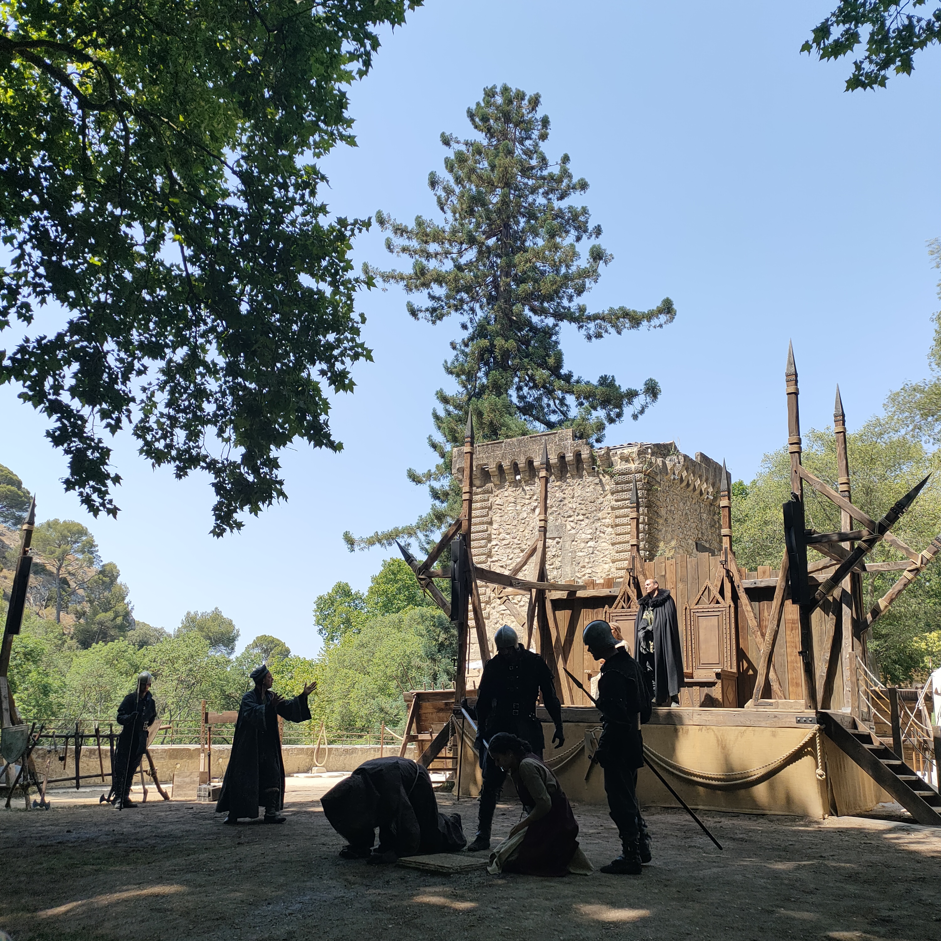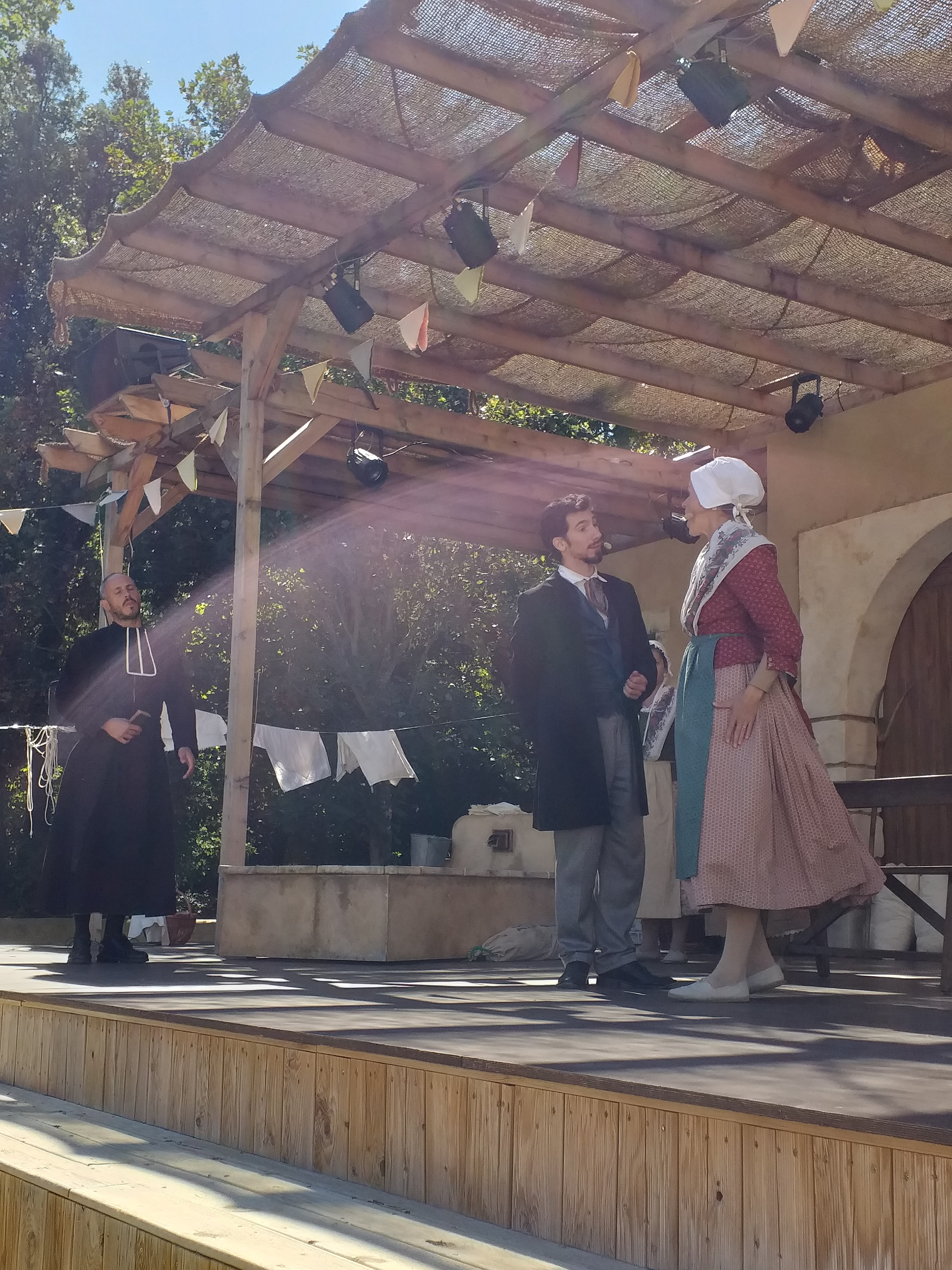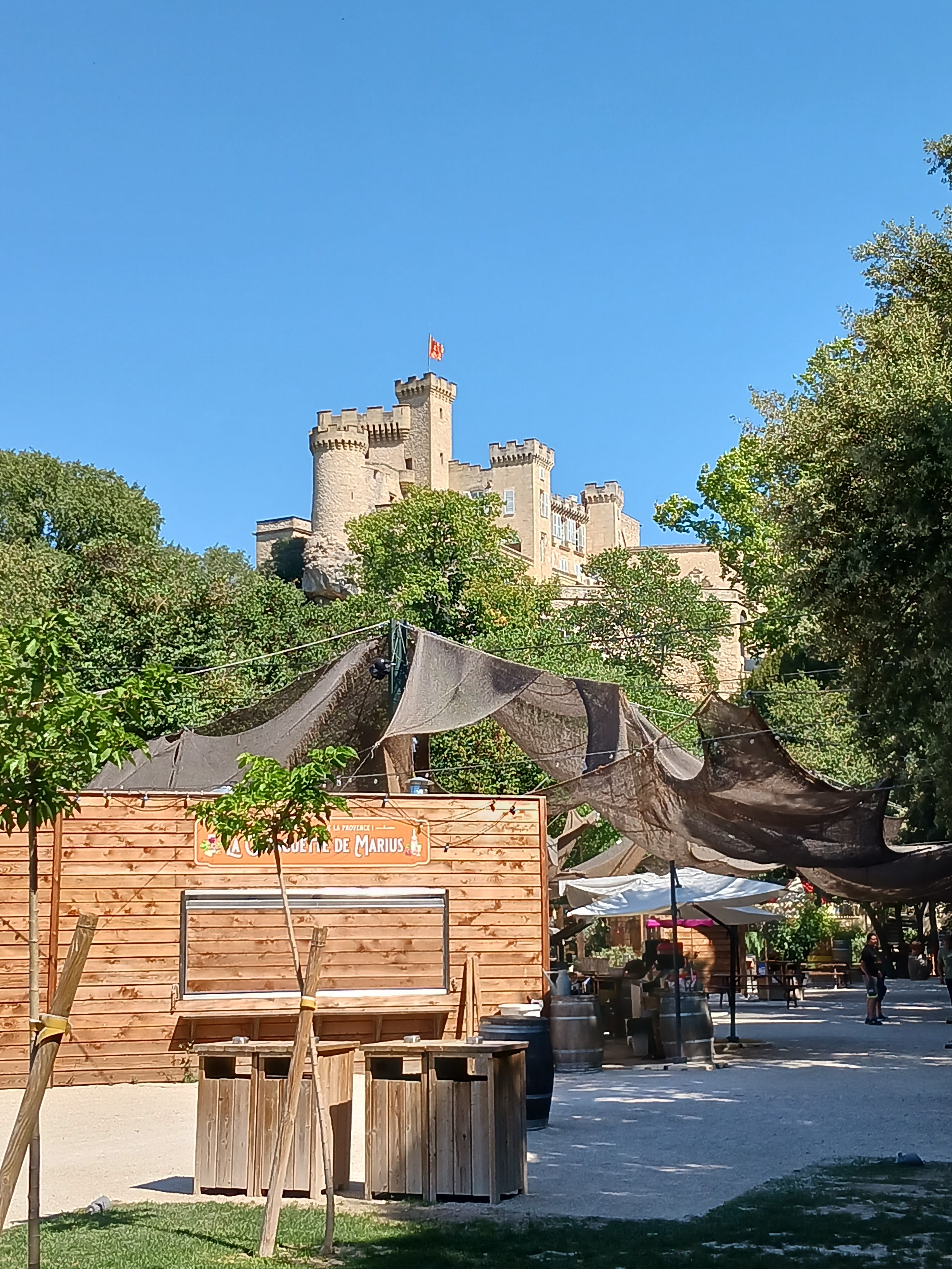 En attendant le spectacle de soir Napoléon, l'espace restauration animations et picnic est très bien. C'est très joli, bien aménagé et les activités pour les enfants et même adultes c'est génial. Les petits spectacles de 15 minutes environ sont rigolo en même temps qu'ils racontent les histoires provençales. Je publie cette photo, le château bien ensoleillé, mais aussi car j'ai vu seulement après que les personnes qui sont eux même en séance photo, sont tout simplement les acteurs du secret de maître cornille. Alphonse daudet avec sa tenue d'époque, qui photographie sa belle parisienne, l'instant est magique ! Si vous la voyez, vous êtes beaux tous les deux !