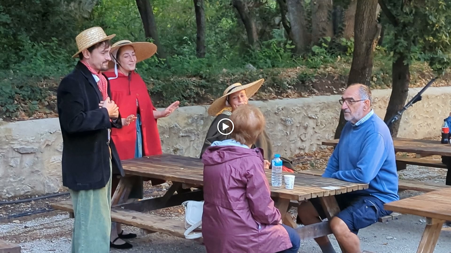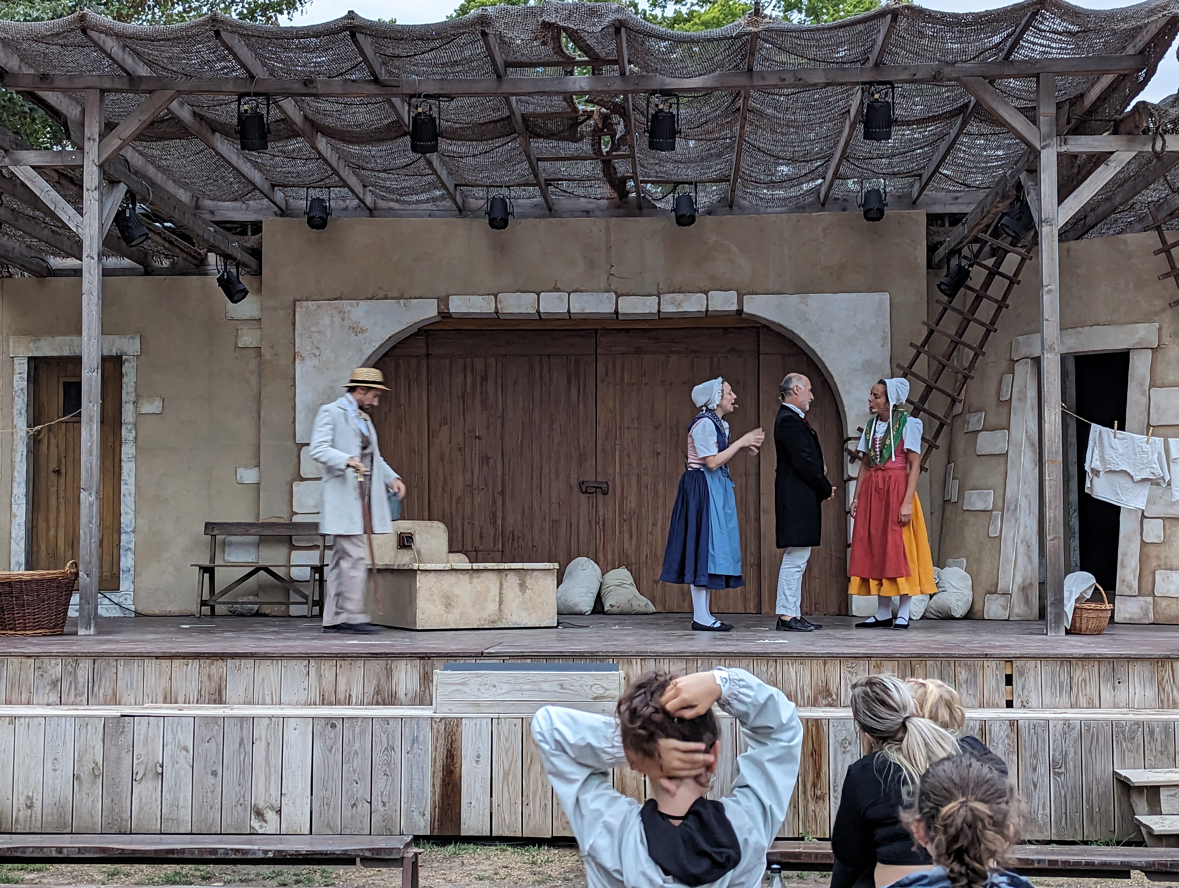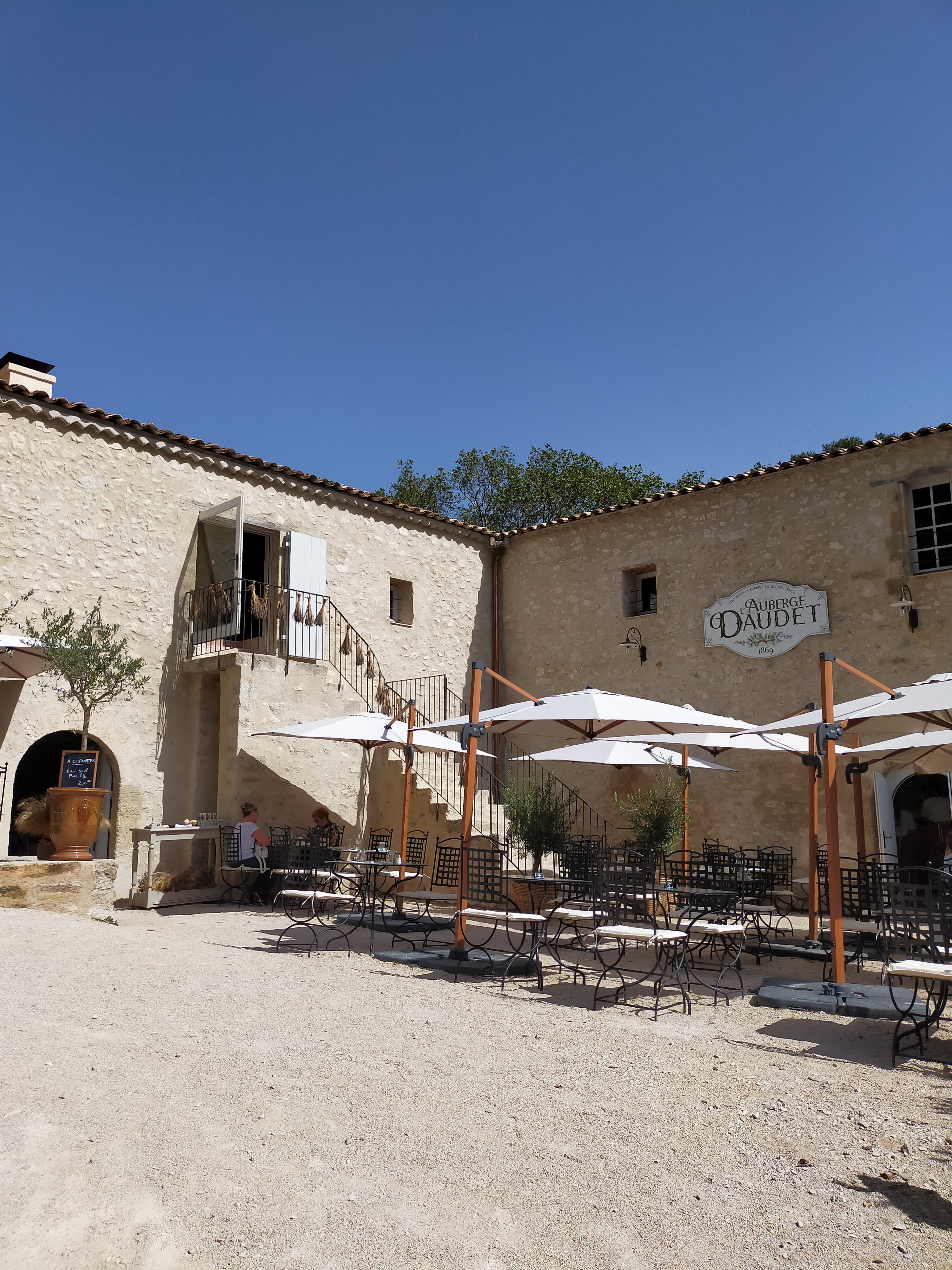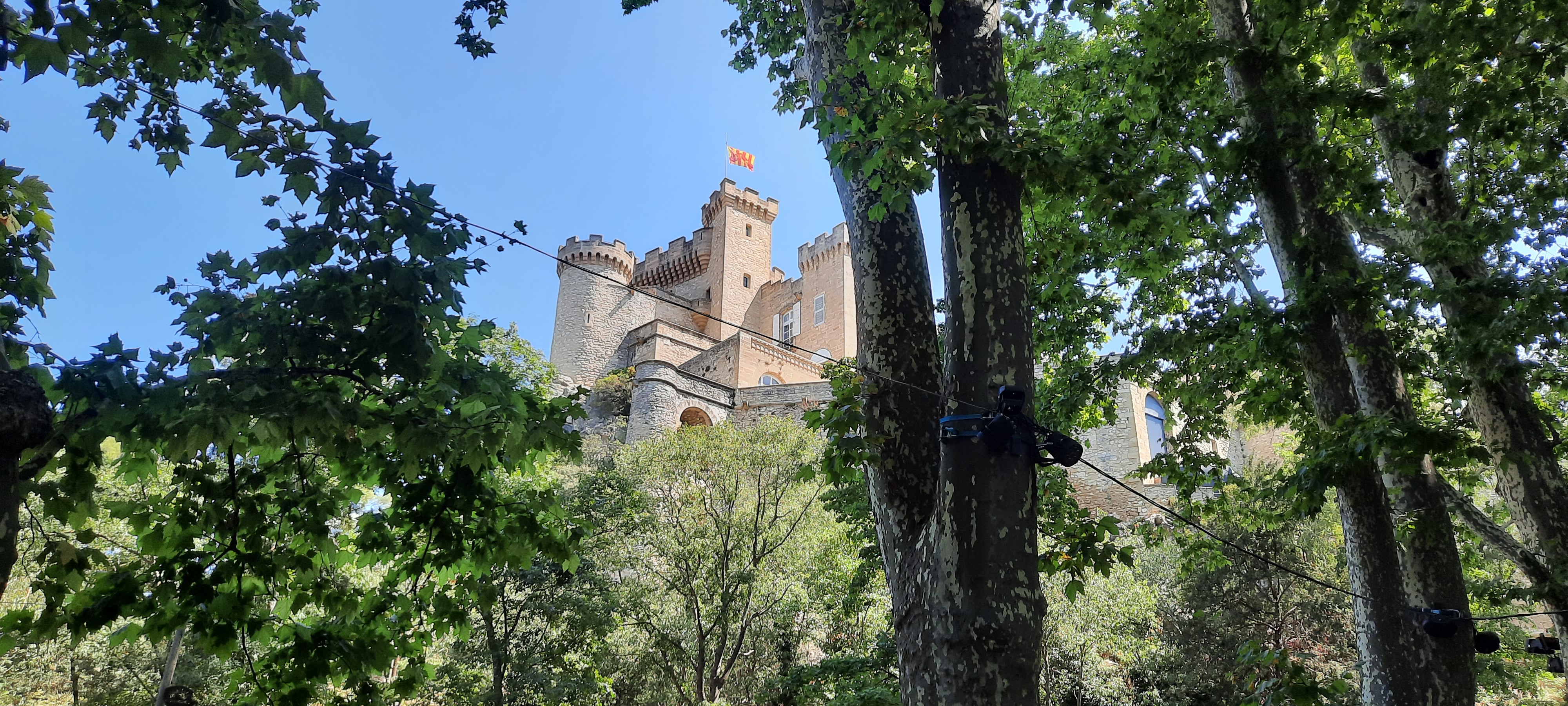 En attendant le spectacle de soir Napoléon, l'espace restauration animations et picnic est très bien. C'est très joli, bien aménagé et les activités pour les enfants et même adultes c'est génial. Les petits spectacles de 15 minutes environ sont rigolo en même temps qu'ils racontent les histoires provençales. Je publie cette photo, le château bien ensoleillé, mais aussi car j'ai vu seulement après que les personnes qui sont eux même en séance photo, sont tout simplement les acteurs du secret de maître cornille. Alphonse daudet avec sa tenue d'époque, qui photographie sa belle parisienne, l'instant est magique ! Si vous la voyez, vous êtes beaux tous les deux !