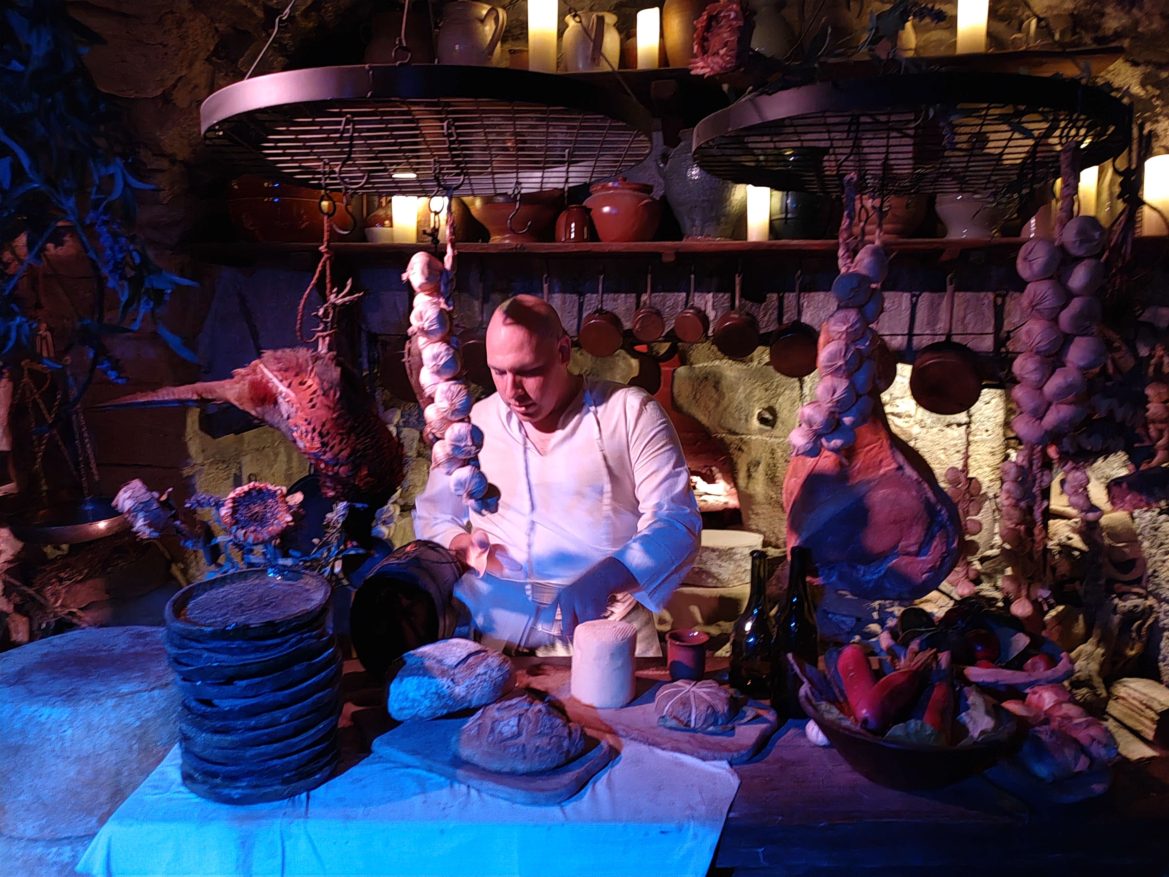La visite vaut le détour pour le cadre médiéval vraiment réaliste. Un bon moment de passé. Le personnel était vraiment très agréable, souriant et compétant. En revanche, nous sommes assez déçus des spectacles qui sont principalement des projections, du théâtre et des salles décorées. Seulement un spectacle avec des cascadeurs, qui était bien représenté, un régal, dommage qu'il n'y en ait pas davantage...
