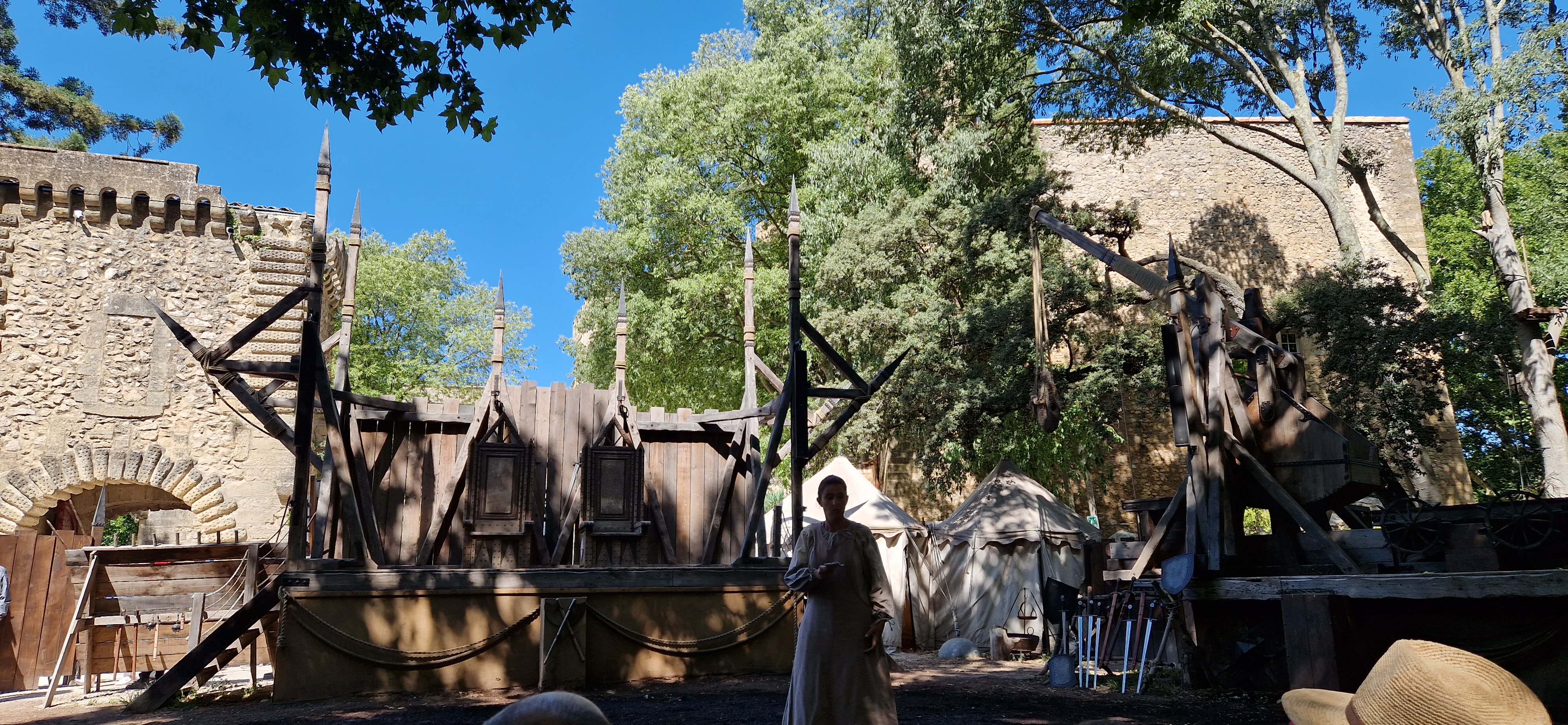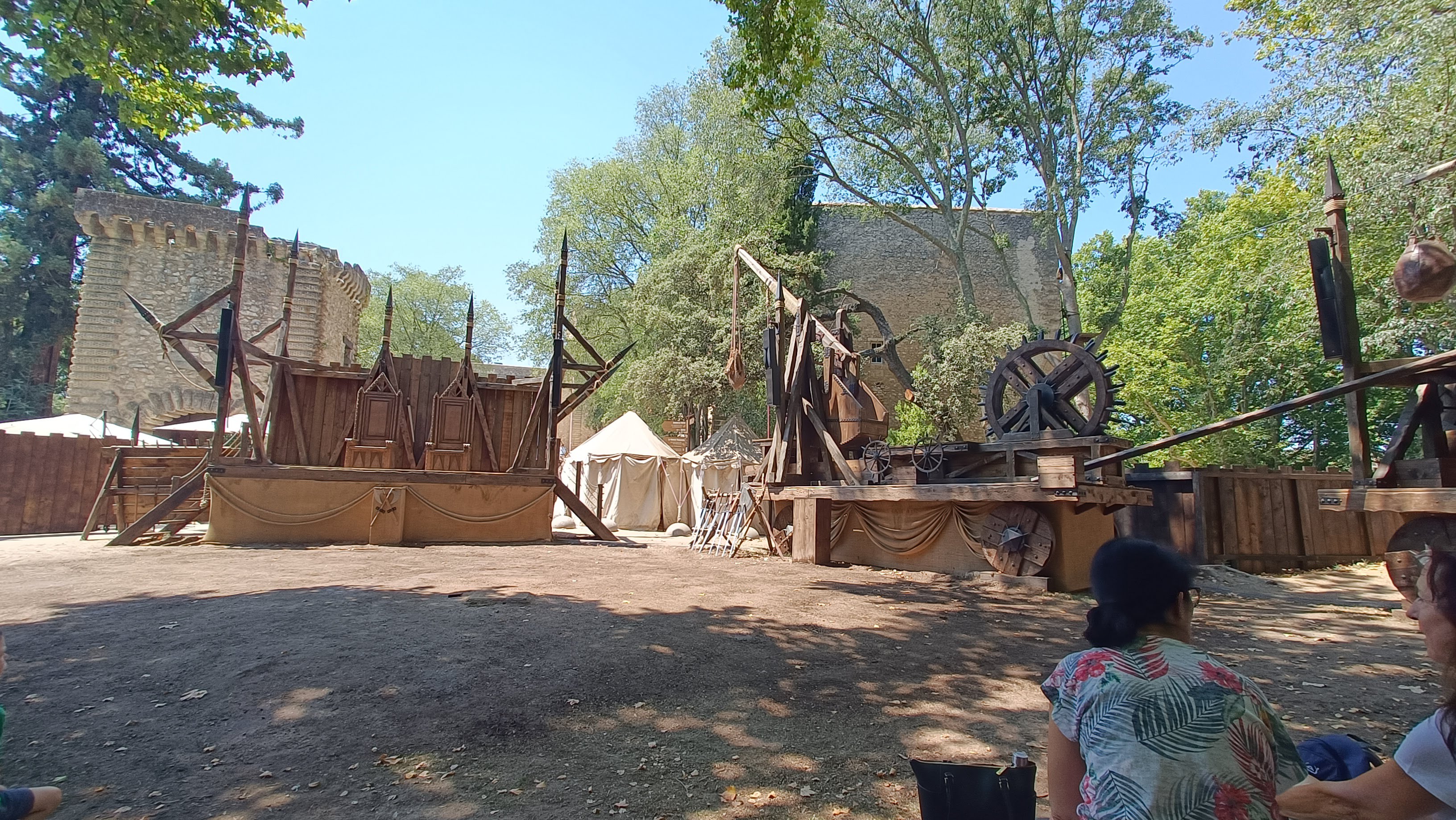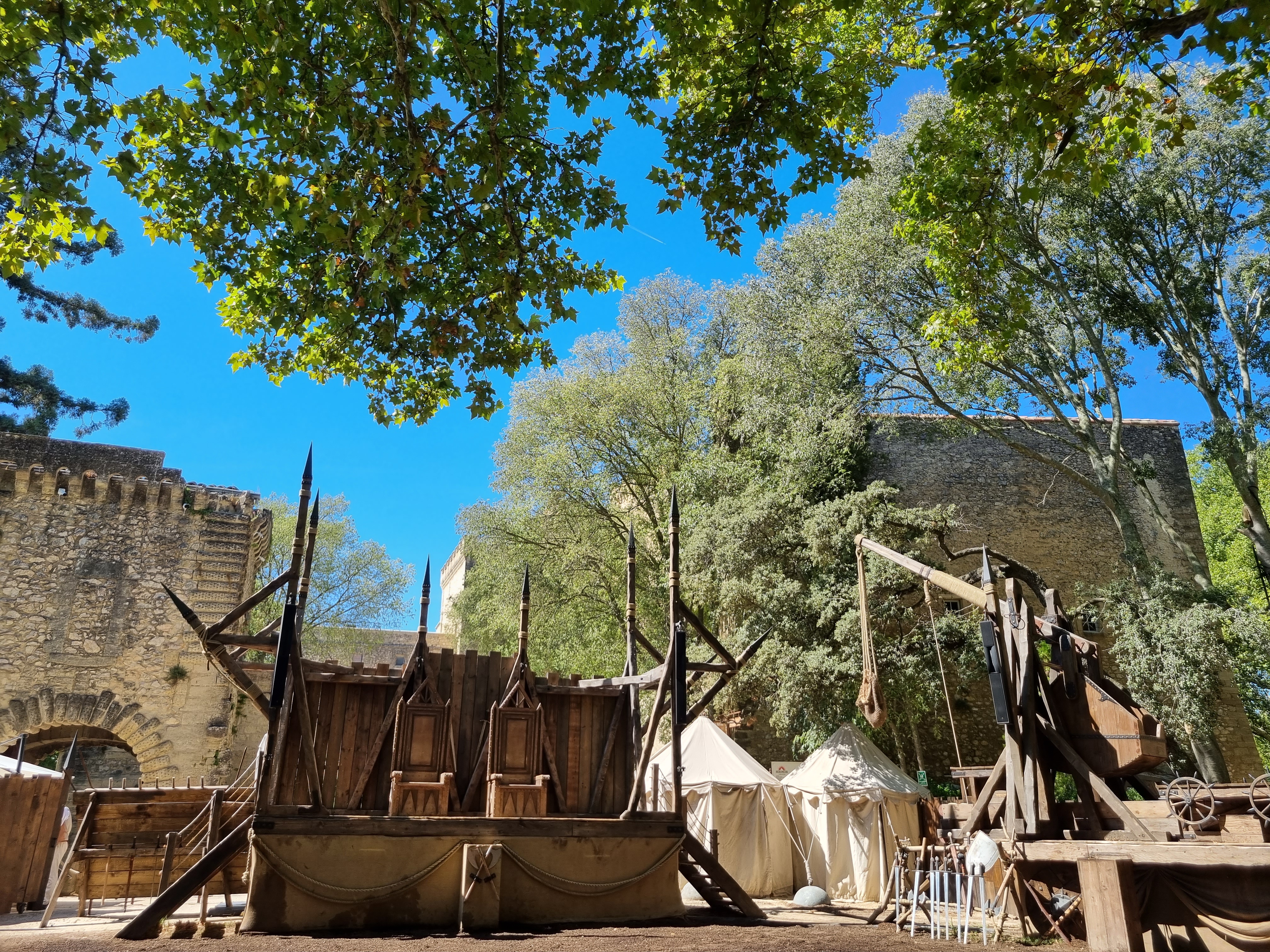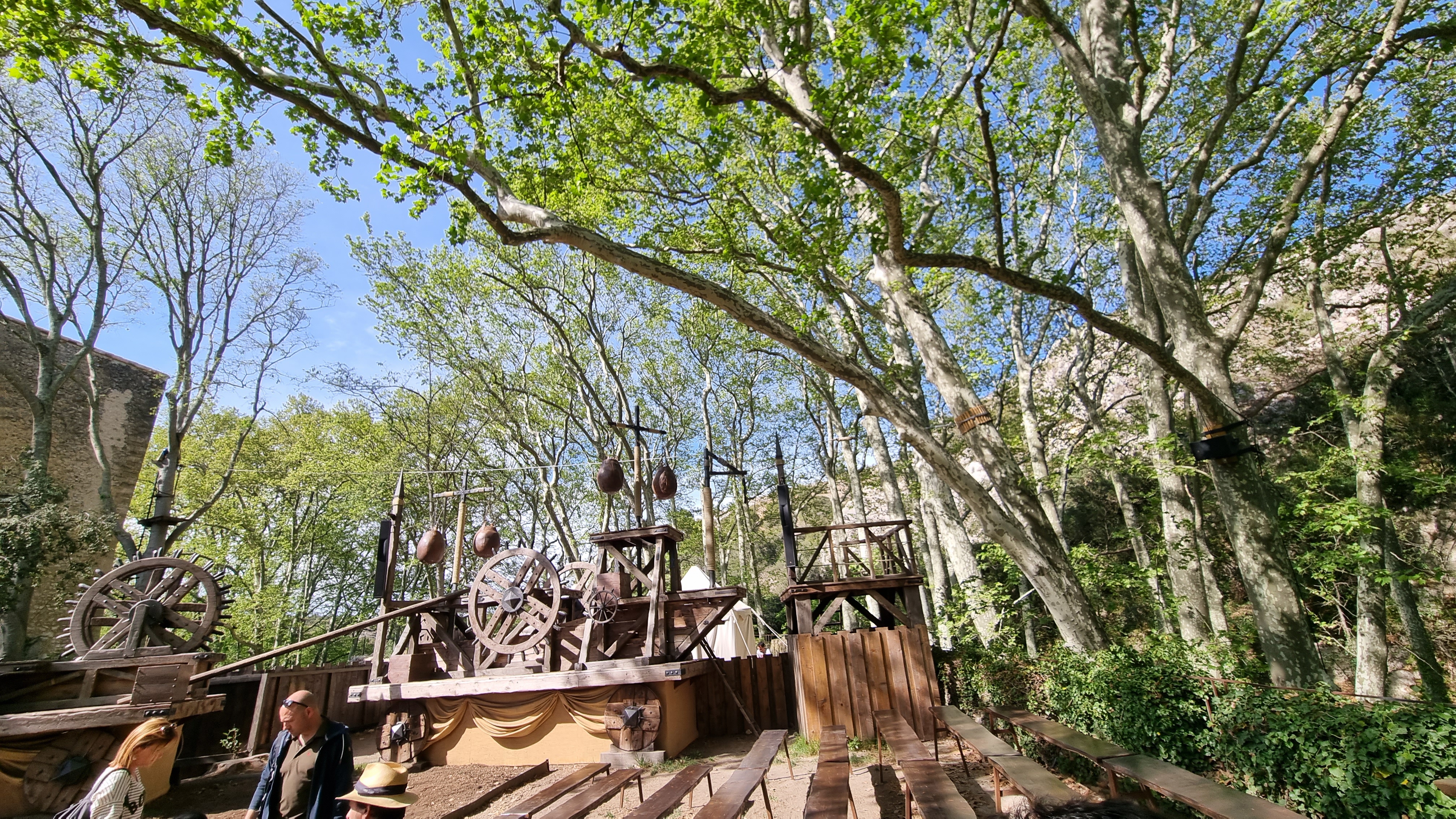 Nous sommes restés de 10H00 à 18H00, nous avons eu le temps de faire tous les spectacles et animations en prenant le temps (2H) de manger à l'auberge Daudet. Avec même une petite sieste sur les transats devant le théâtre. Les restaurations du château ne sont quasiment pas visibles et permettent aux visiteurs de pouvoir se plonger agréablement à l'époque du château.