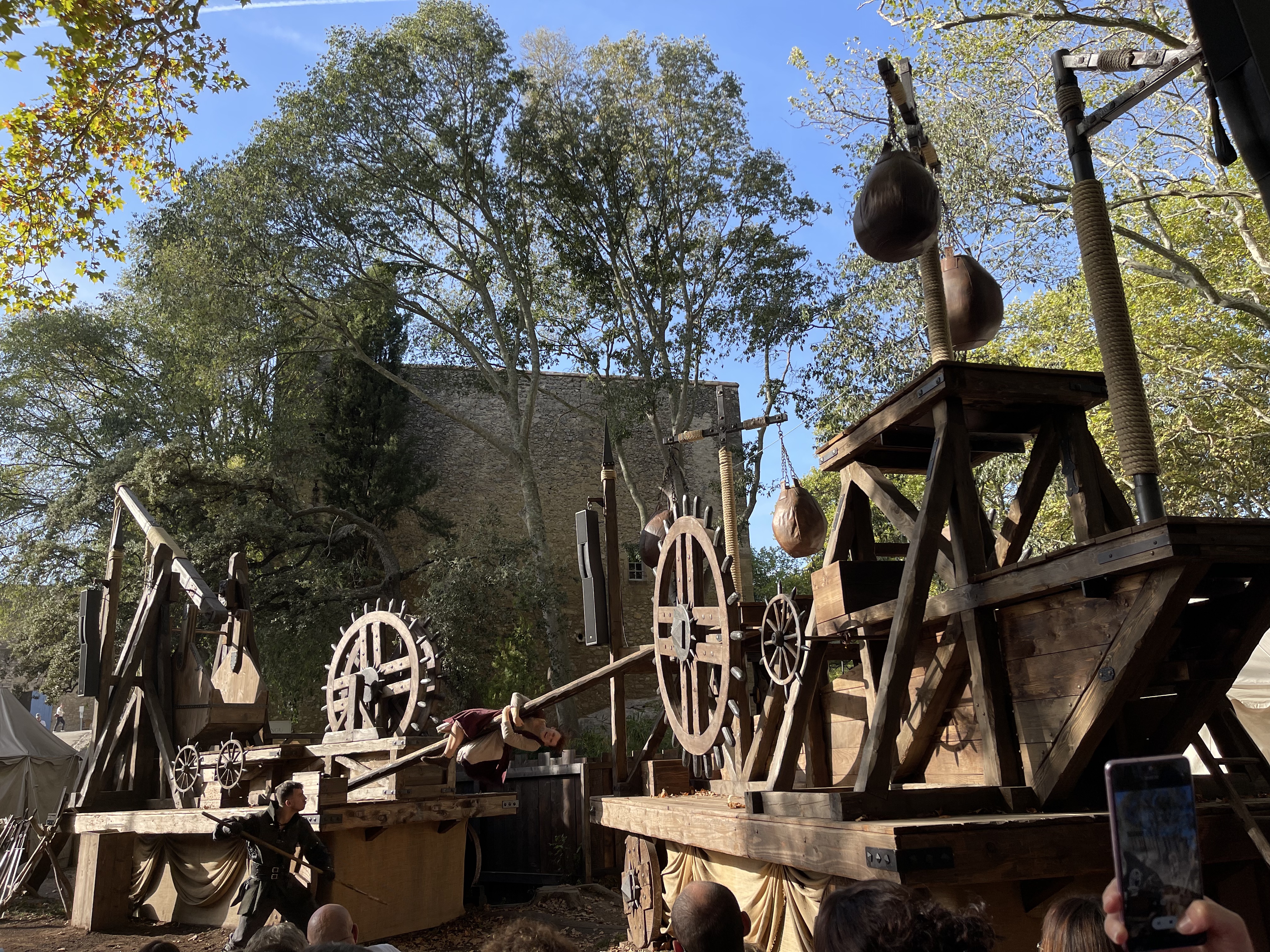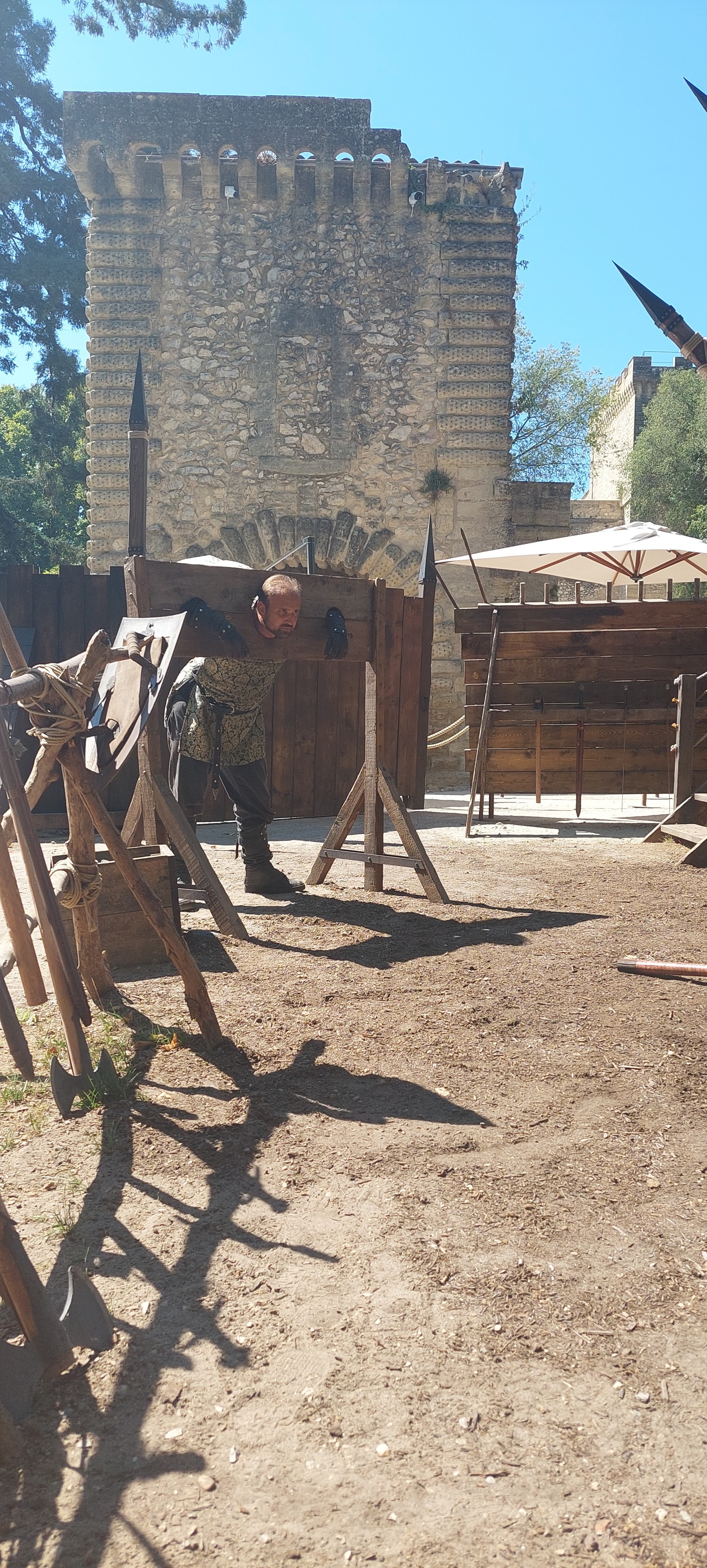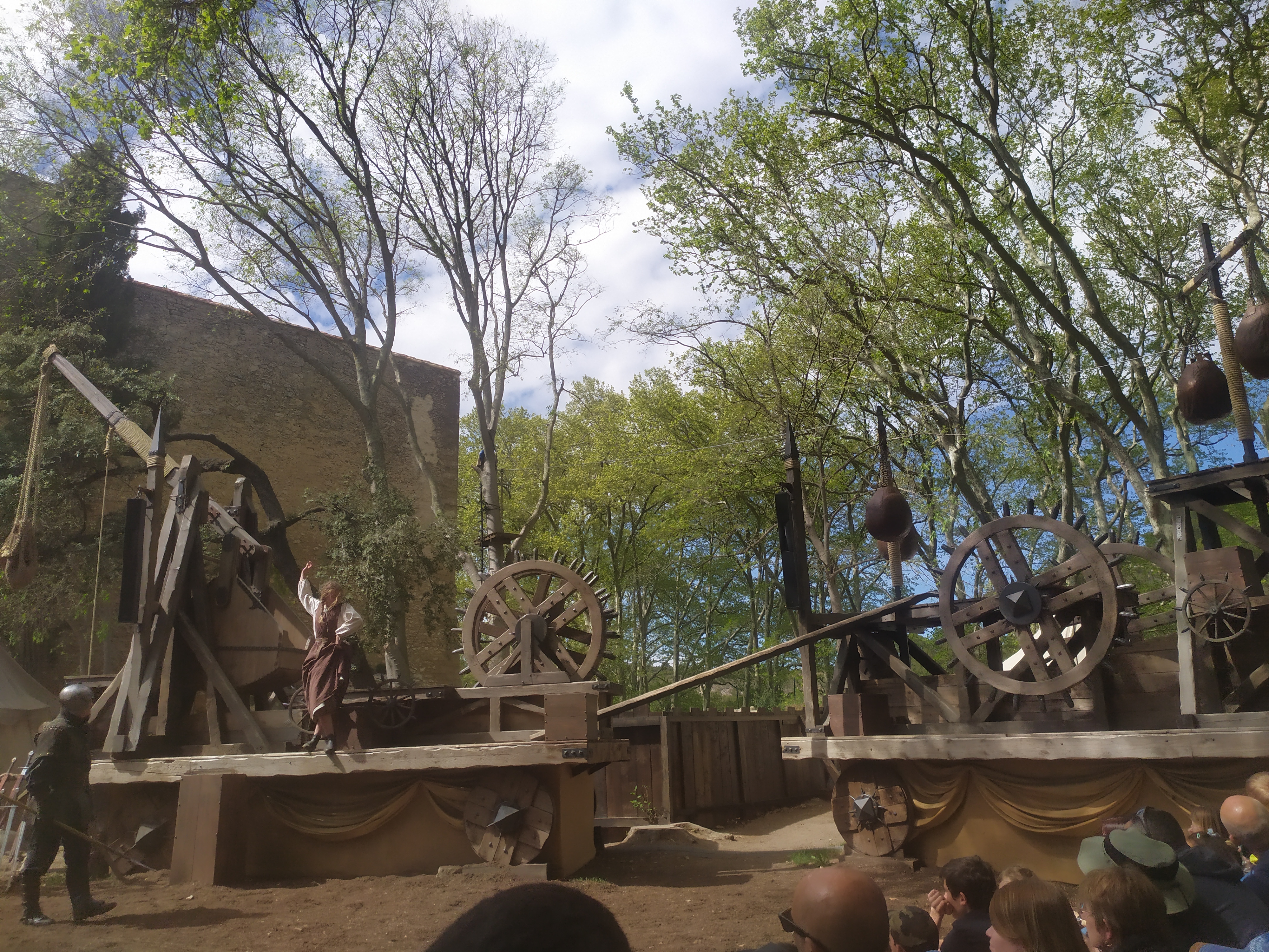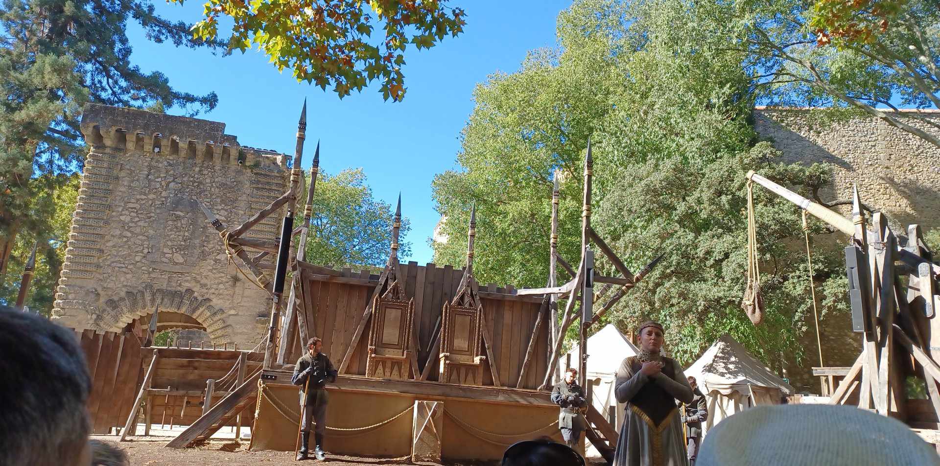 Nous sommes restés de 10H00 à 18H00, nous avons eu le temps de faire tous les spectacles et animations en prenant le temps (2H) de manger à l'auberge Daudet. Avec même une petite sieste sur les transats devant le théâtre. Les restaurations du château ne sont quasiment pas visibles et permettent aux visiteurs de pouvoir se plonger agréablement à l'époque du château.