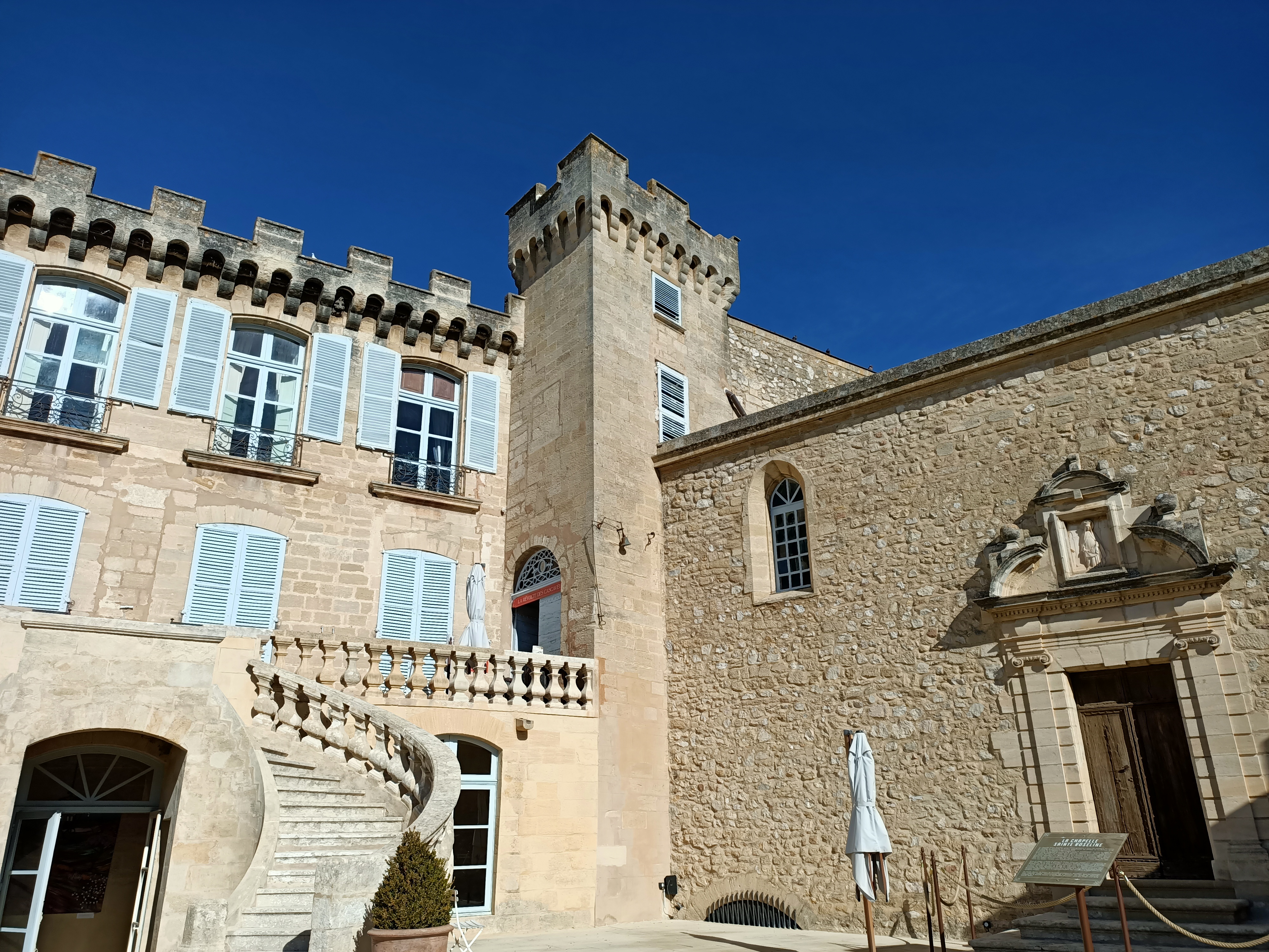 Beau château, il y a beaucoup à faire et vous pouvez apprendre quelque chose de l'histoire. Typiquement provençal, marché et spectacles actifs. Facilement accessible, parking gratuit, magnifiquement situé. Veuillez noter que les heures d'ouverture peuvent varier. Nous y étions en juin et c'était agréablement occupé. Des billets pour la soirée sont également disponibles.