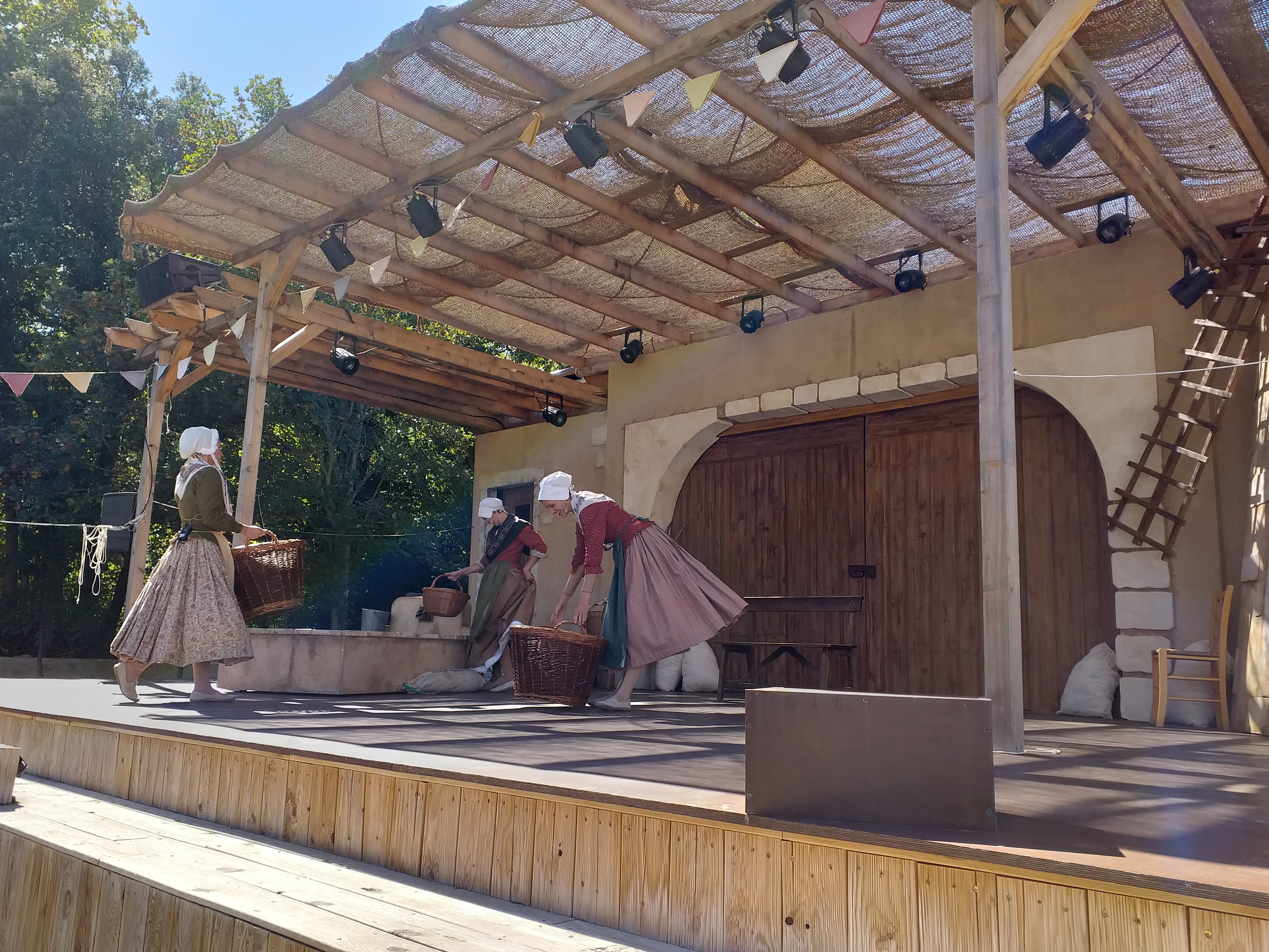 Bonjour, mini-spectacles vraiment sympas et très variés, nous avons passé un très agréable moment : double tranchant, la quête des bâtisseurs, la révolte des cascaveù, les lettres de mon moulin dont les comédiens sont vraiment bien. Le château est magnifique, ainsi que le jardin à la française, nous avons été bien accueilli à l'entrée. Et ce vendredi 22 juillet, le parc joue le jeu avec des tarifs réduits car tous les spectacles ne peuvent être présents (car zone rouge). Un tout petit bémol avec la visite du château, je l'avais visité il y a longtemps et on avait eu droit à visiter des douves avec armures.. ou parties plus médiévales mais pas cette fois-ci.. Je vous conseille donc ce parc, c'était vraiment bien avec de jolies animations dans les allées.