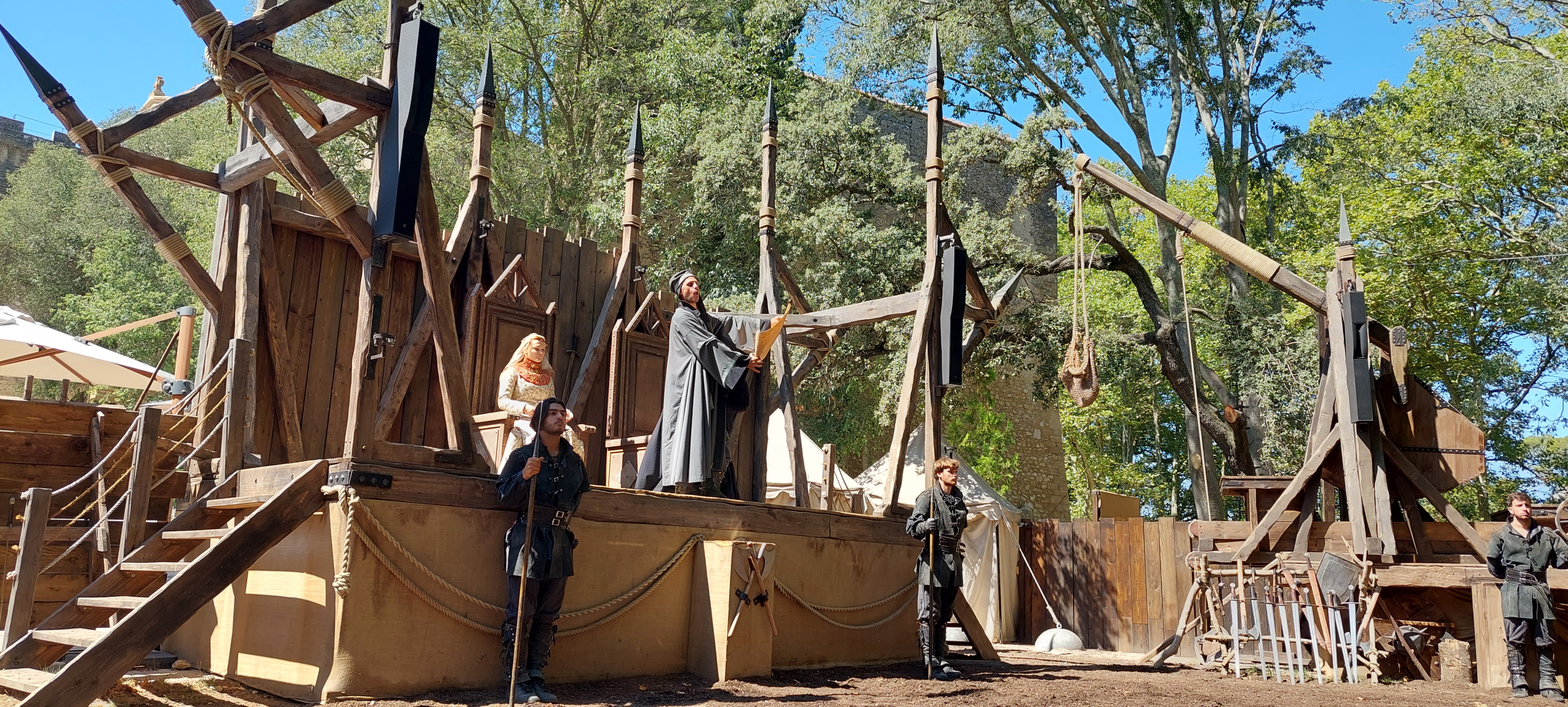 Belle immersion dans la Provence médiévale ! Les comédiens des 2 pièces de théâtres sont excellents et nous ont bien divertis alors que des trombes d'eau nous tombaient sur la tête. Les visites immersives dont de grandes qualité (pas du niveau du Puy du Fou mais pas loin) ! Le château est magnifique et les activités de jeux autour de la buvette sont amusantes. Le parc est récent et il y a encore plein de belles choses à faire: en rajoutant un autre spectacle d'action par exemple ! Le seul déjà programmé est plutôt réussi surtout au niveau des combats où les cascadeurs donnent vraiment de leur personne ! Pour améliorer encore plus l'expérience, il faudrait un spectacle ou une activité qui nous permette de patienter entre la fin de la journée et le spectacle nocturne. Heureusement que nous avions réservé à l'auberge de Daudet (superbe cadre et très bon repas soit dit en passant) pour dîner sinon c'était 3 longues heures à ne rien faire ! Mention très spéciale au personnel qui est tout simplement d'une gentillesse et d'un professionnalisme remarquable (clin d'œil à Alexandre au snack qui a été aux petits oignons avec nous !).