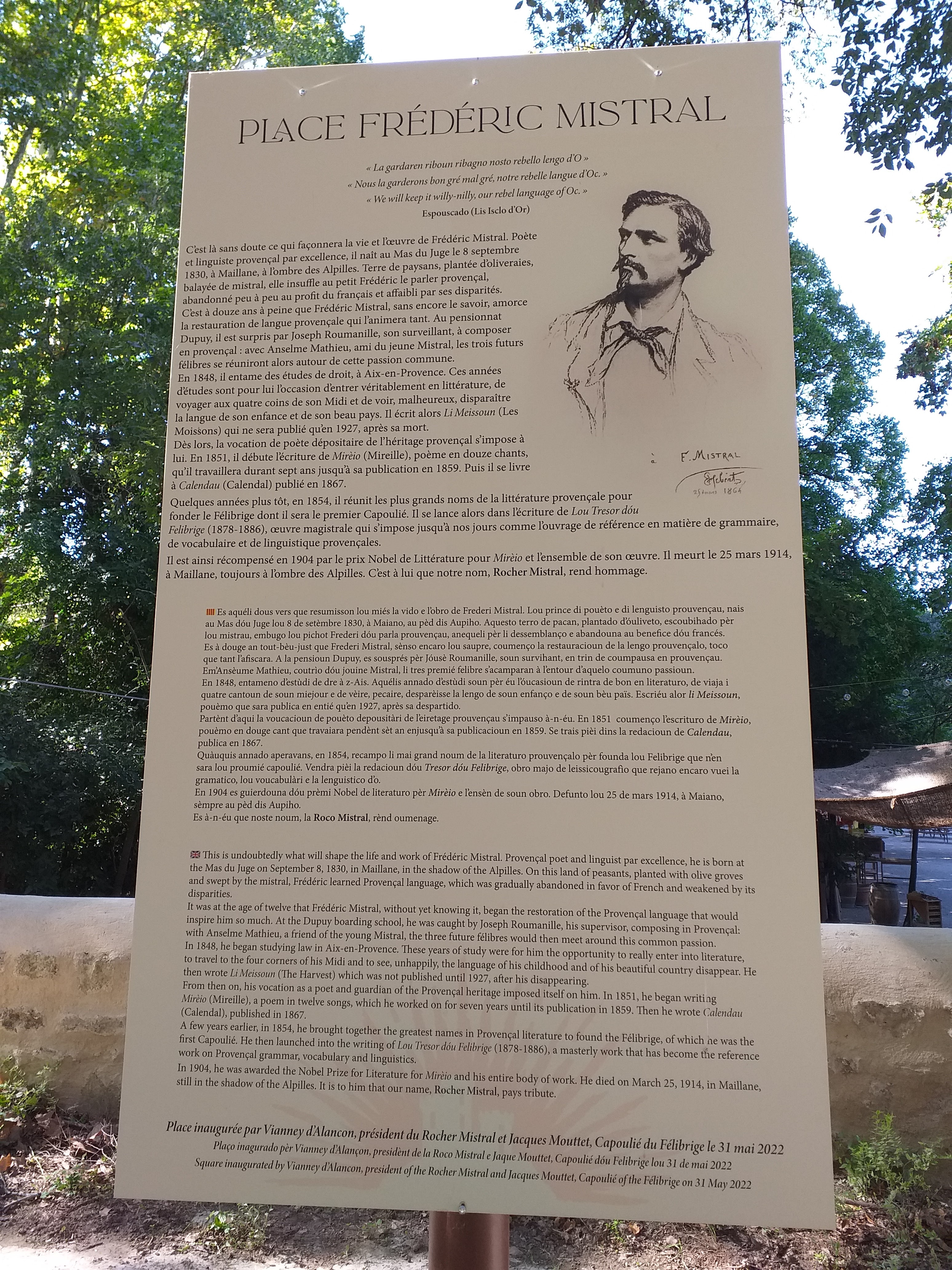 Une belle expérience . J ai trouvé les spectacles de qualité . Étant assez âgée j ai adore les chanteurs dans le marché qui nous font revivre les chansons provençales et qui n hésitent pas à nous faire chanter avec eux .cela fait une belle animation appréciée des petits et des grands .Merci de nous faire revivre notre jeunesse . La féerie était très belle également . Une belle journée au rocher mistral