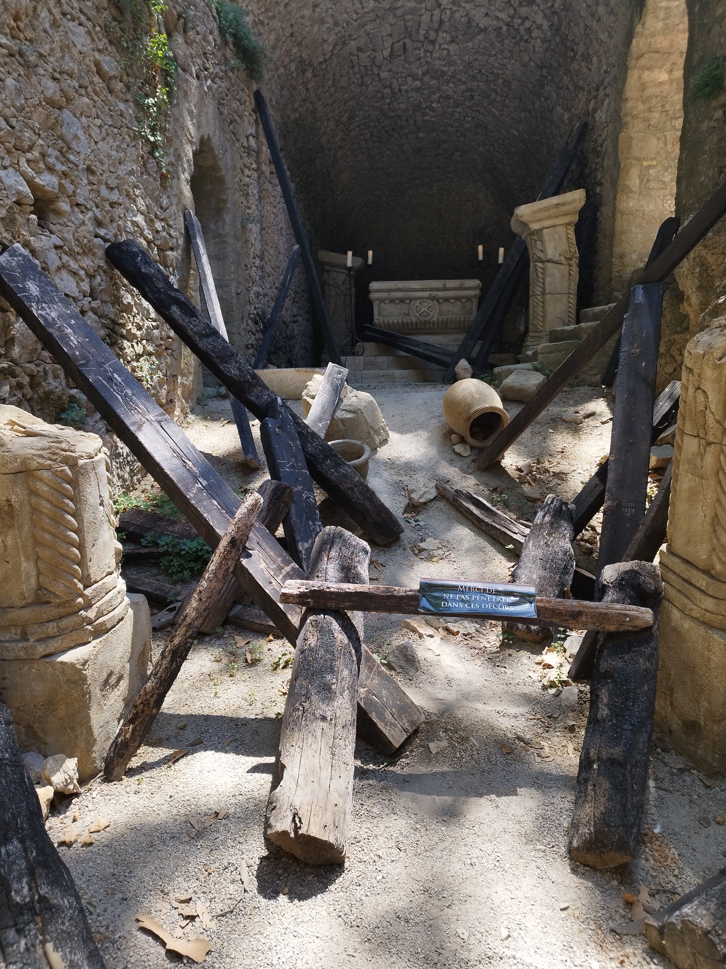 Une grande déception pour ce qui veut être le Puy du fou provençal. On passe de salle sombre en salle sombre, les quelques personnes présentes font juste semblant de parler pendant qu'un haut parleur diffuse l'histoire dans les différentes pièces (avec la même voix tout le long qui plus est). Les décors sont jolis mais ne suffisent pas à atténuer la sensation de vide et d'expérience décousue que l'on ressent tout au long de la journée. L'expérience proposée n'est clairement pas à la hauteur du prix, à éviter en l'état actuel. Si vous avez des enfants en bas âge à éviter tout court.