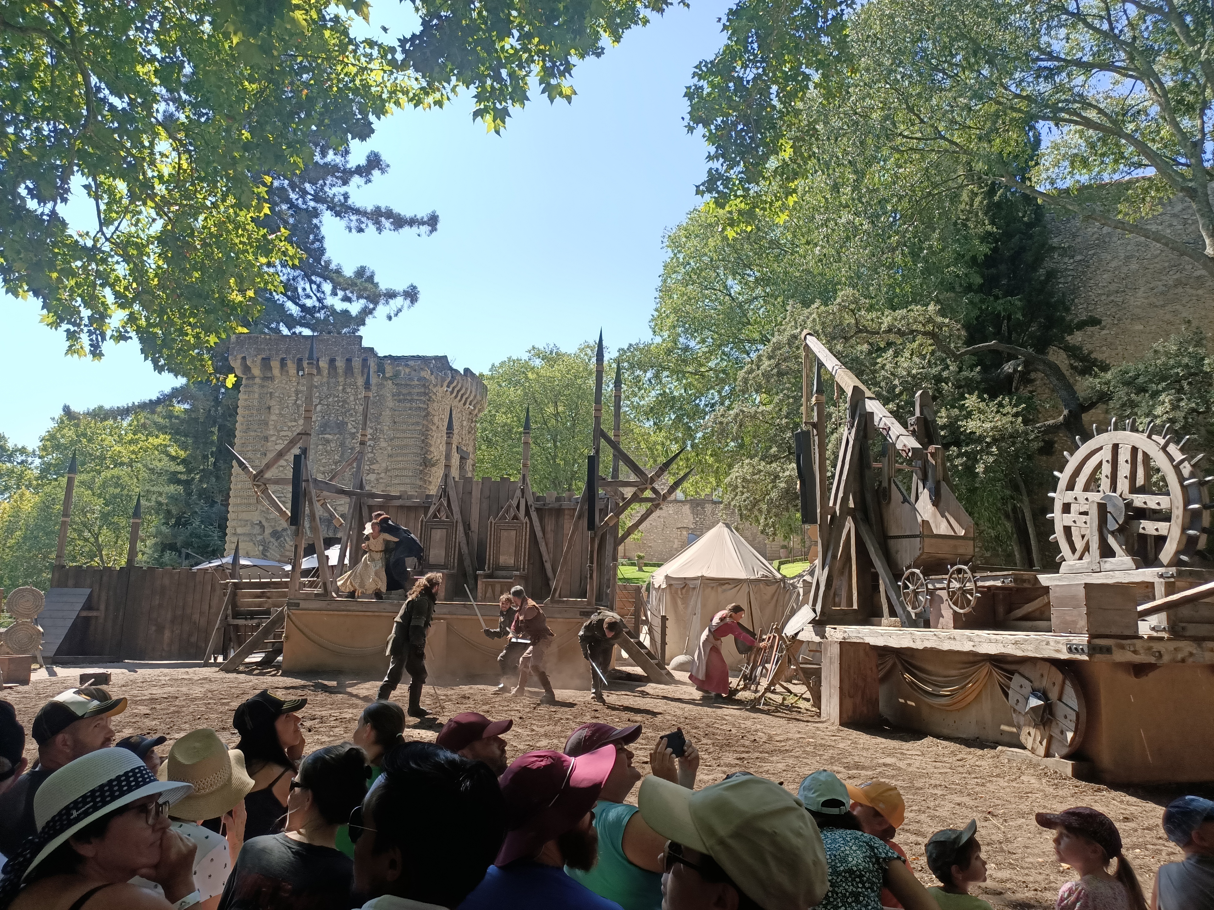 J aime beaucoup la beauté du site, l originalité des animations proposées. Grand parking et parc ombragé à la sortie avec stands de produits régionaux et bars. Dans les défauts : animations courtes pour une file d attente longue, pas assez de WC, pas adapté aux GIC. Les enfants n ont aimé que le spectacle de chevaliers…