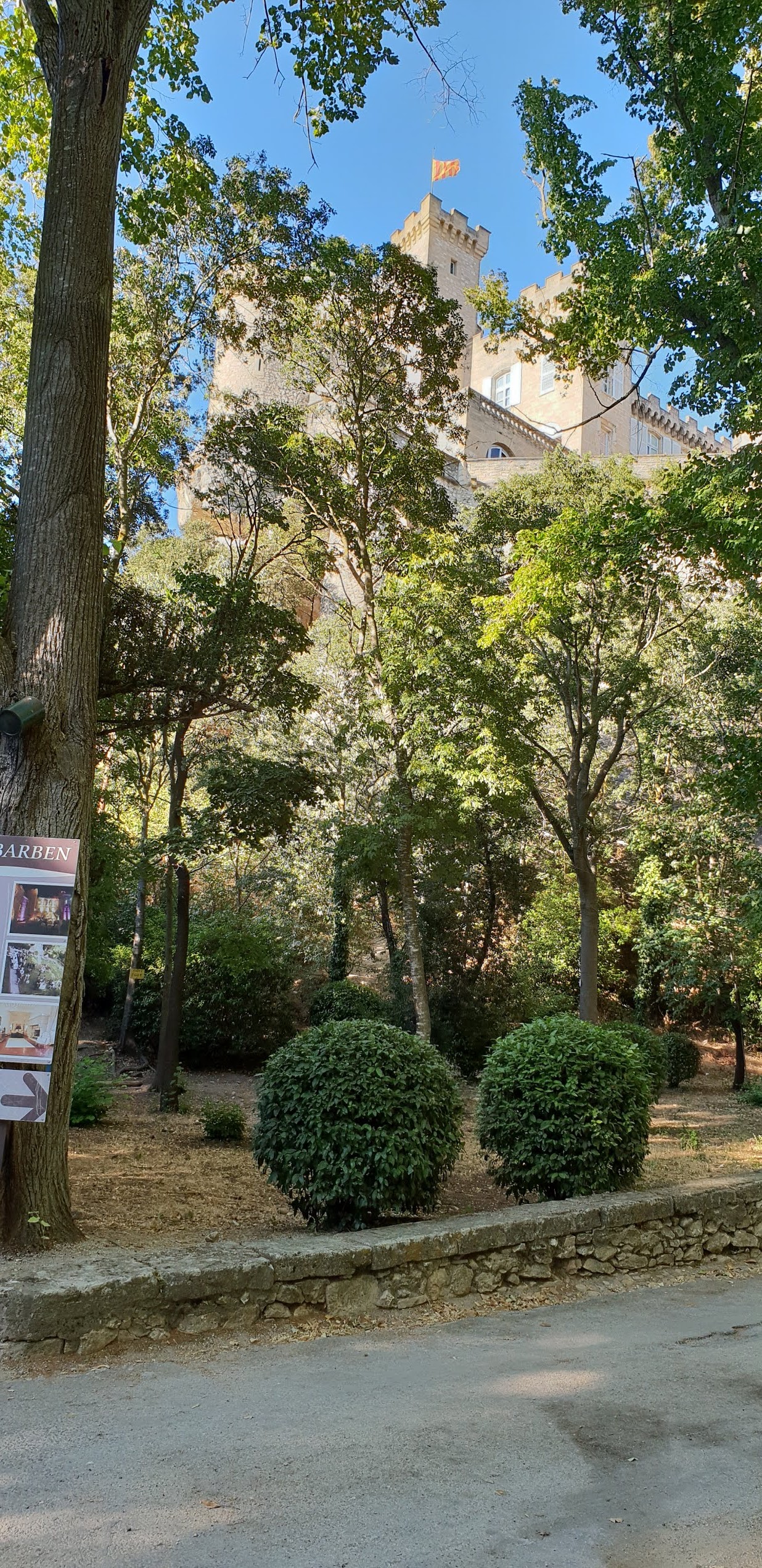 Suite à notre visite au zoo nous avons prolongé jusqu'au château de la Barben sans y rentrer et sans passer par un guide, ce château en fait loue des chambres d'hôtes, à un prix en conséquence vu que le site est classé, aux alentours il y a des jardins ouvragés, une allée de pavés, un porche ancien, il y des fontaines, on peut admirer le château sur plusieurs angle il est en hauteur, c'est très boisé avec des arbres immenses, tout ceci procure une ambiance particulière...